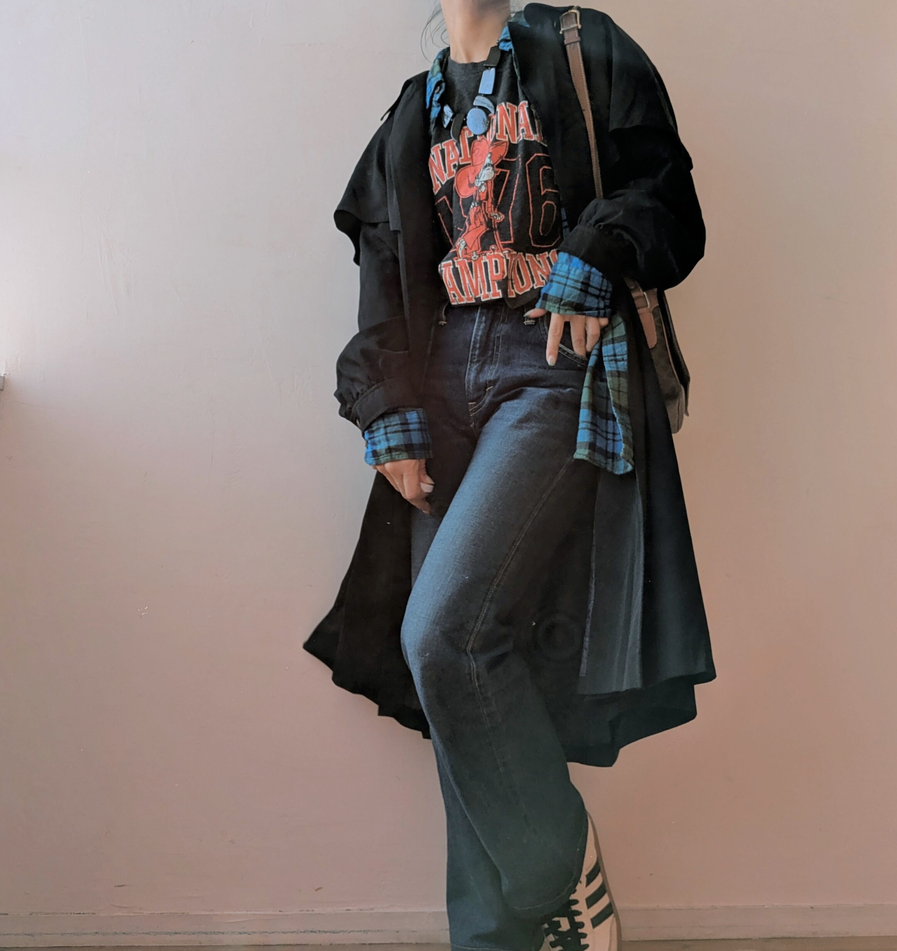 インナーのパープルの柄も素敵で、個性的の光る1着です。