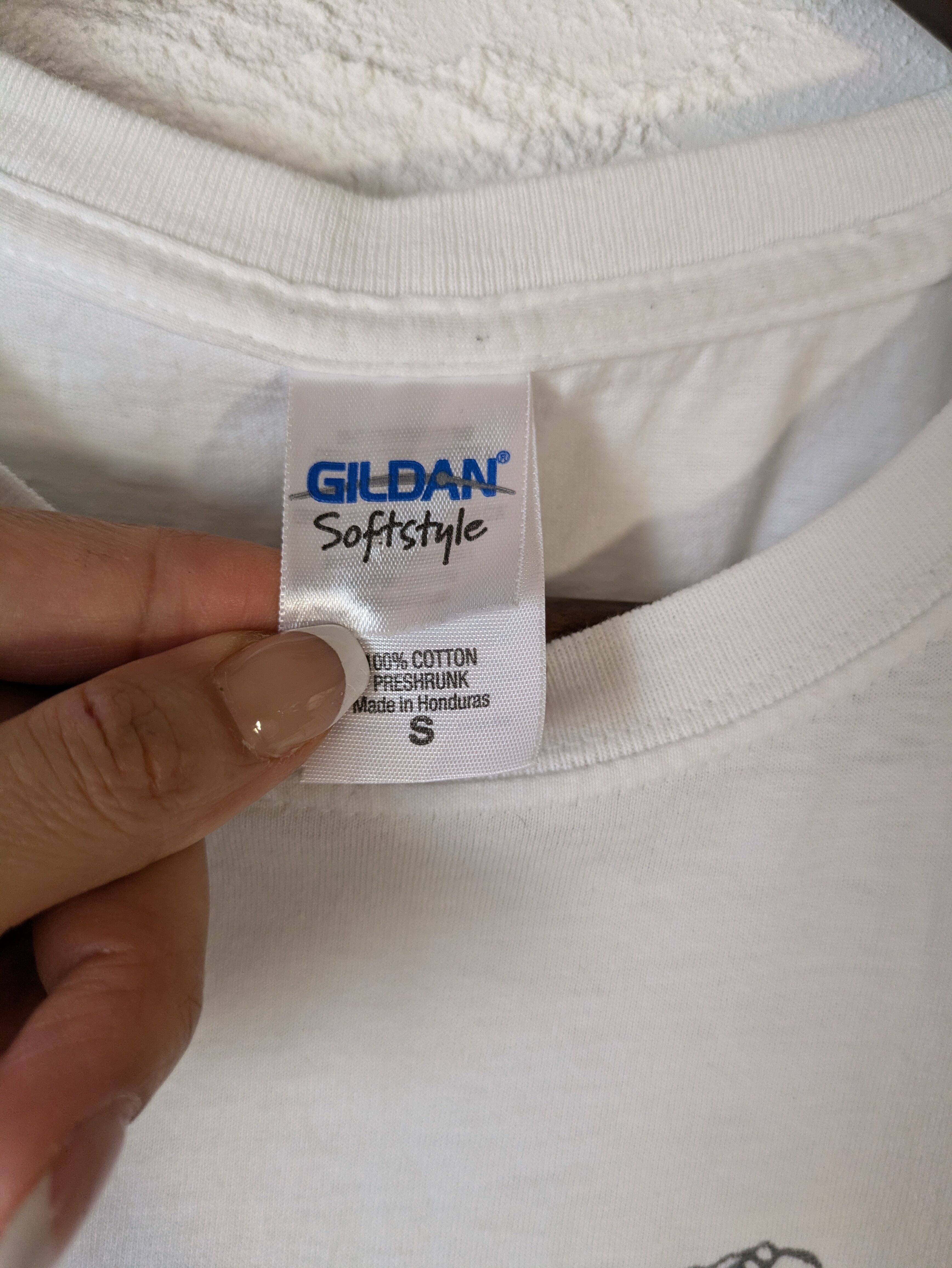 シンプルながら存在感のあるUSA Gildan/Bone lock Tshirtです。フロントのユニークなボーンロックデザインが目を引き、普段のコーディネートにアクセントを加えてくれます。