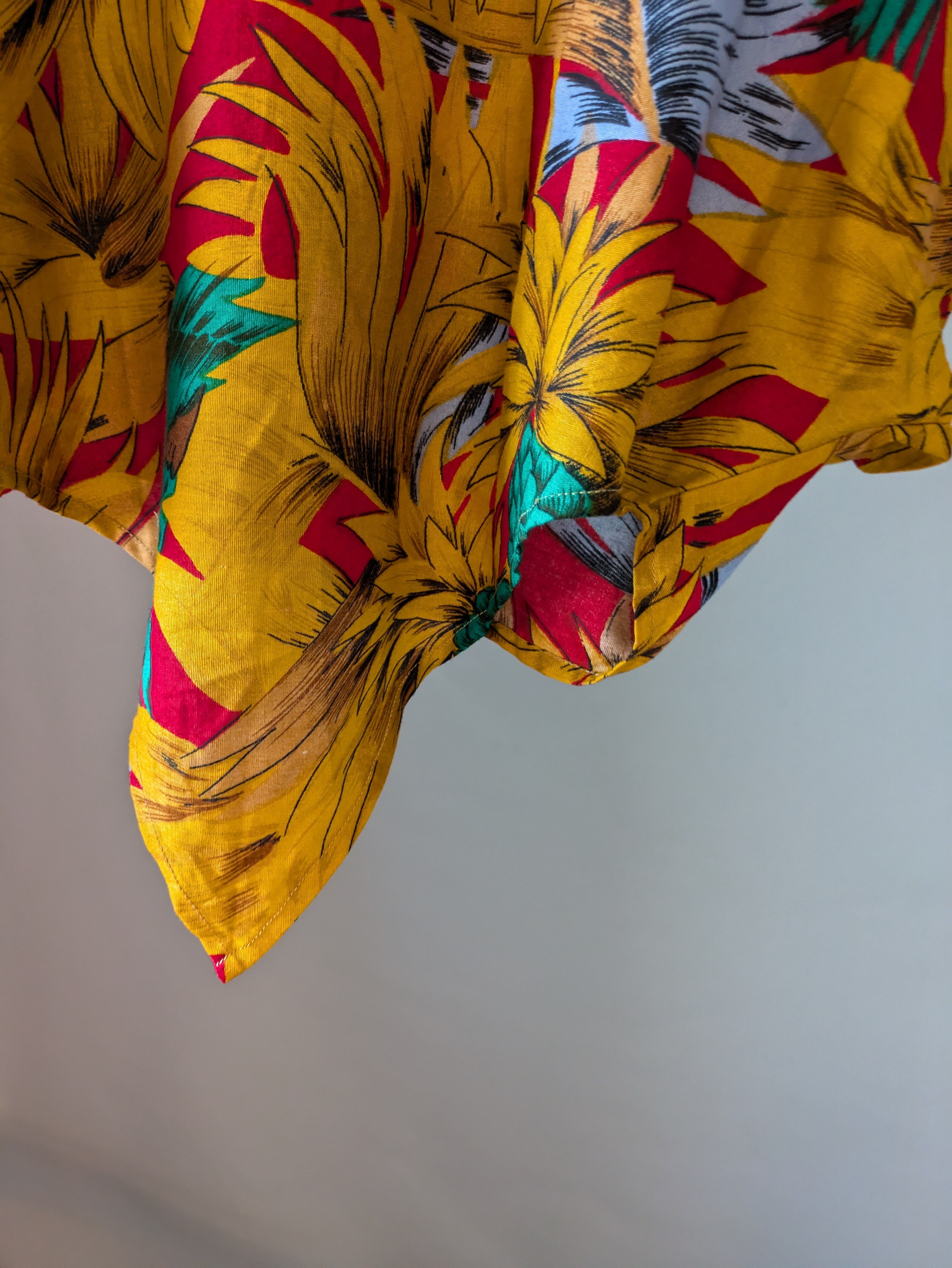 華やかなボタニカルプリントが目を引く、ショートポンチョです。軽やかなコットンの素材感とリラックスしたシルエットが特徴でどんなスタイルにもレイヤードとしてもお使いいただけるアイテムです。