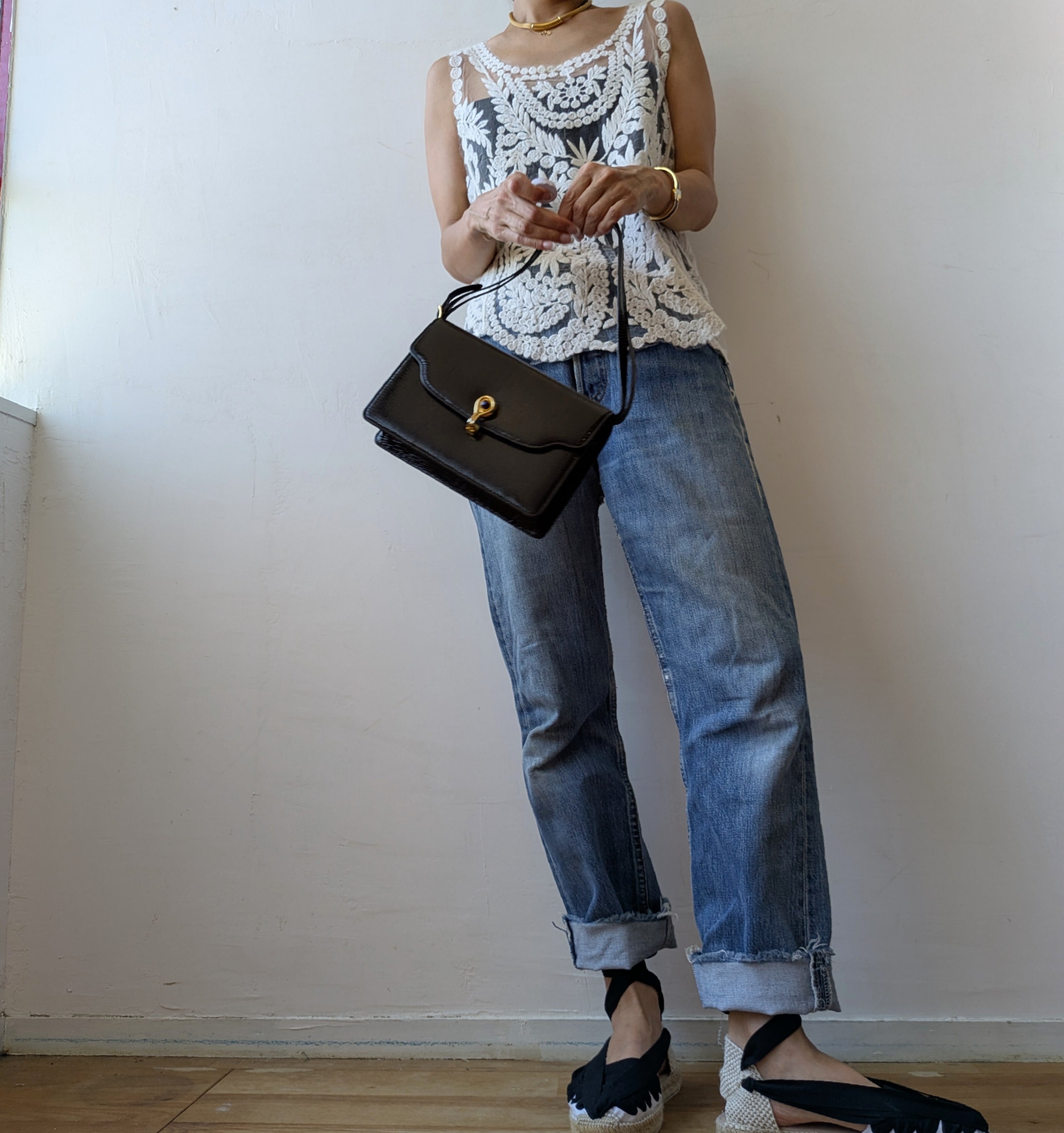高級リザードレザーとラピスラズリの金具のショルダーバッグです。