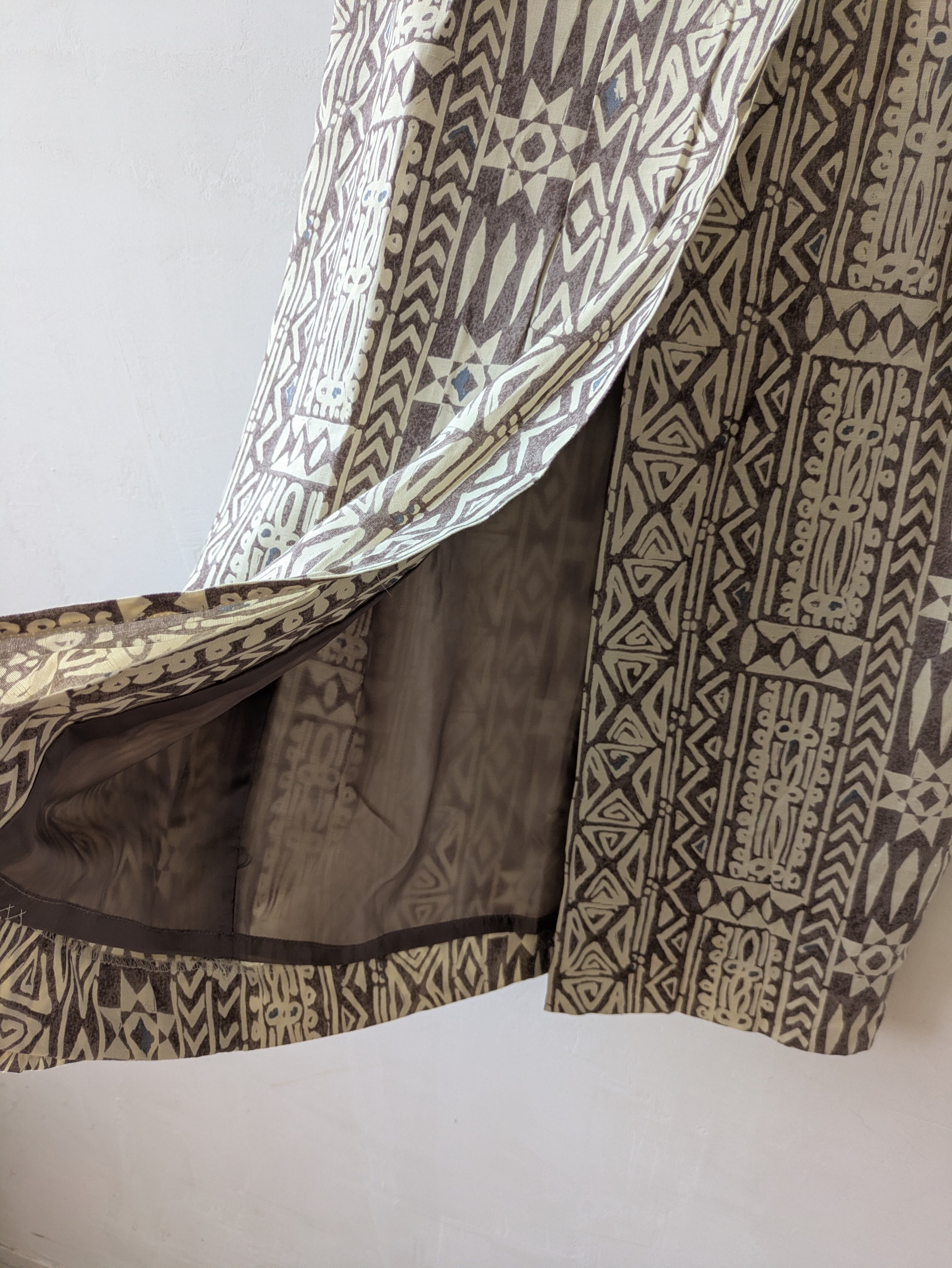 スタイリッシュな幾何学模様が特徴のGeometric pattern wrap pencil skirtです。