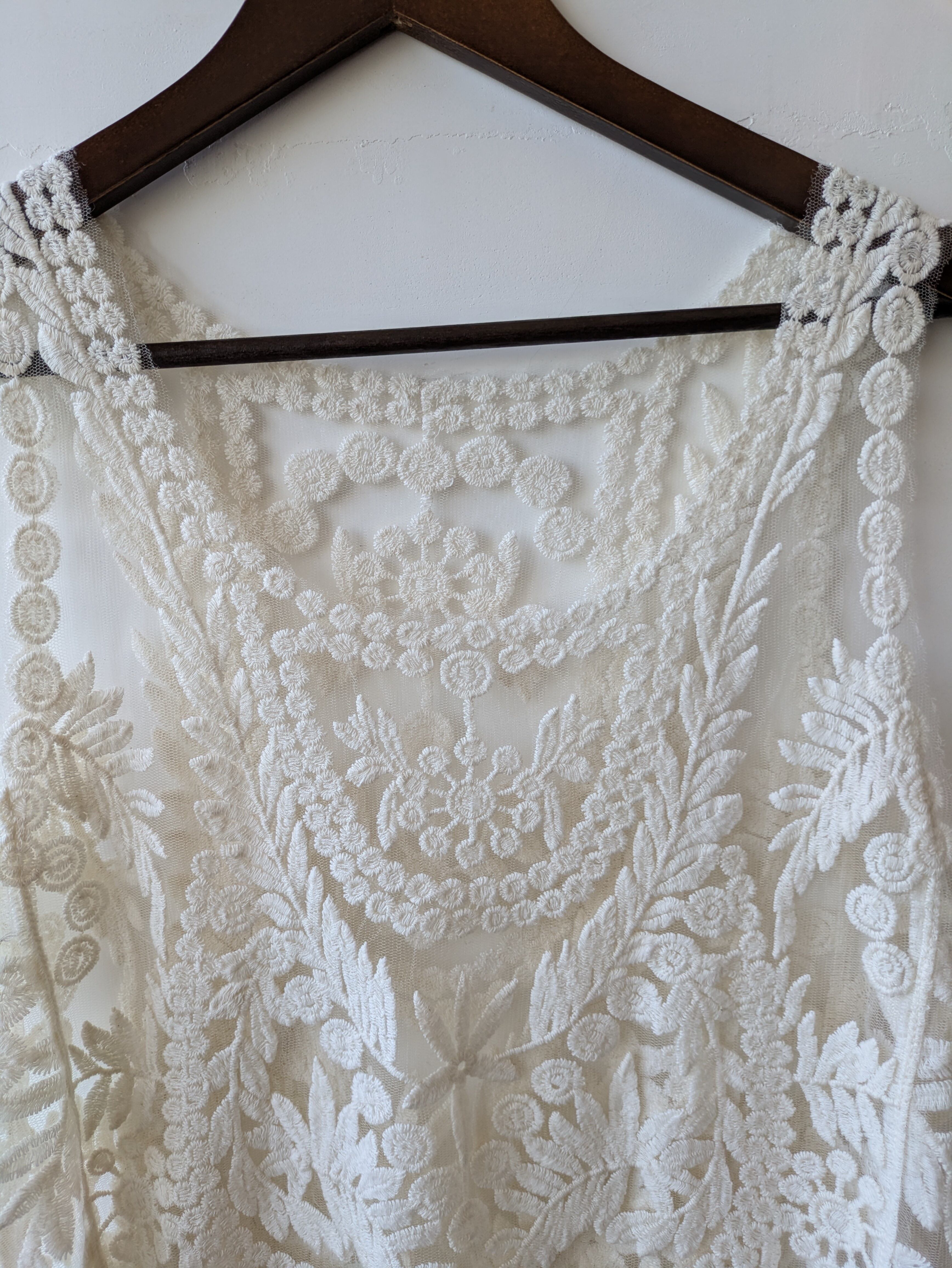 繊細なチュール素材と軽やかなコットンレースデザインが魅力のTulle race Tank topです。