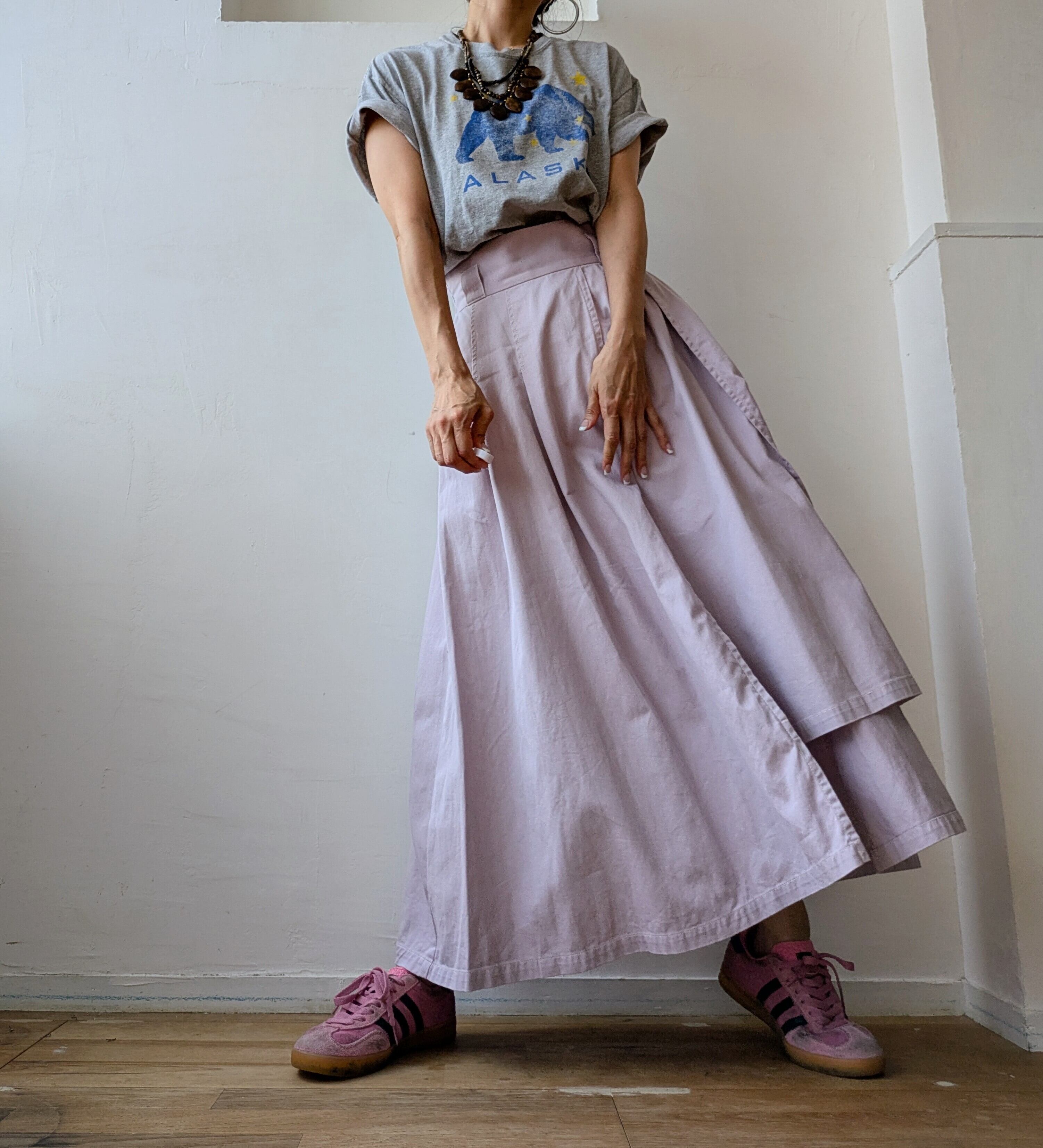 柔らかく、優しい印象のラベンダーカラーの「Lavender color Asymmetrical design long skirt」