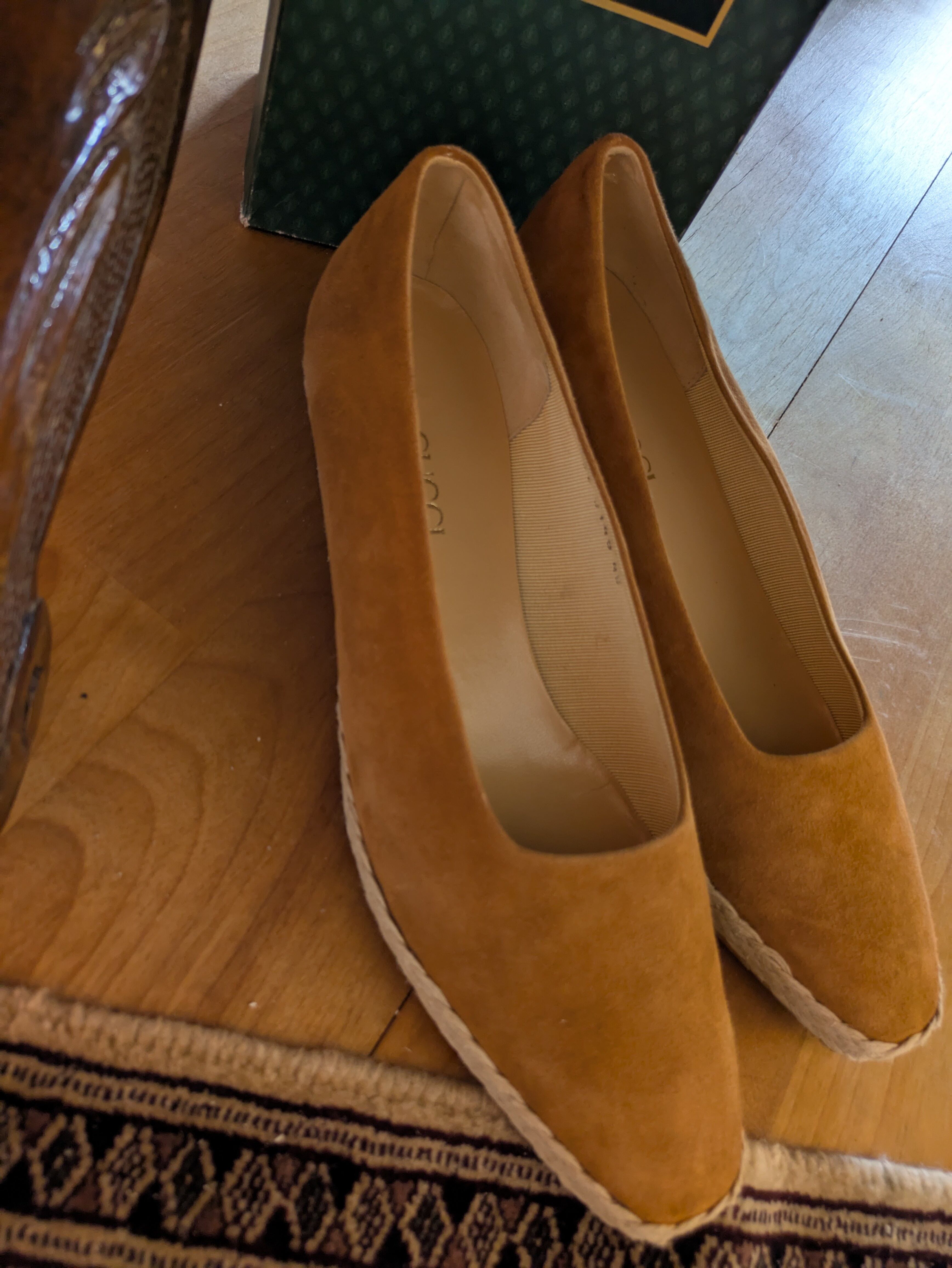 Vintage/80's Old GUCCI Suede×jute wedge sole pumps