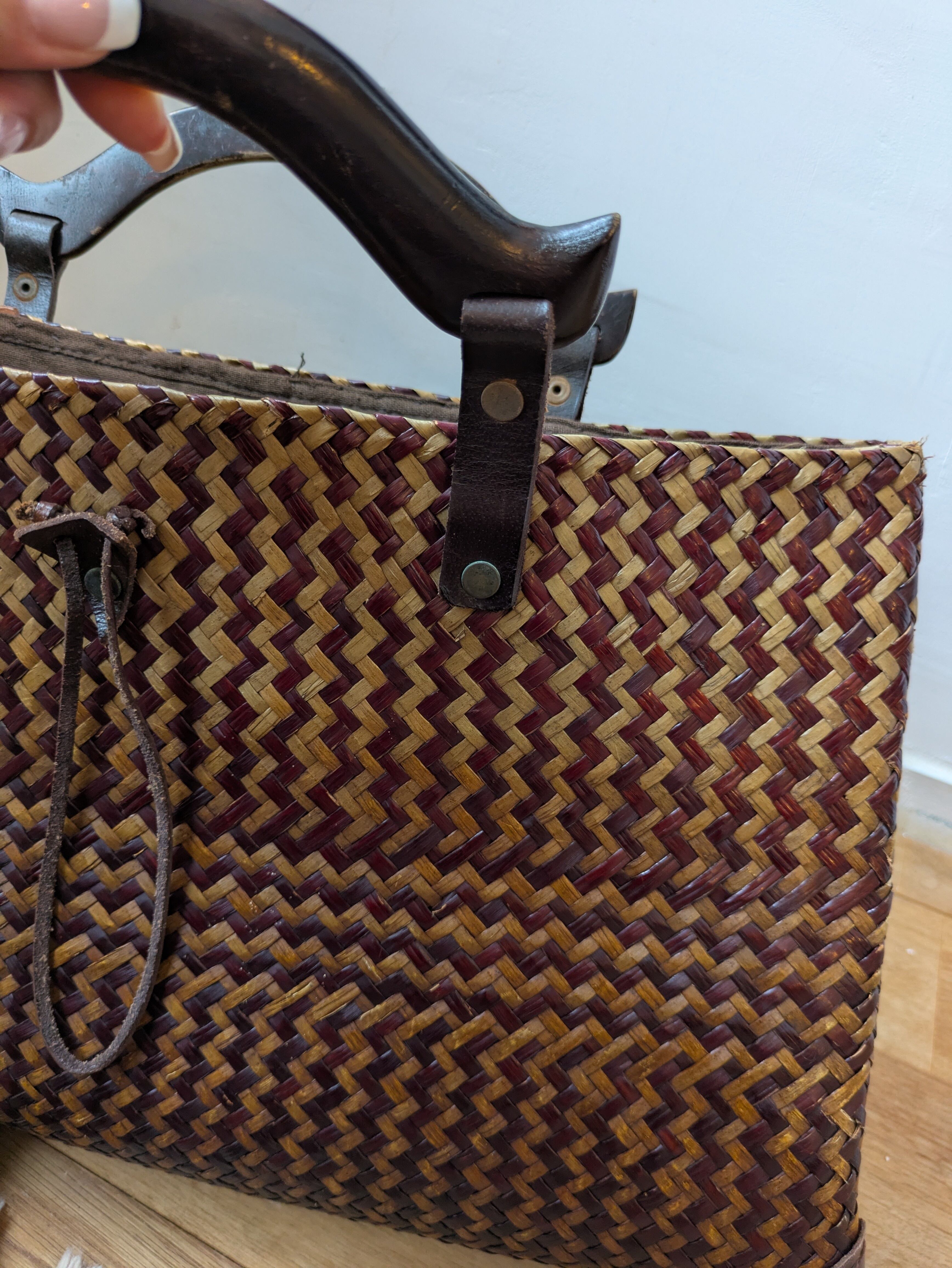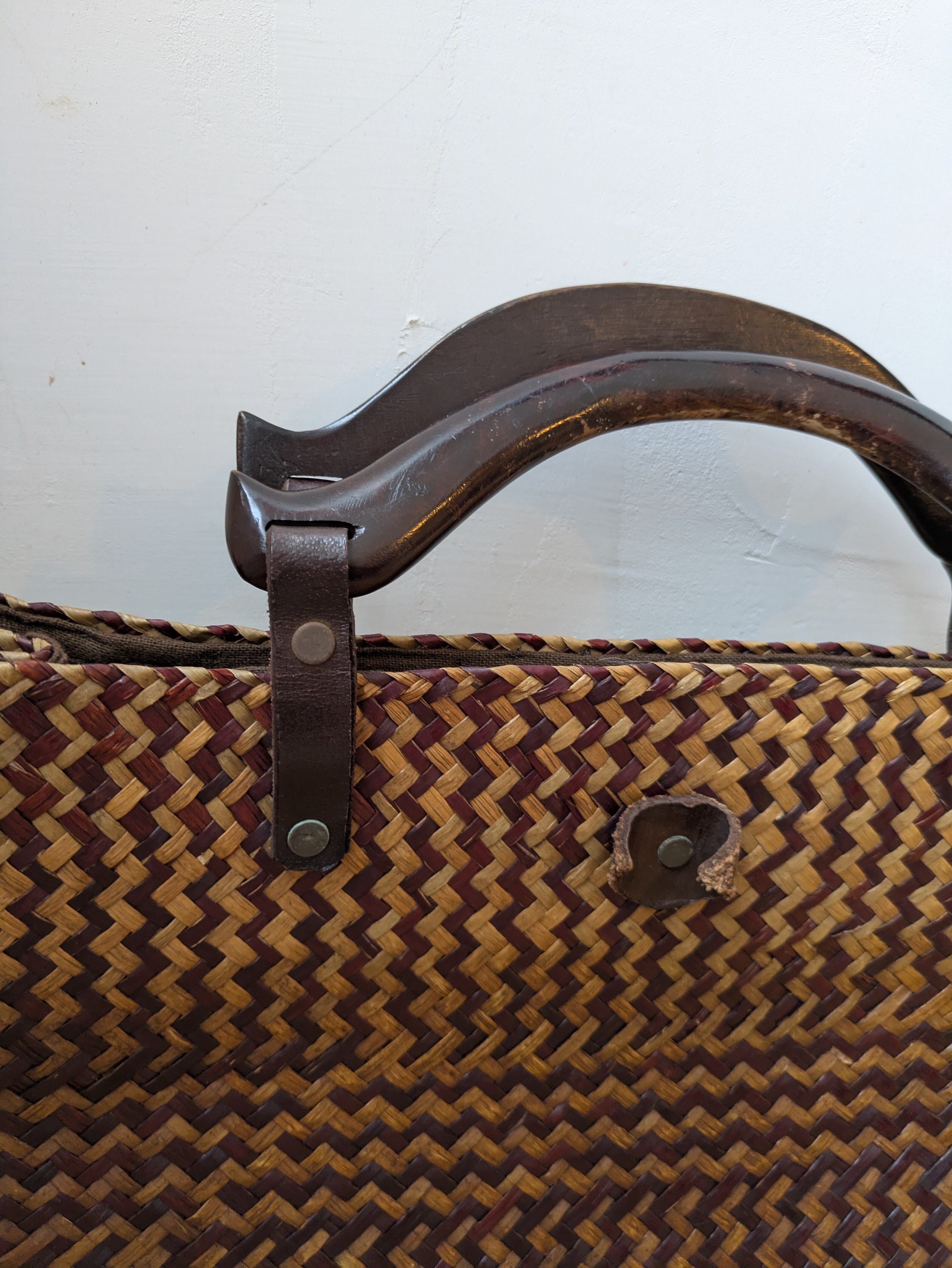 エレガントさとナチュラルさが魅力「Wood handle rattan & leather bag」です。
