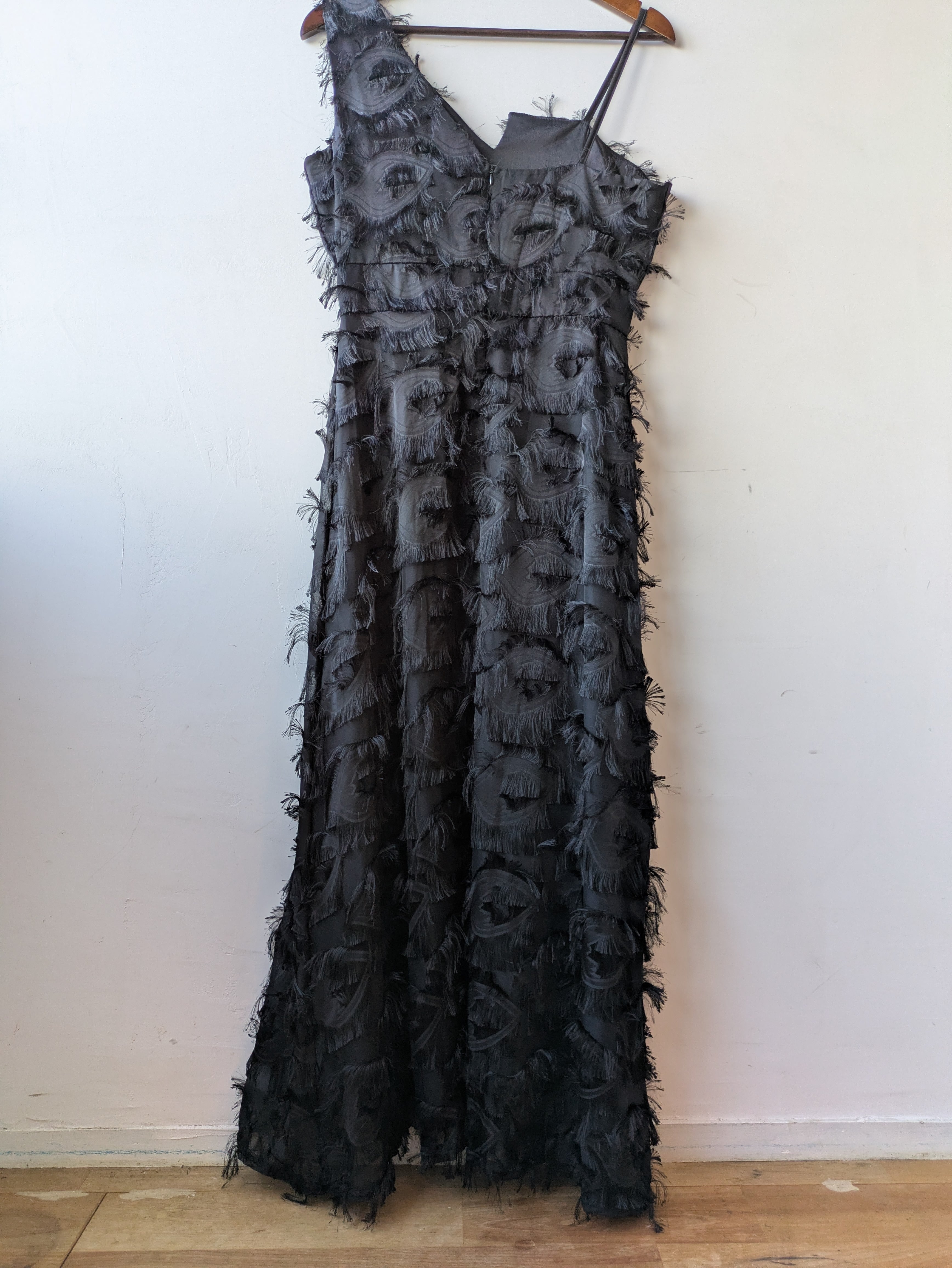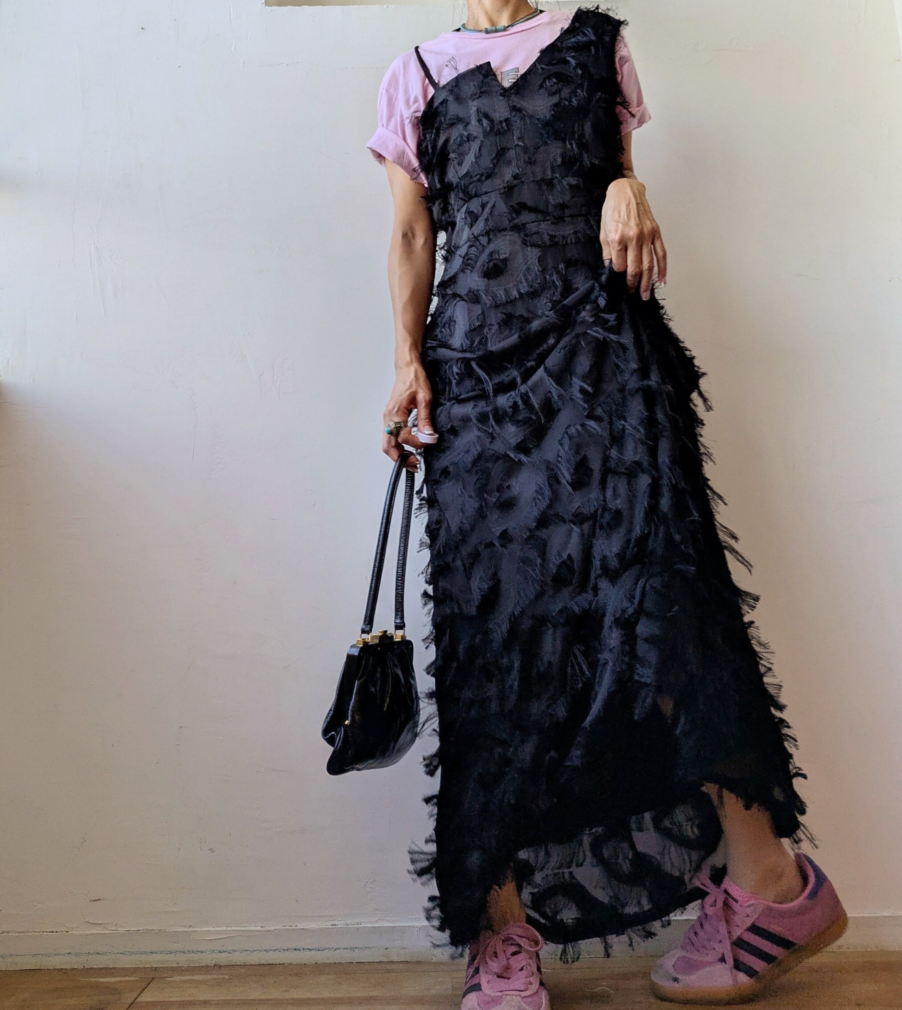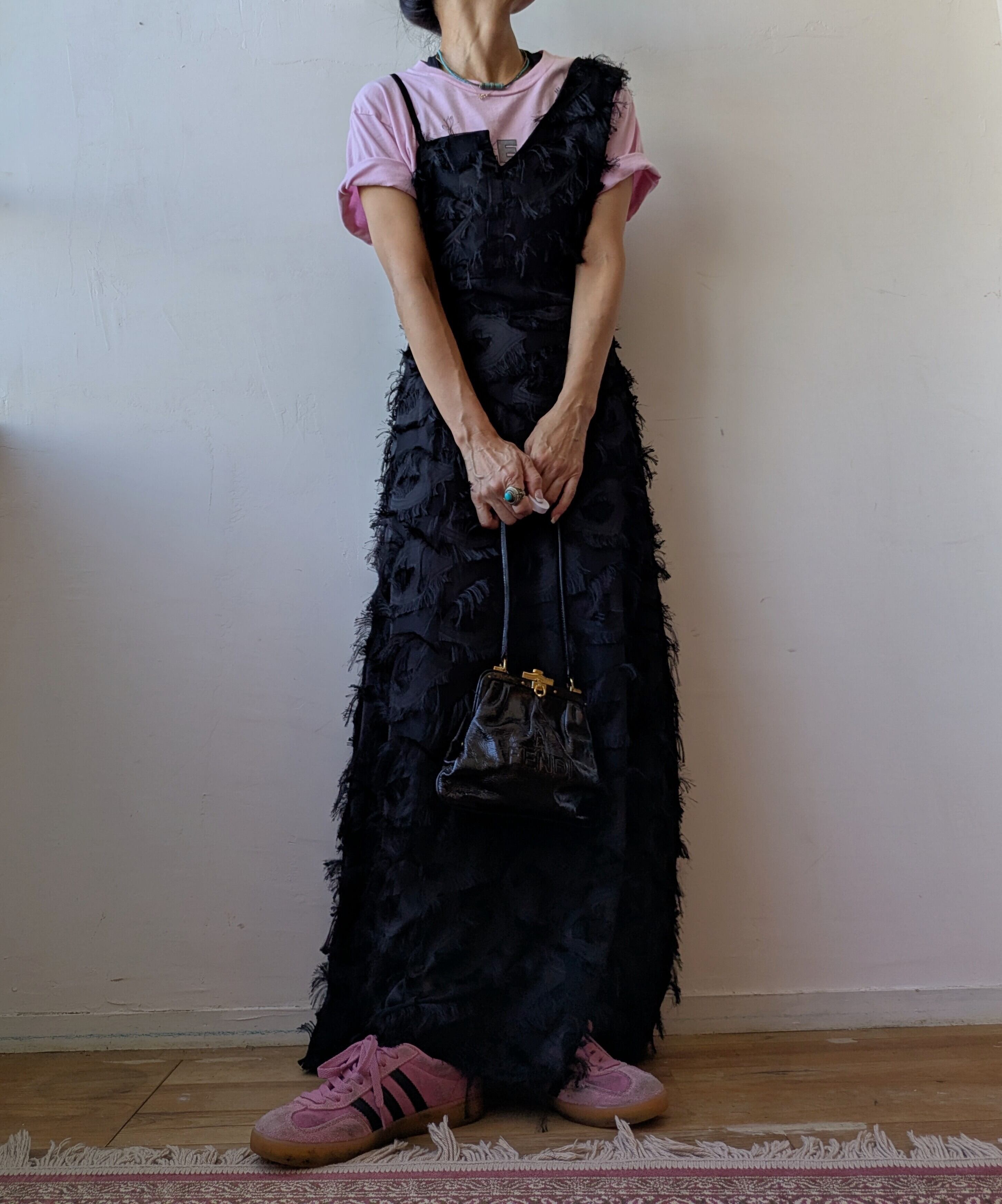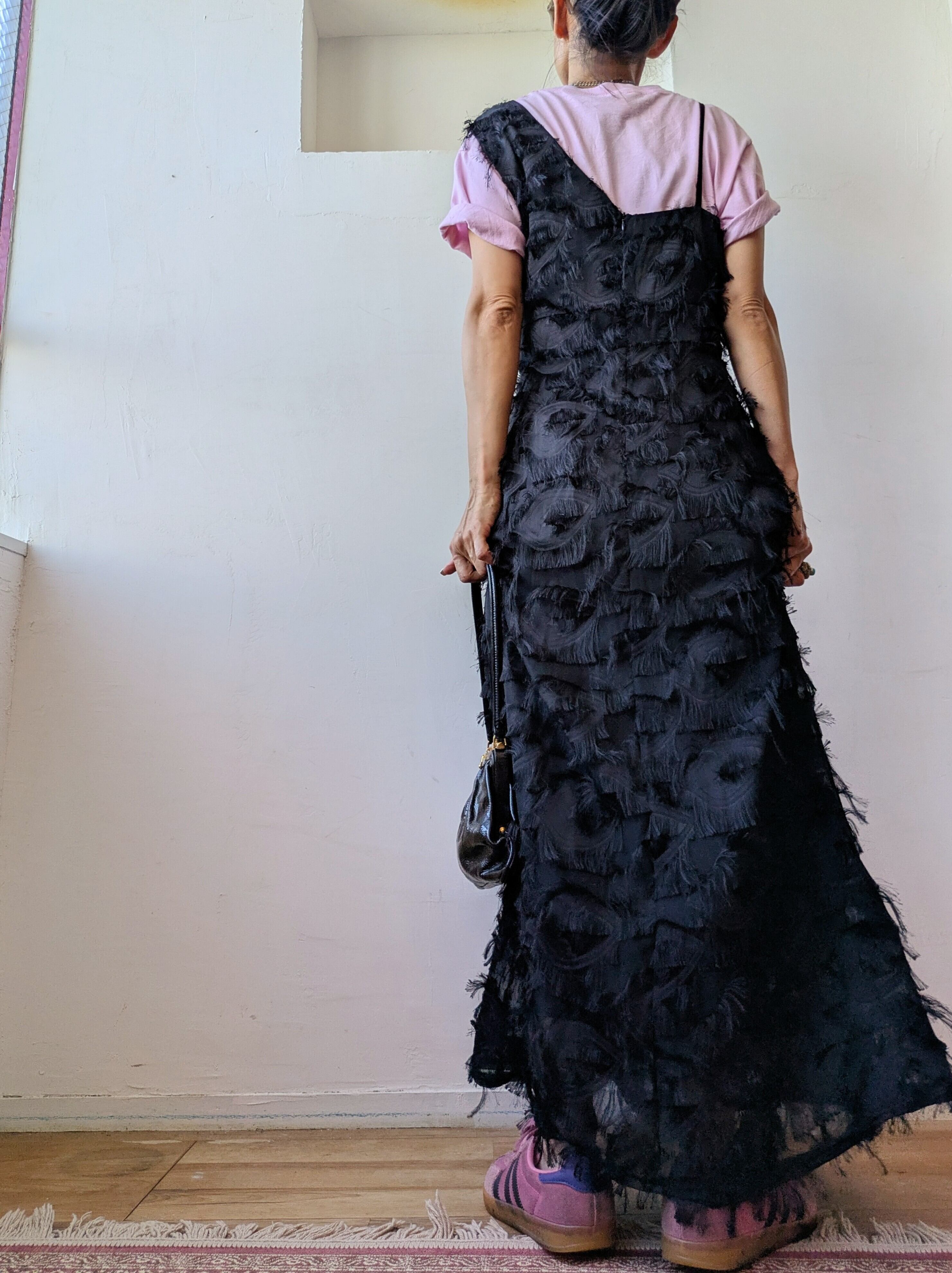 レディな雰囲気とトレンド感も満載の「USA Shaggy fringe long dress」です。