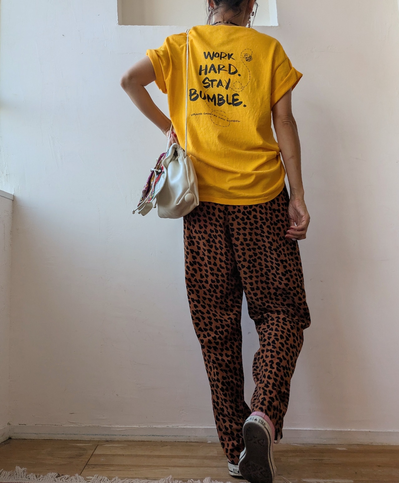 ハードすぎない、可愛いらしいデザインのleopard柄がカジュアルな装いに個性をプラスしてくれます。テロンとした滑らかで柔らかな素材感とゆったりとしたシルエットが特徴で、デイリーコーディネートにぴったり。