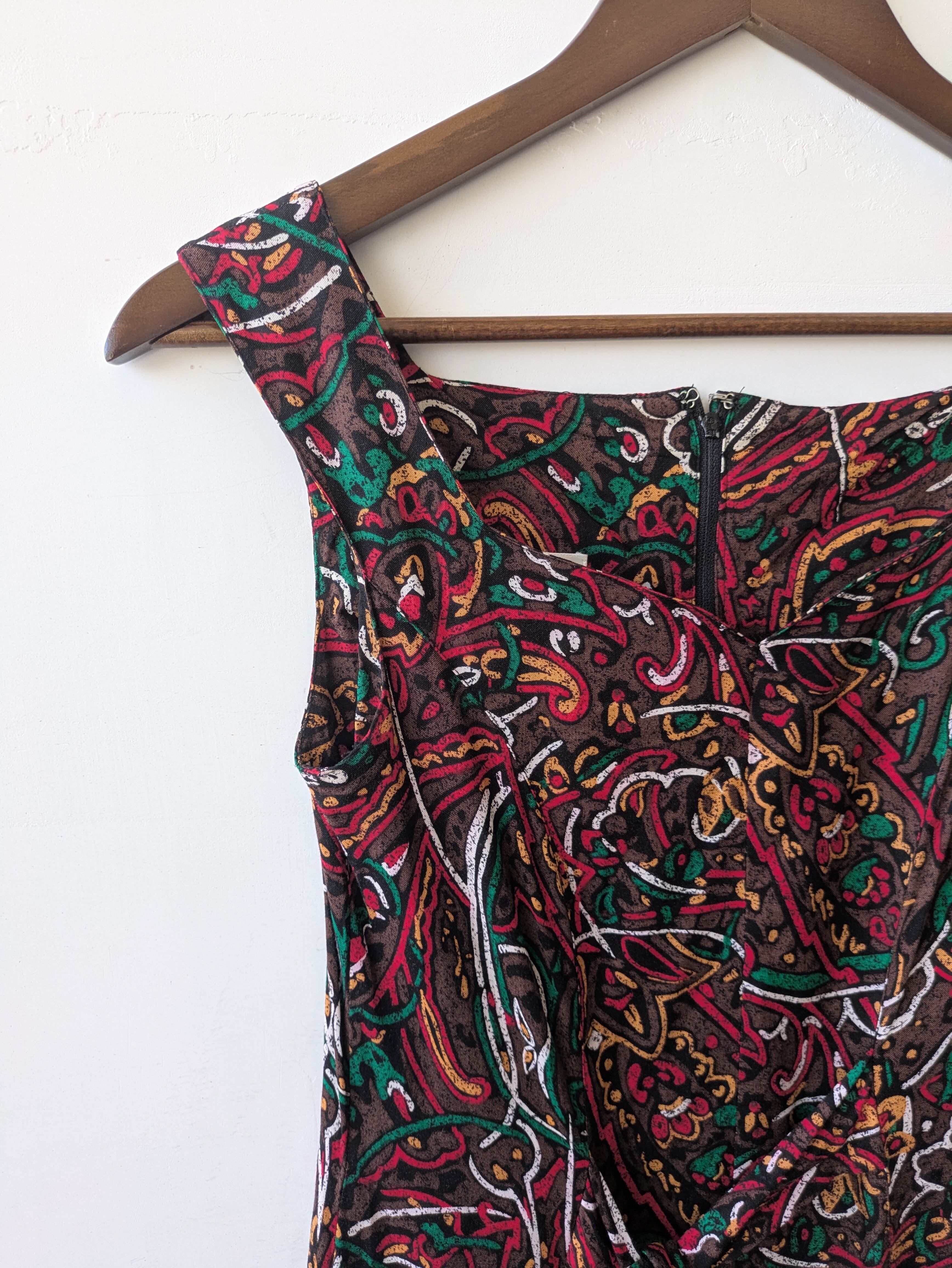 独特のバティック模様が目を惹き、軽やかなフレアシルエットが特徴で、女性らしさを演出します。肌触りの良いコットン生地で、着心地も快適。