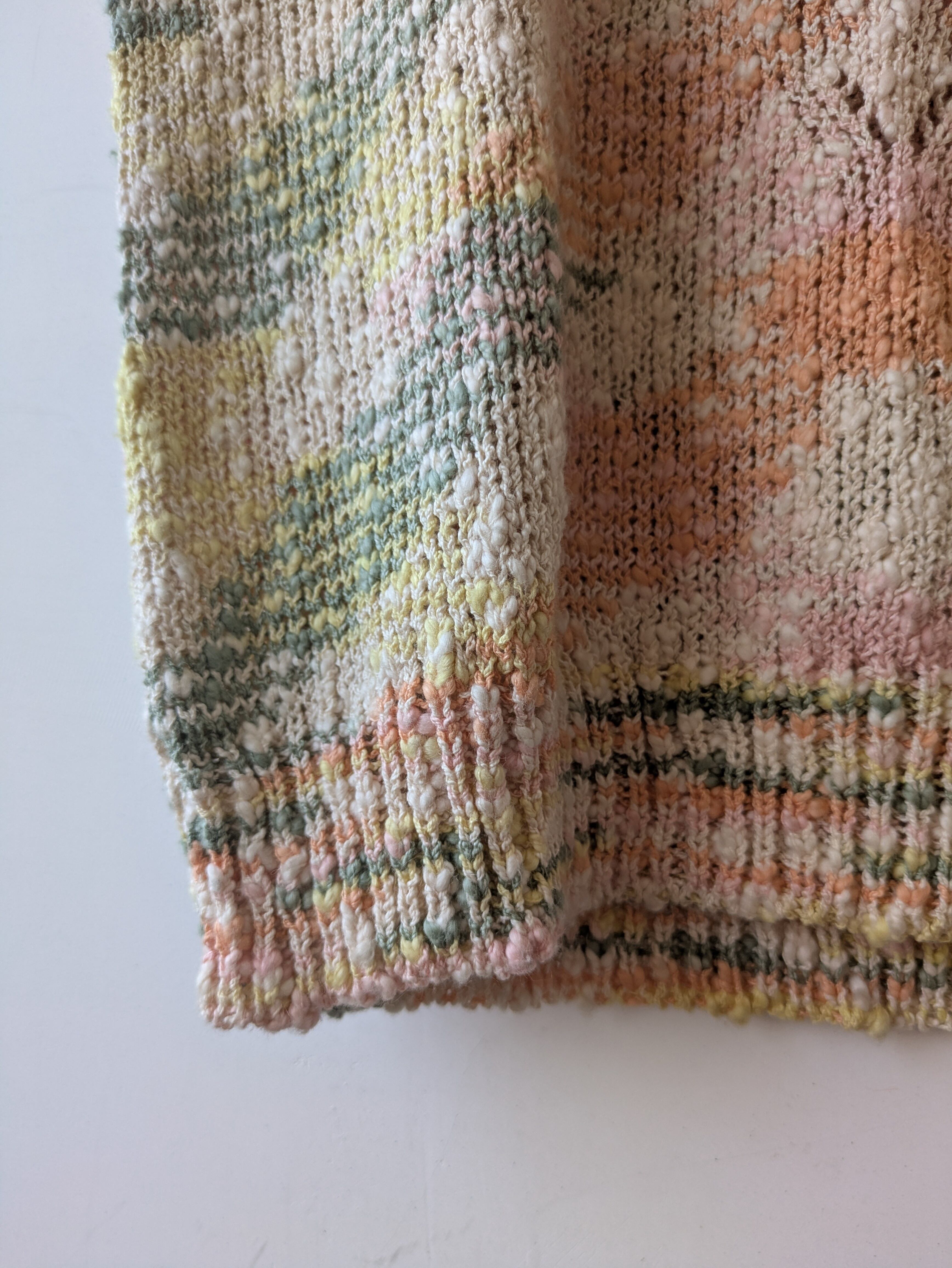 明るい色合いの柔らかい雰囲気のミックスニットが魅力の夏にピッタリな涼しげなトップス。