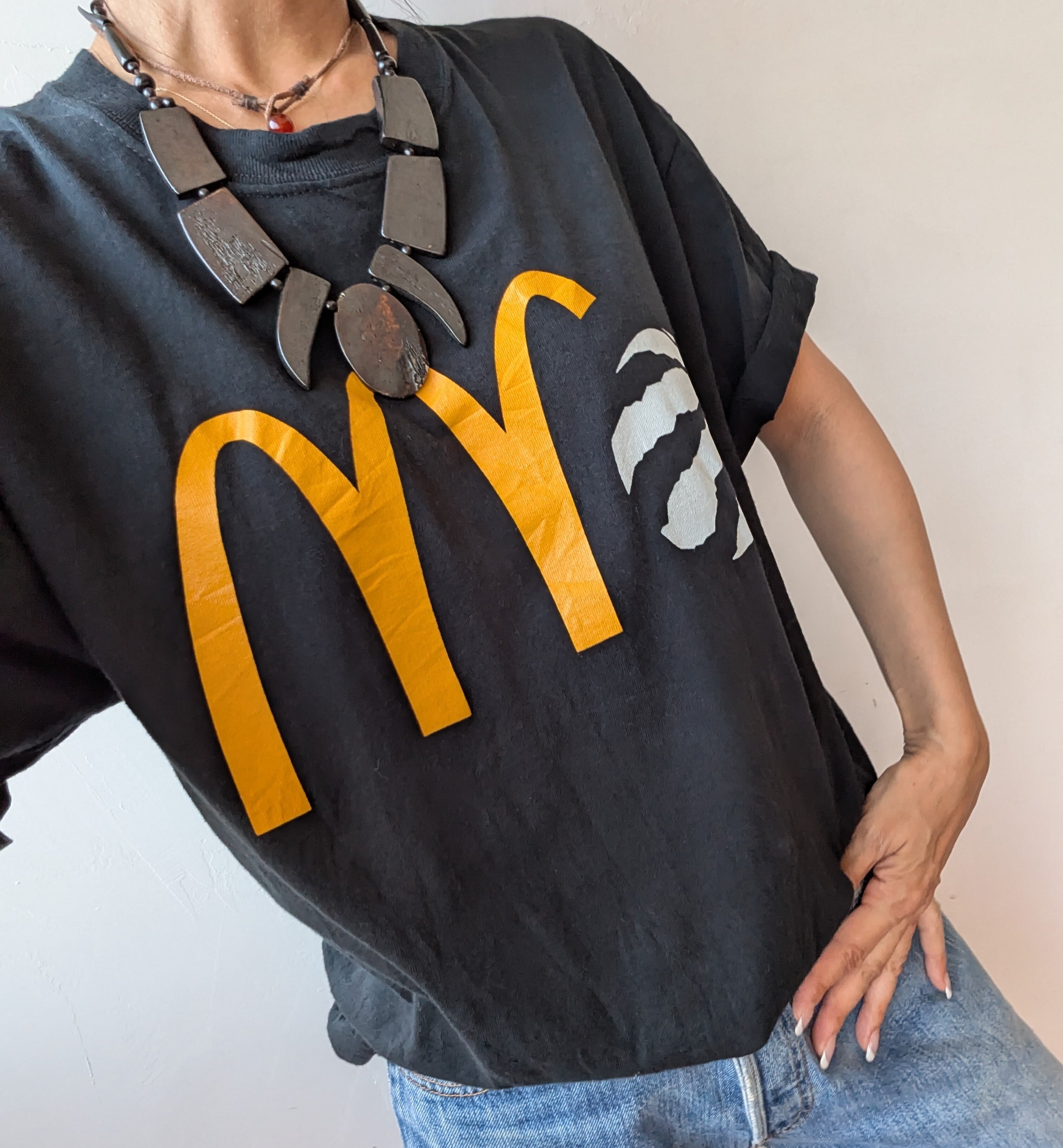 遊び心溢れるパロディプリントが可愛いtシャツ。
