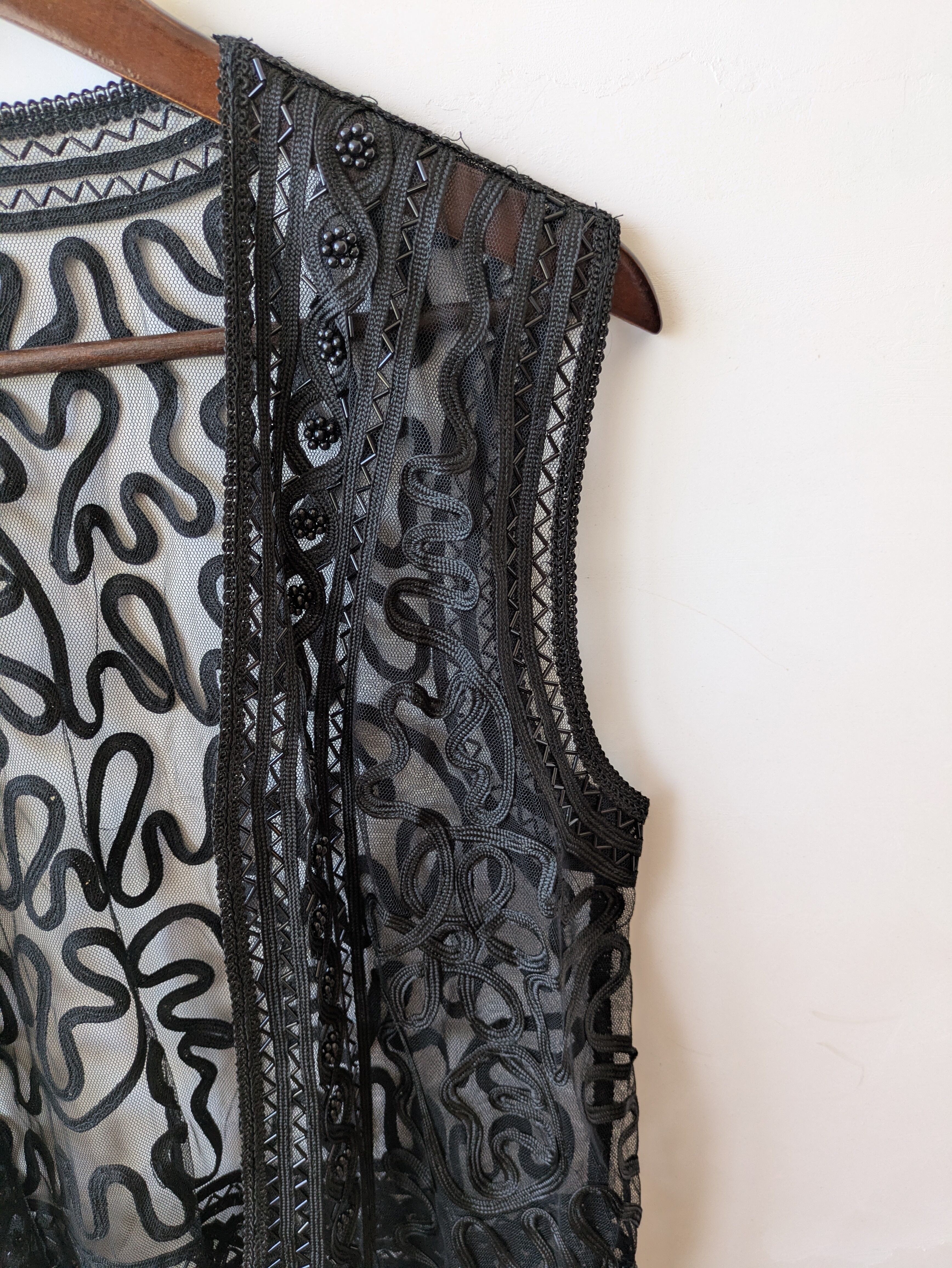 スタイリッシュなコード刺繍とビーズの装飾が素敵なベスト