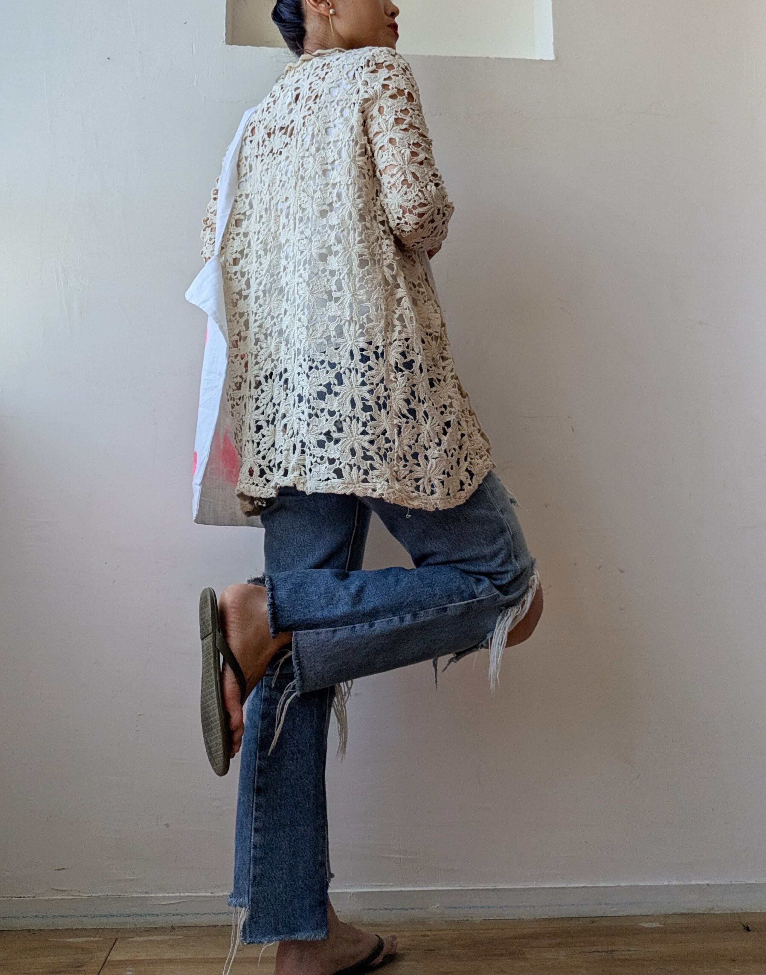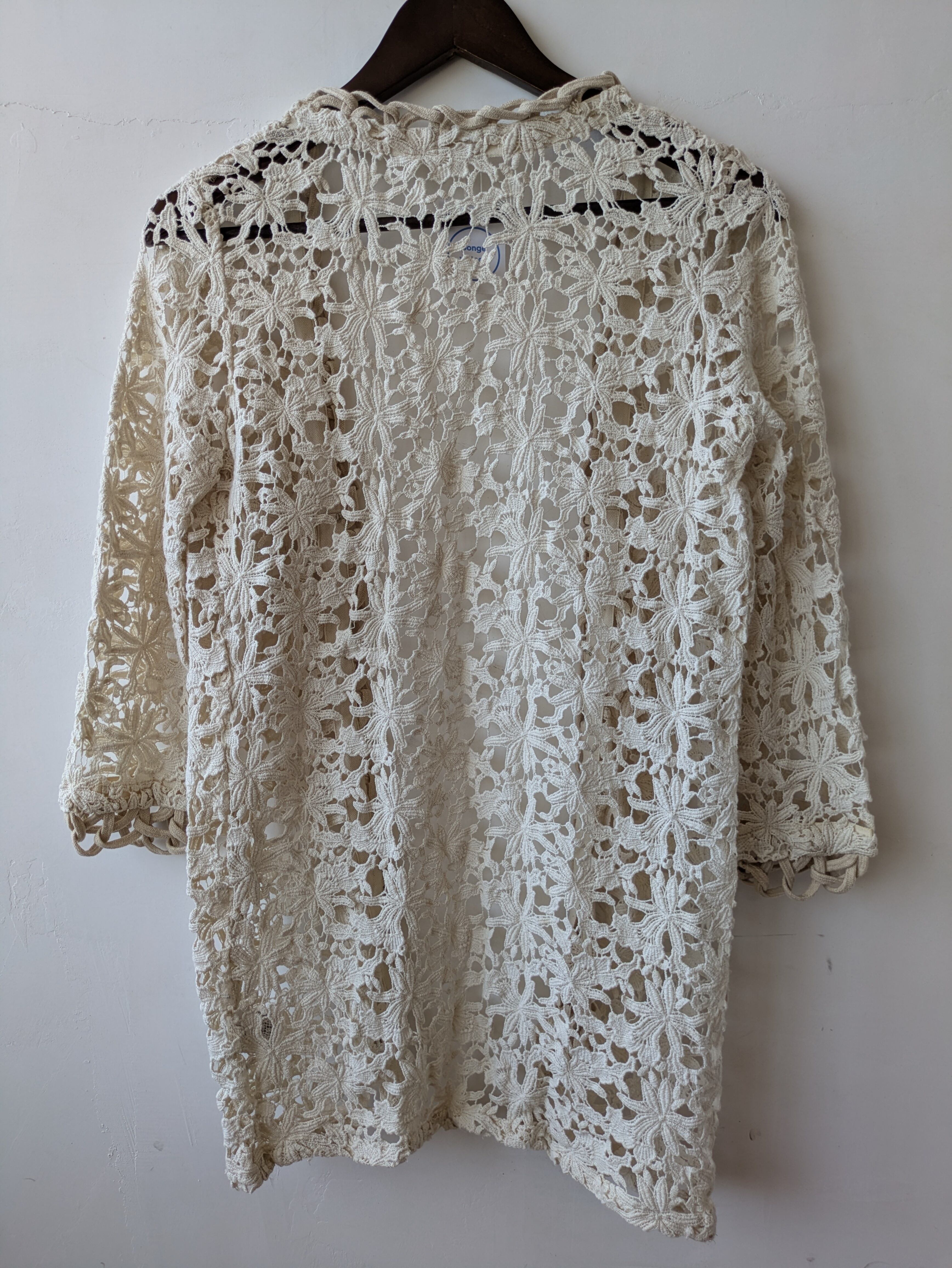 可憐なコットンレースの魅力がたっぷりのカーディガンです。柔らかなコットン素材で、シンプルなコーディネートにアクセントを加えるアイテムです。