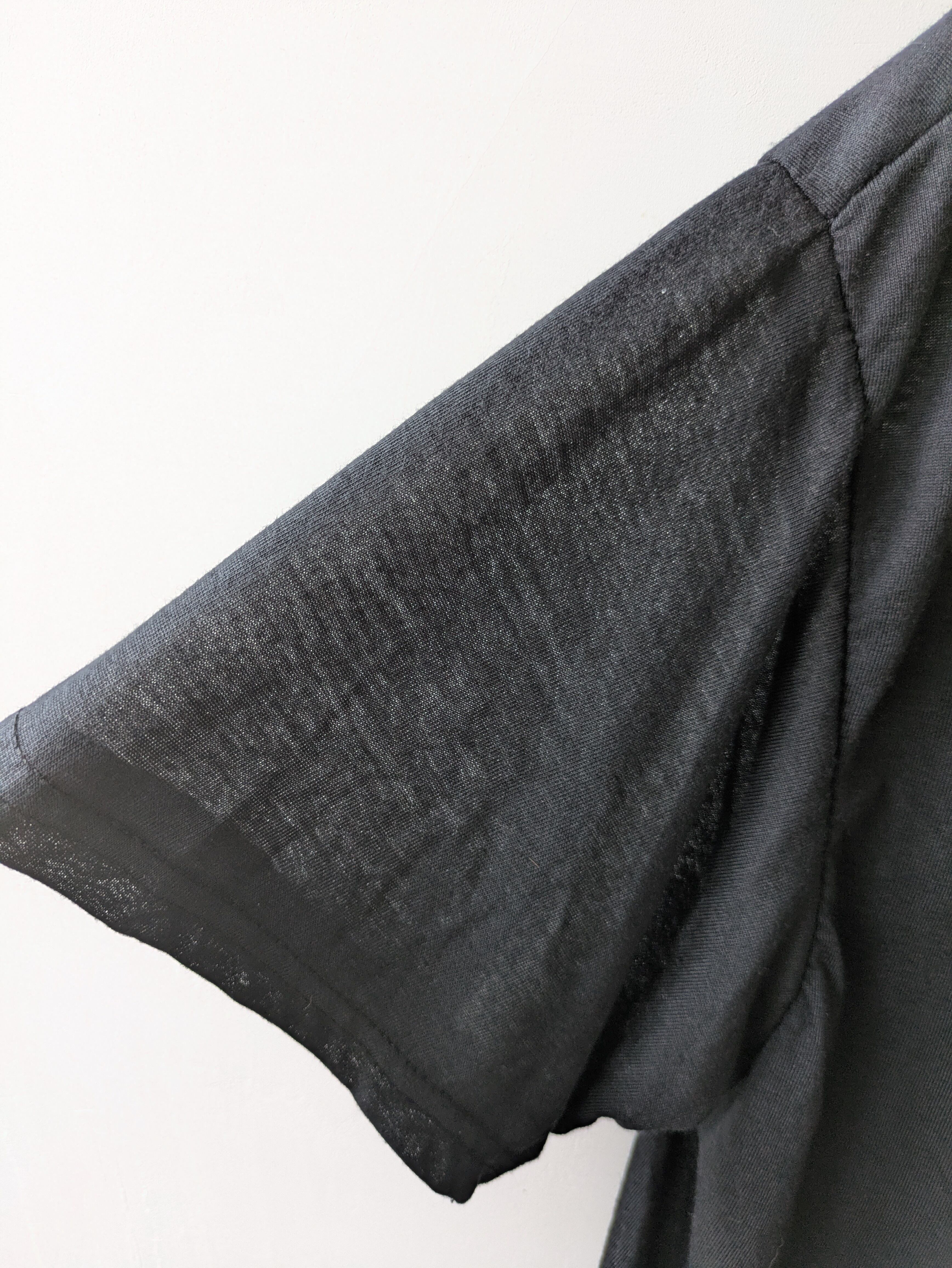 やや透け感のあるくたっと柔らかなコットン素材を使用しており、着心地の良さが特徴。