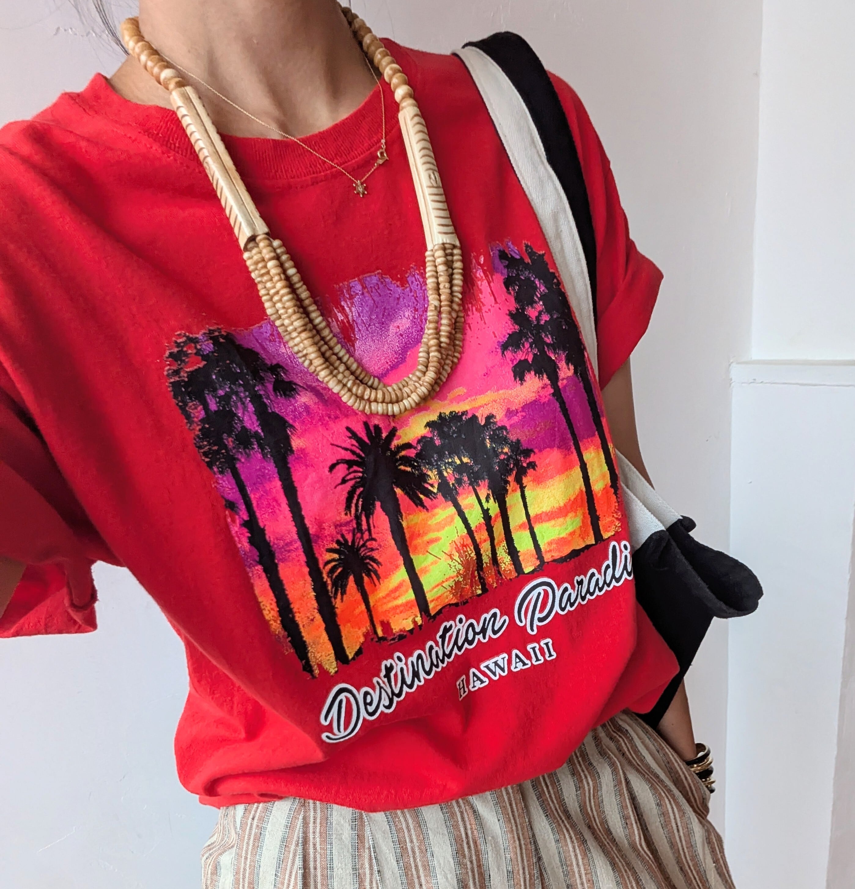 カラフルなカラーとトロピカルなパームツリーのグラフィックが目を惹くUSA palm graphic Tshirt。しっかりとしたコットン素材で心地よい着用感が特徴です。リラックスしたシルエットで、Unisexで着用いただけます。