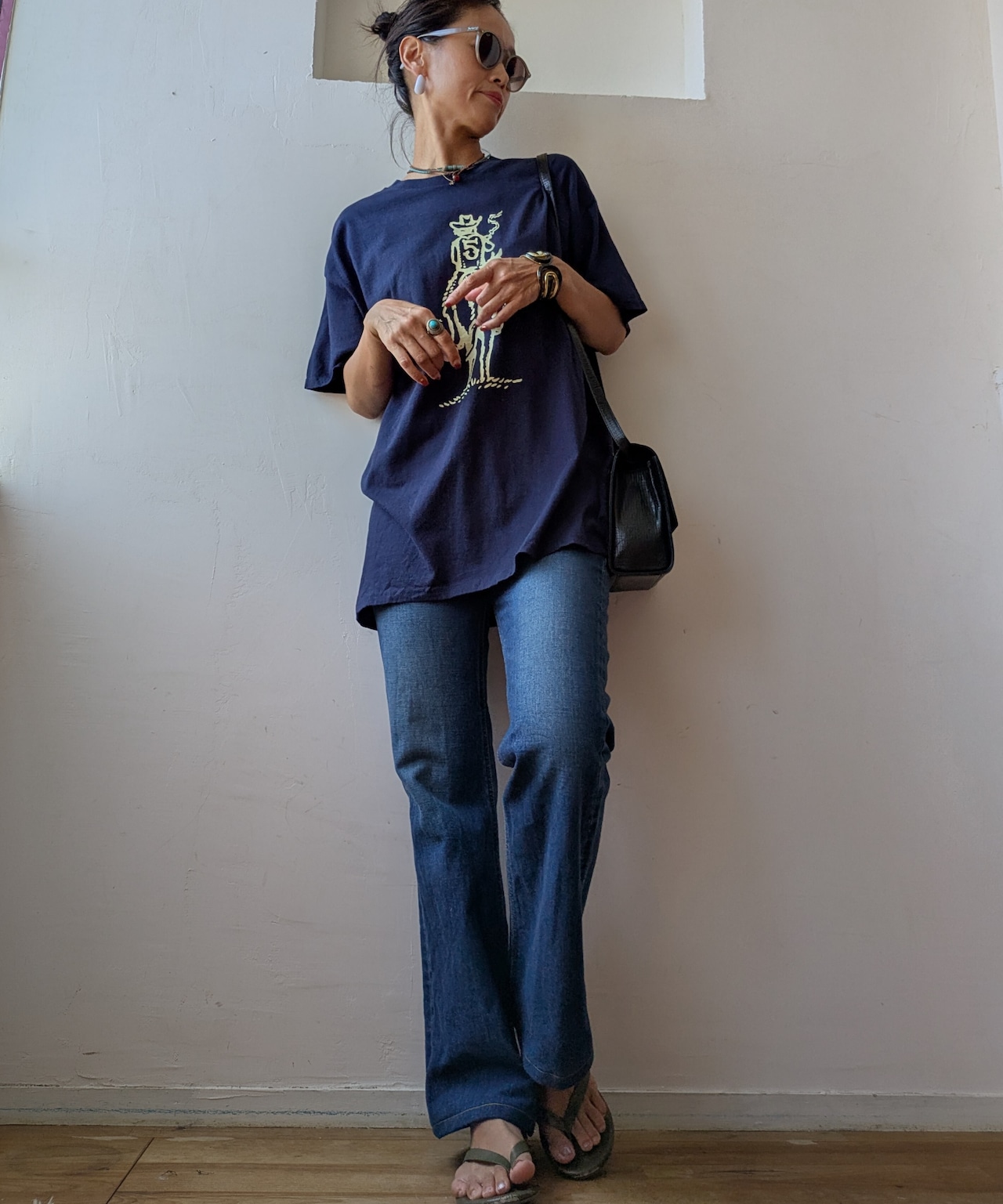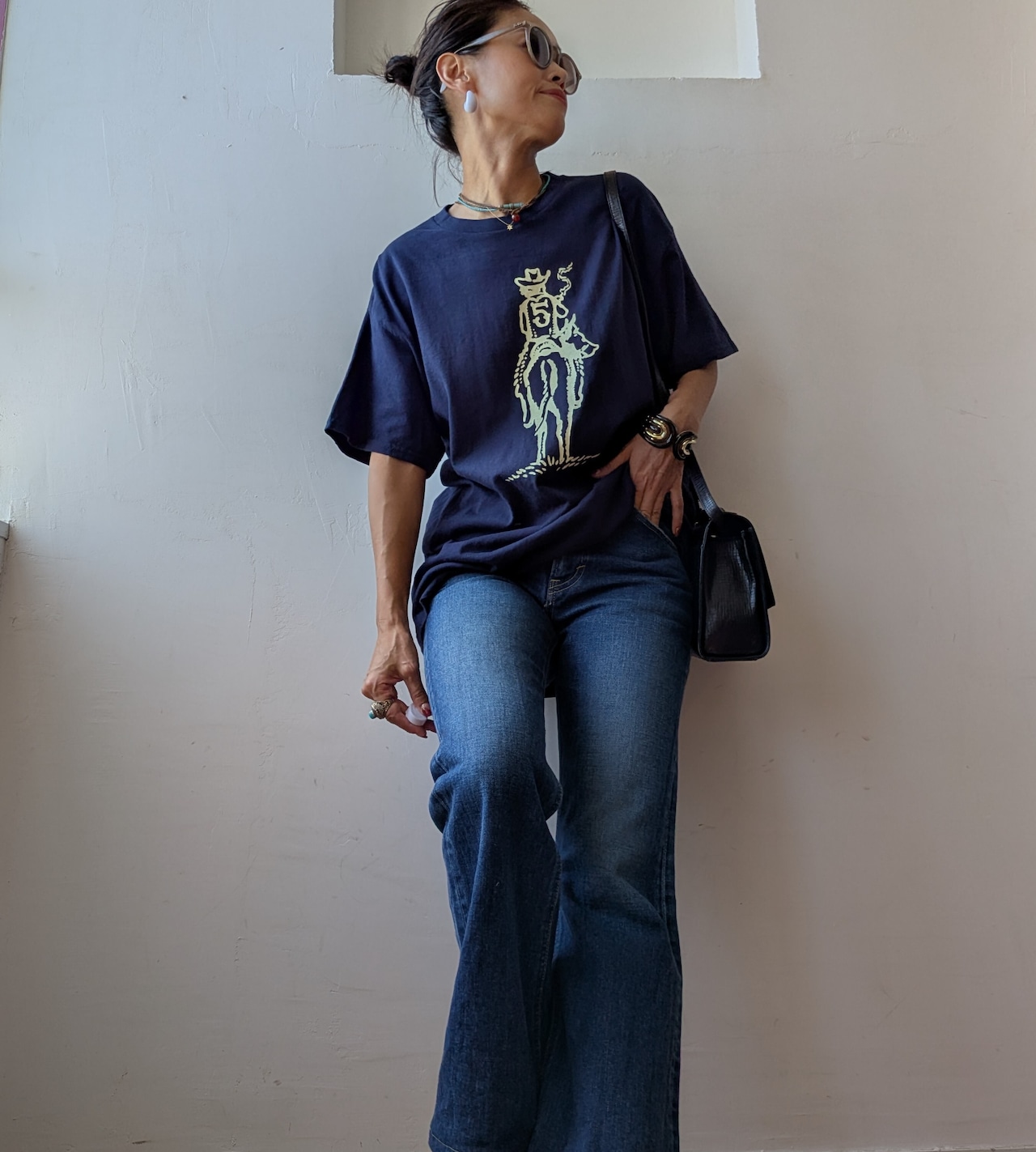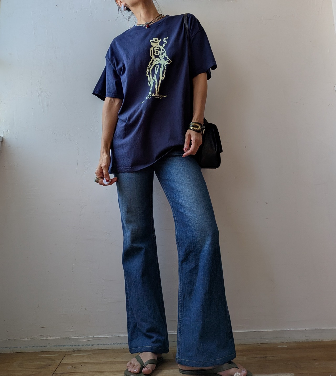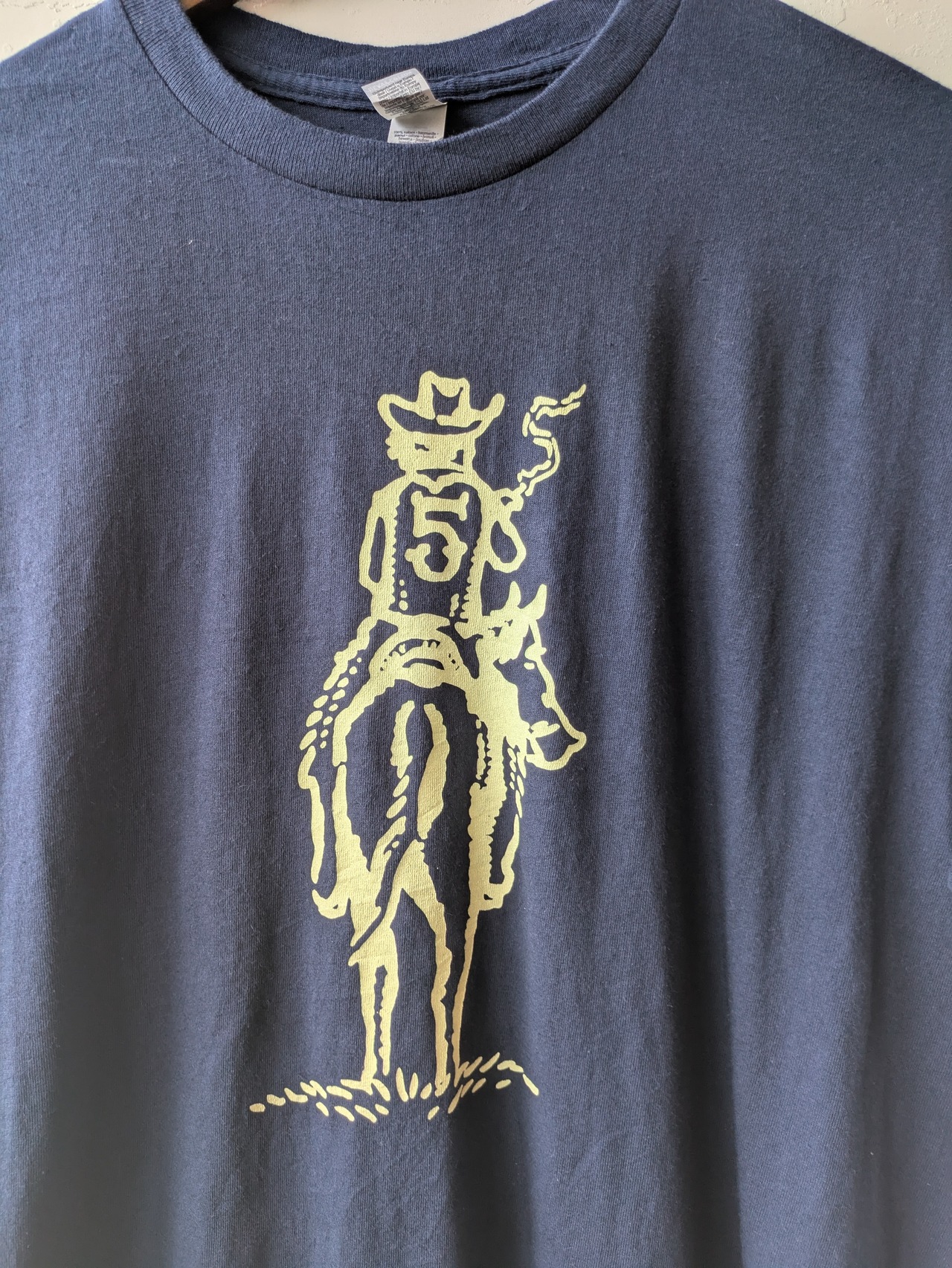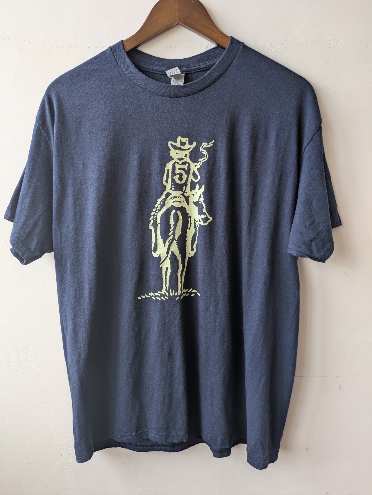 大きなカウボーイデザインがかわいいTシャツですシンプルながらもネイビーのボディが大人っぽさをプラス。