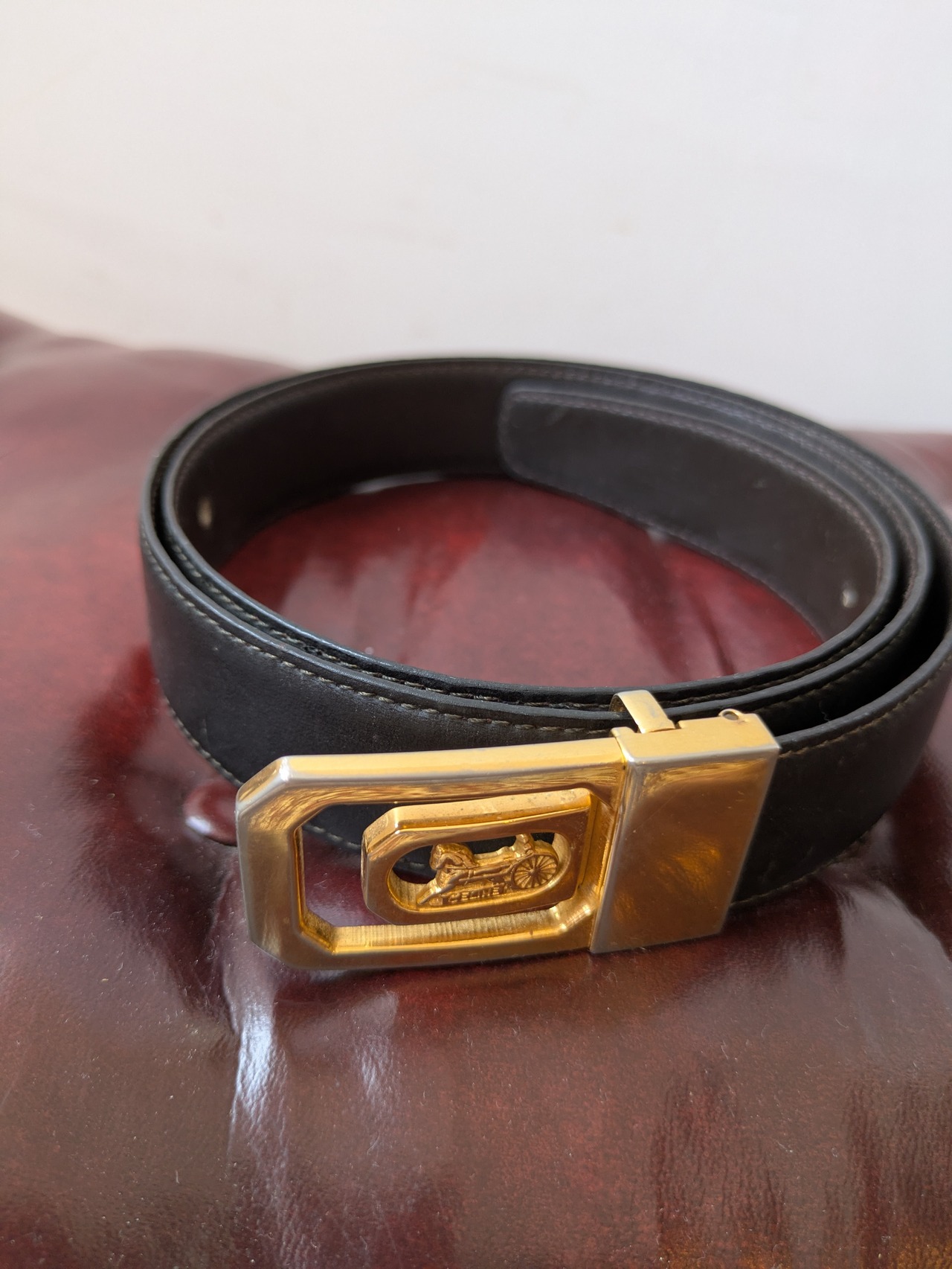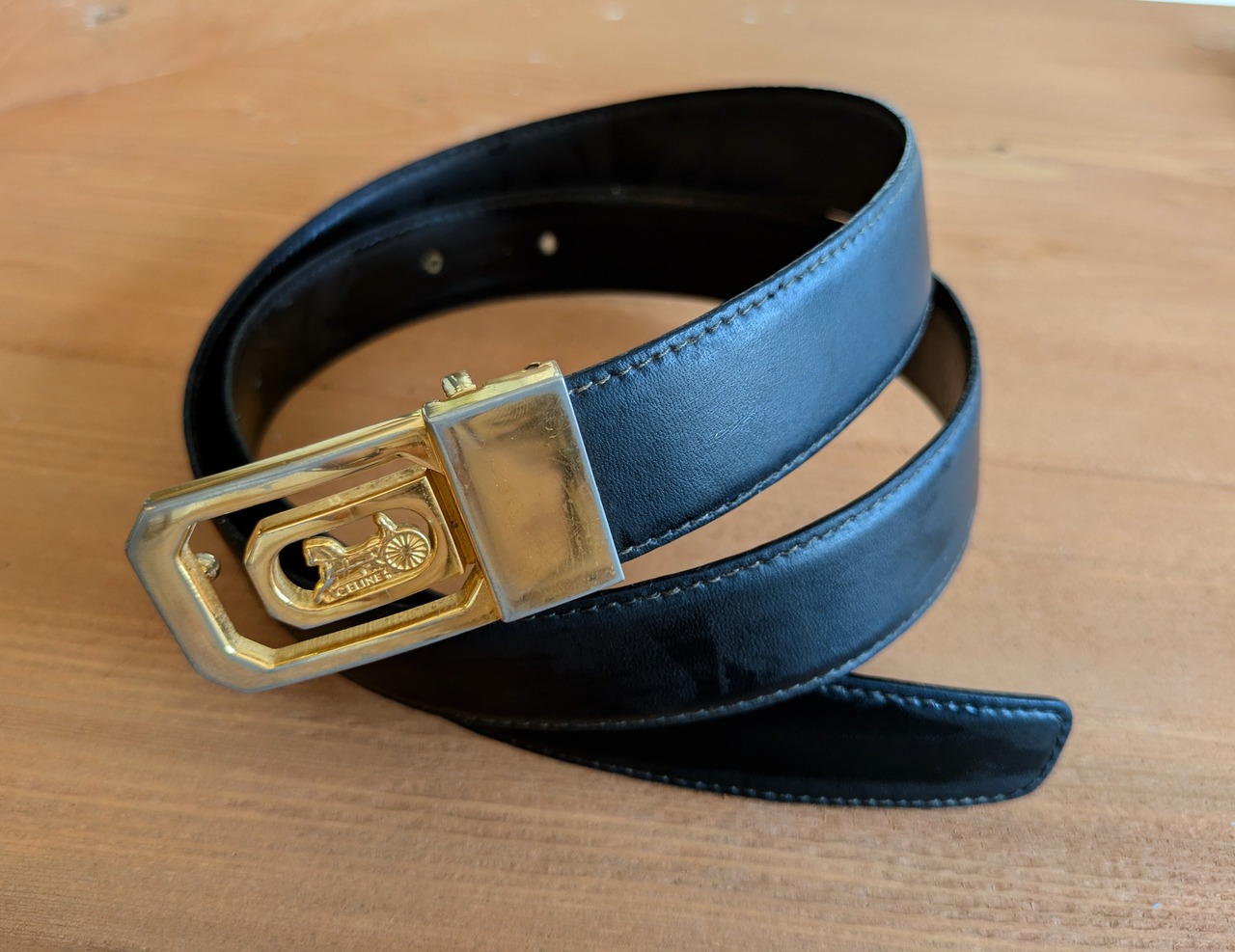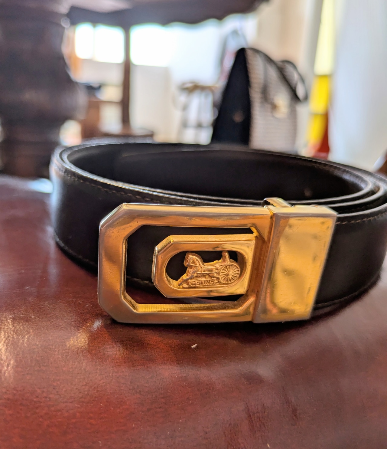 CELINEのモチーフ、馬車のゴールドのバックルが高級感のある、CELINEヴィンテージベルトです。