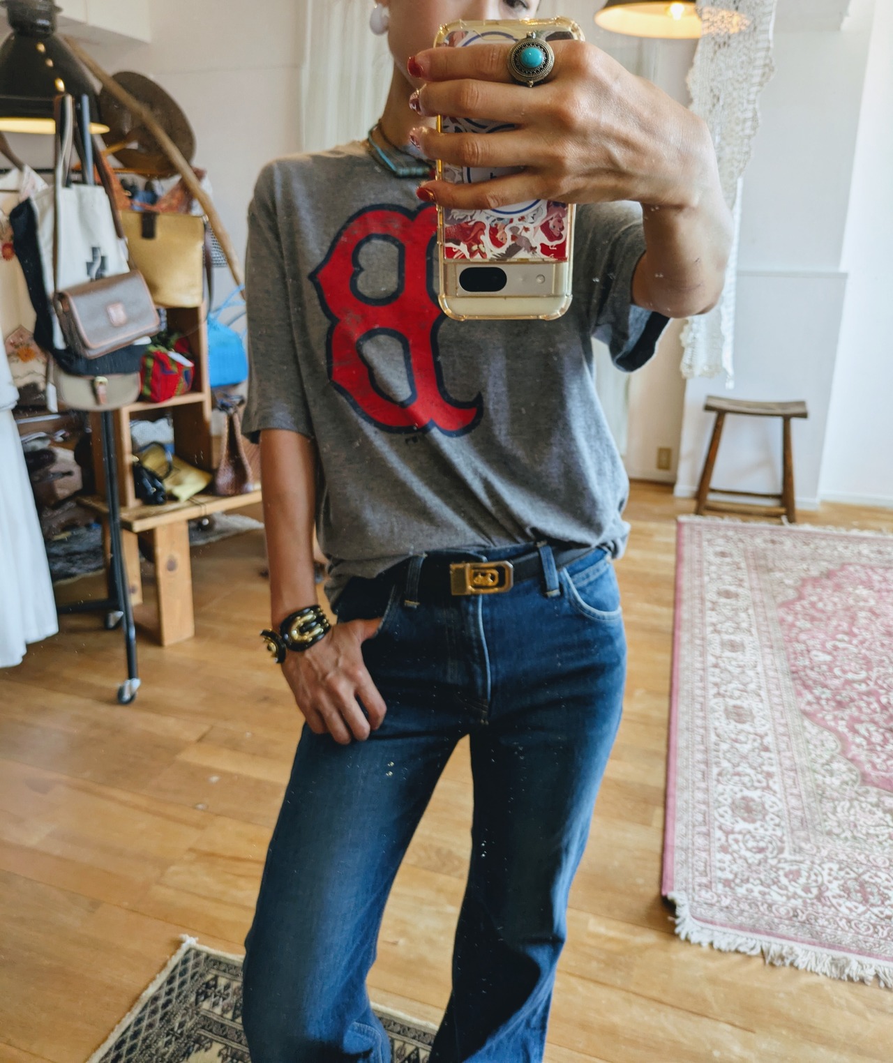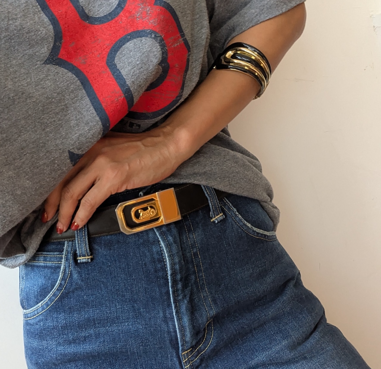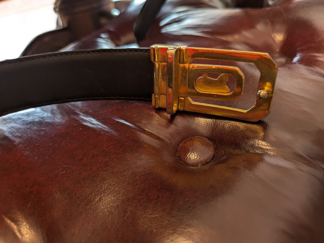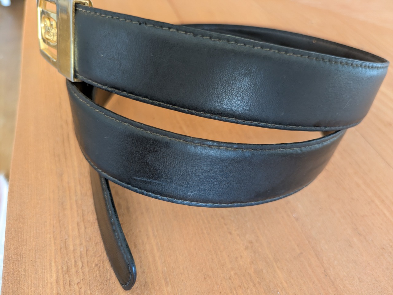 【コメント】全体的に良好なコンディションです。レザー部分にダメージはありませんが、バックル部分にメッキ剥げがあります。画像にてご確認ください。ヴィンテージならではの風合いをお楽しみいただける1点物です。こちらは1点物につき、基本的に返品交換はおこなっておりませんので、ご了承くださいませ。