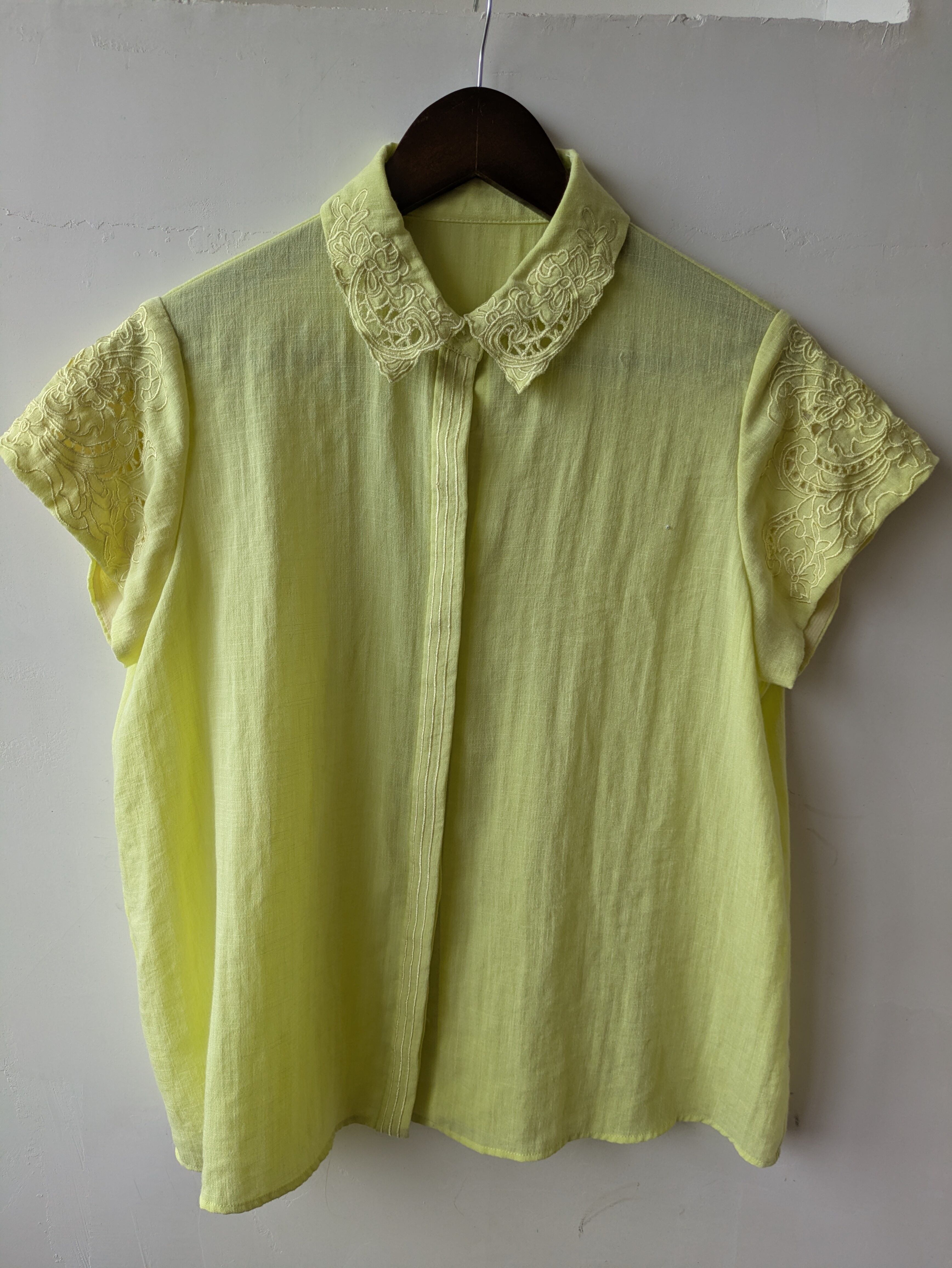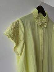 爽やかなレモンイエローが目を惹くdouble gaze刺繍ブラウスです。お袖と襟に細やかな刺繍が施されており、涼しげな印象を与えてくれます。シンプルなデザインながらも、華やかさをプラスしてくれるので、カジュアルなコーディネートや特別な日のお出かけにもぴったりです!