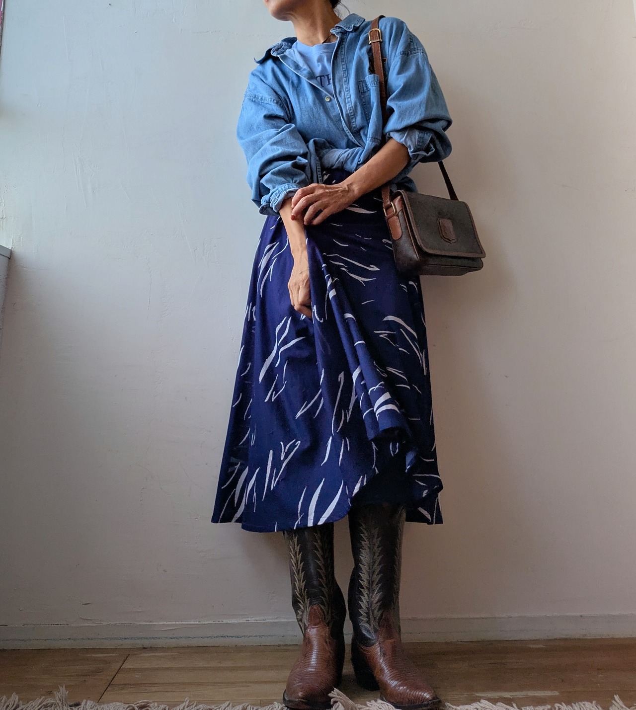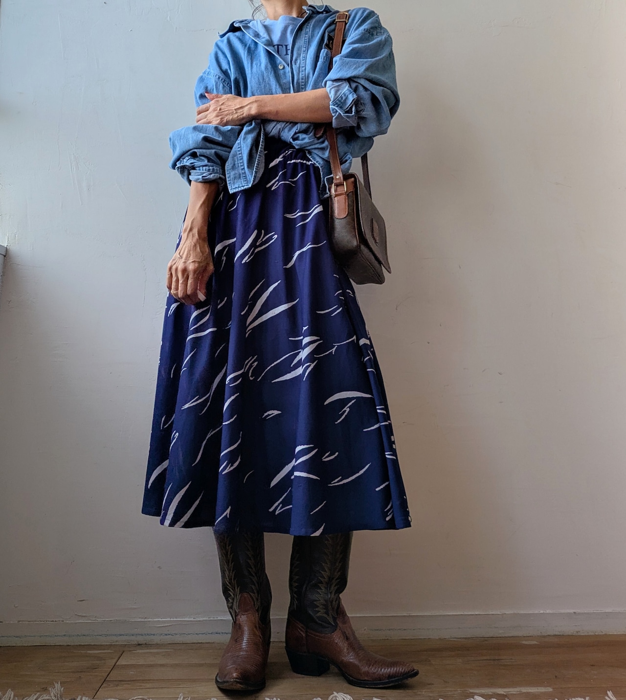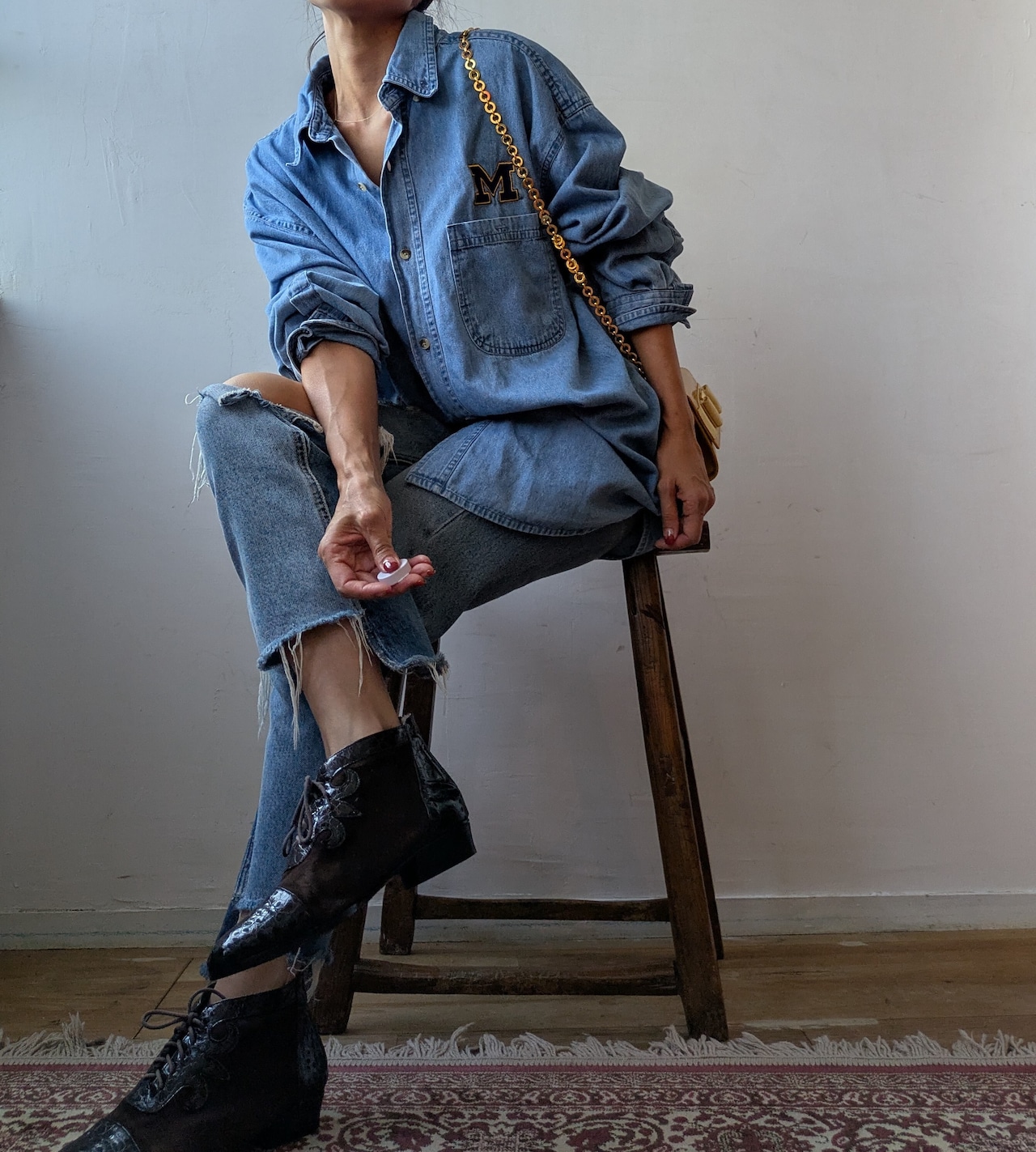 USA onepoint embroidery over size denim shirt