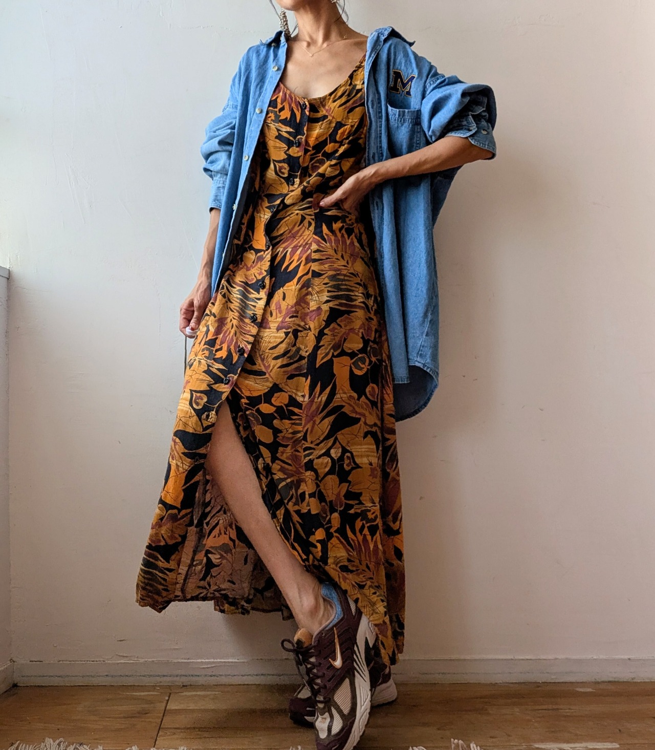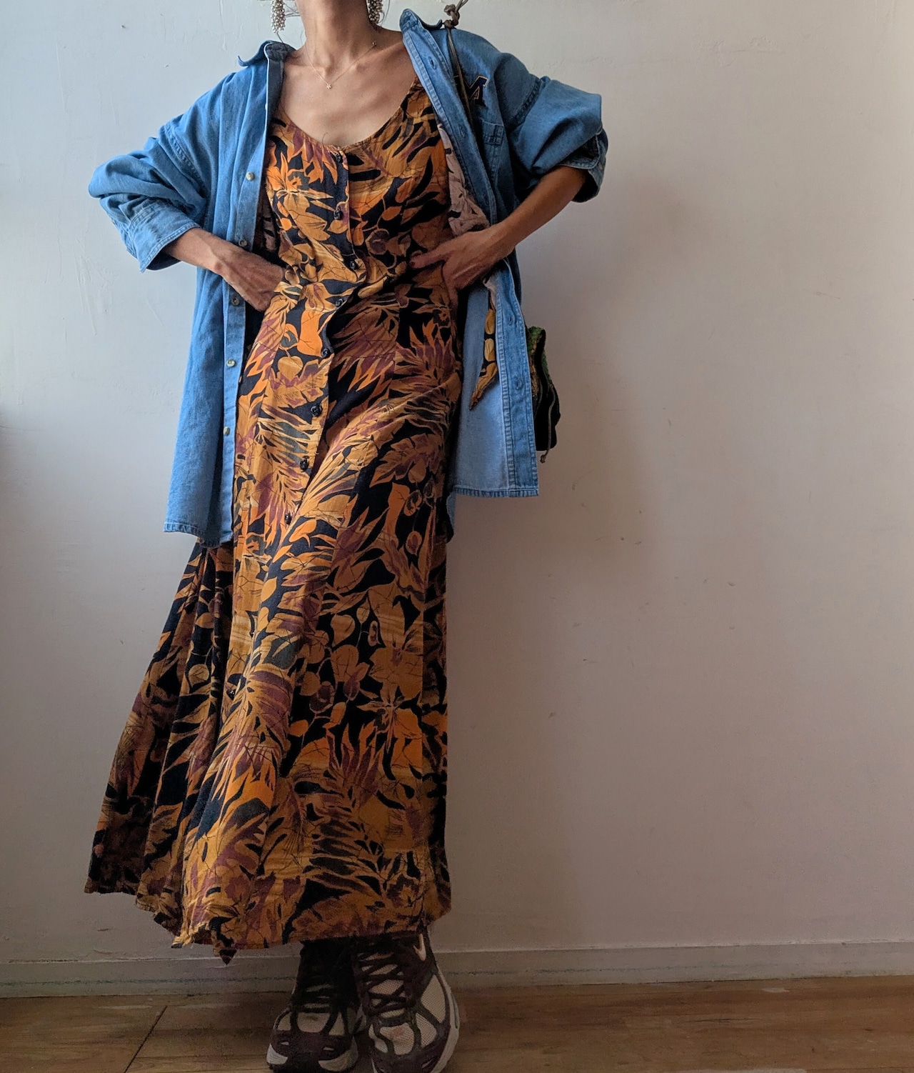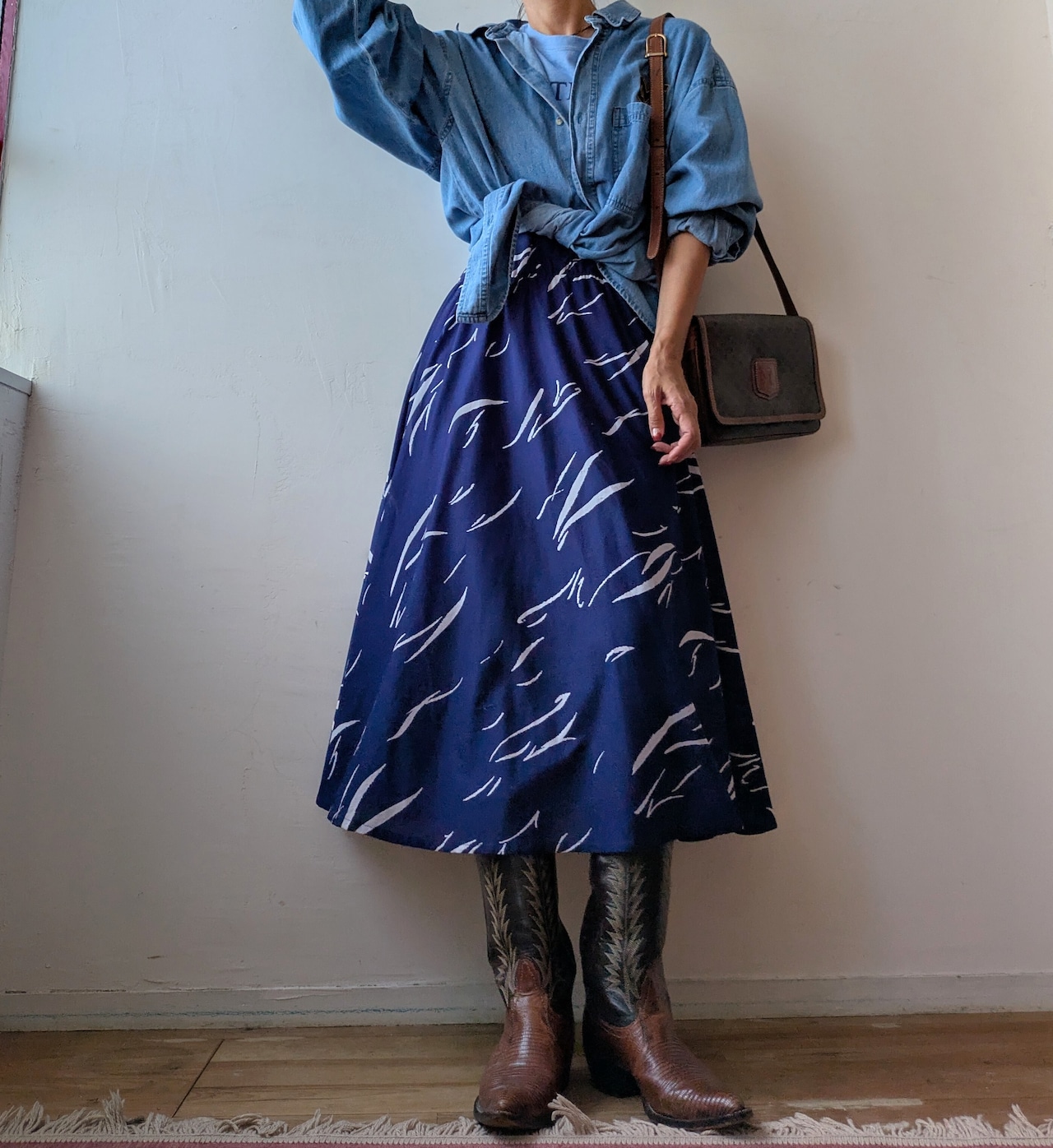 USA onepoint embroidery over size denim shirt