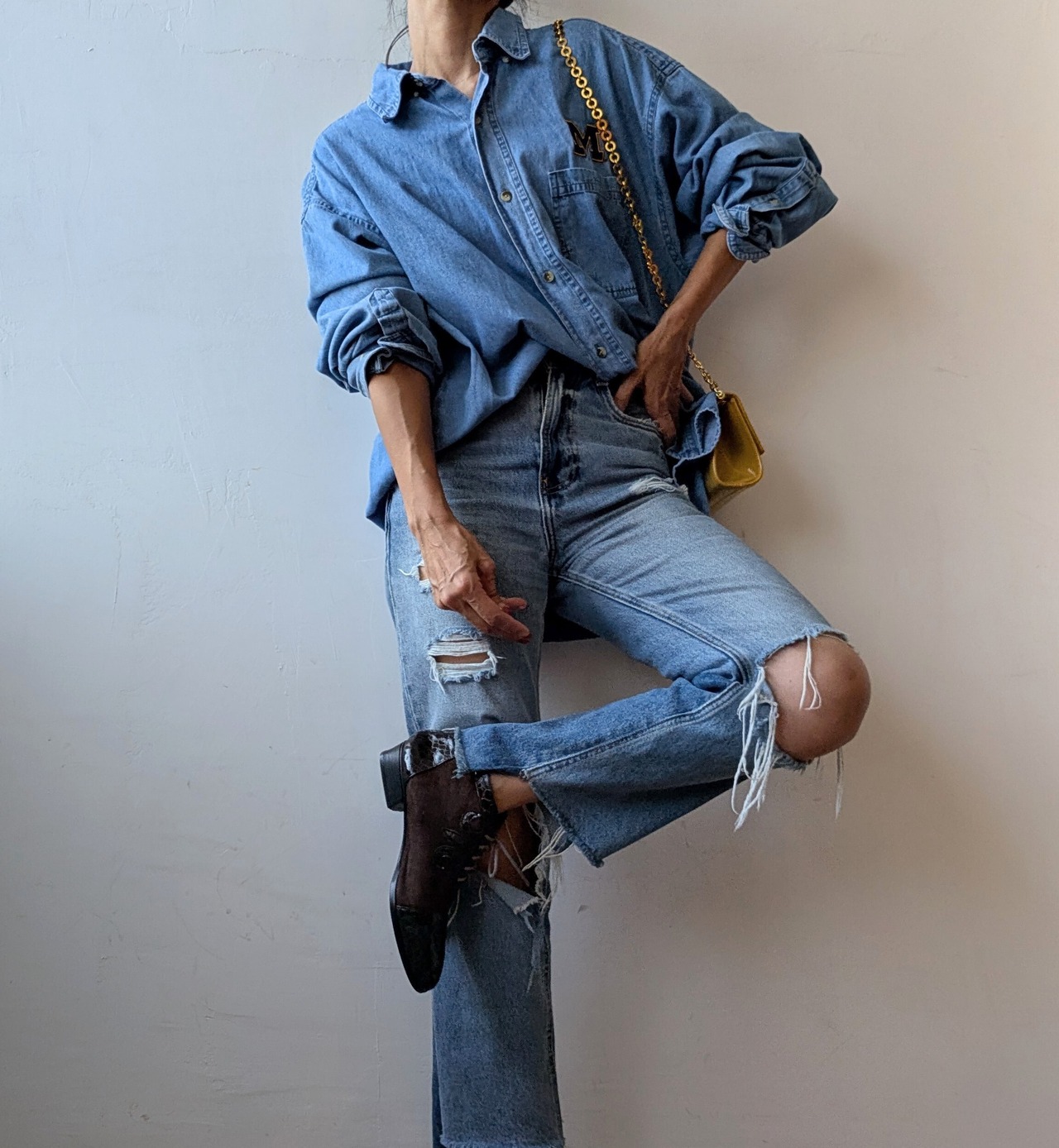 定番アイテムとしてワードローブに1枚は取り入れたいライトデニムシャツ。