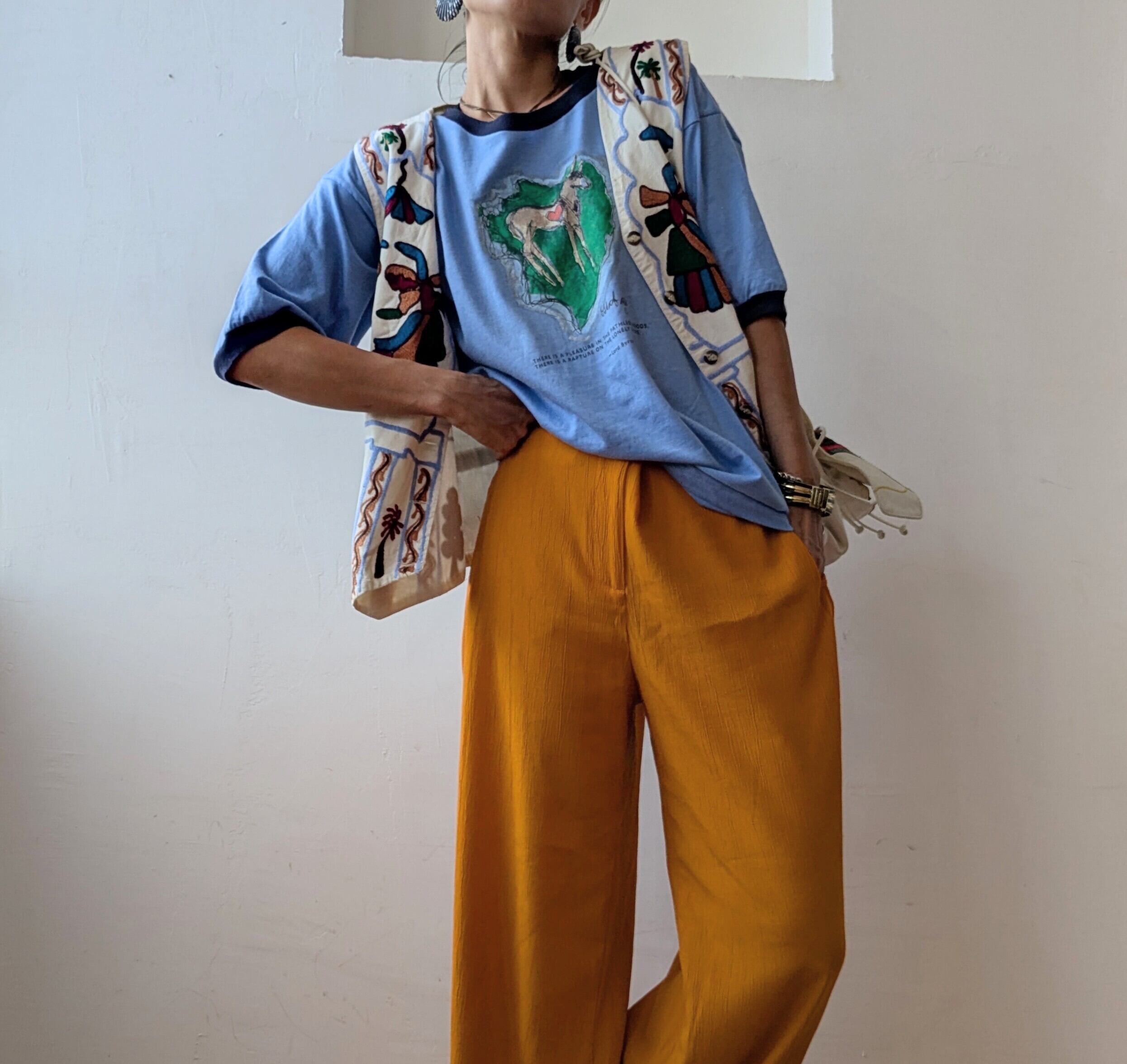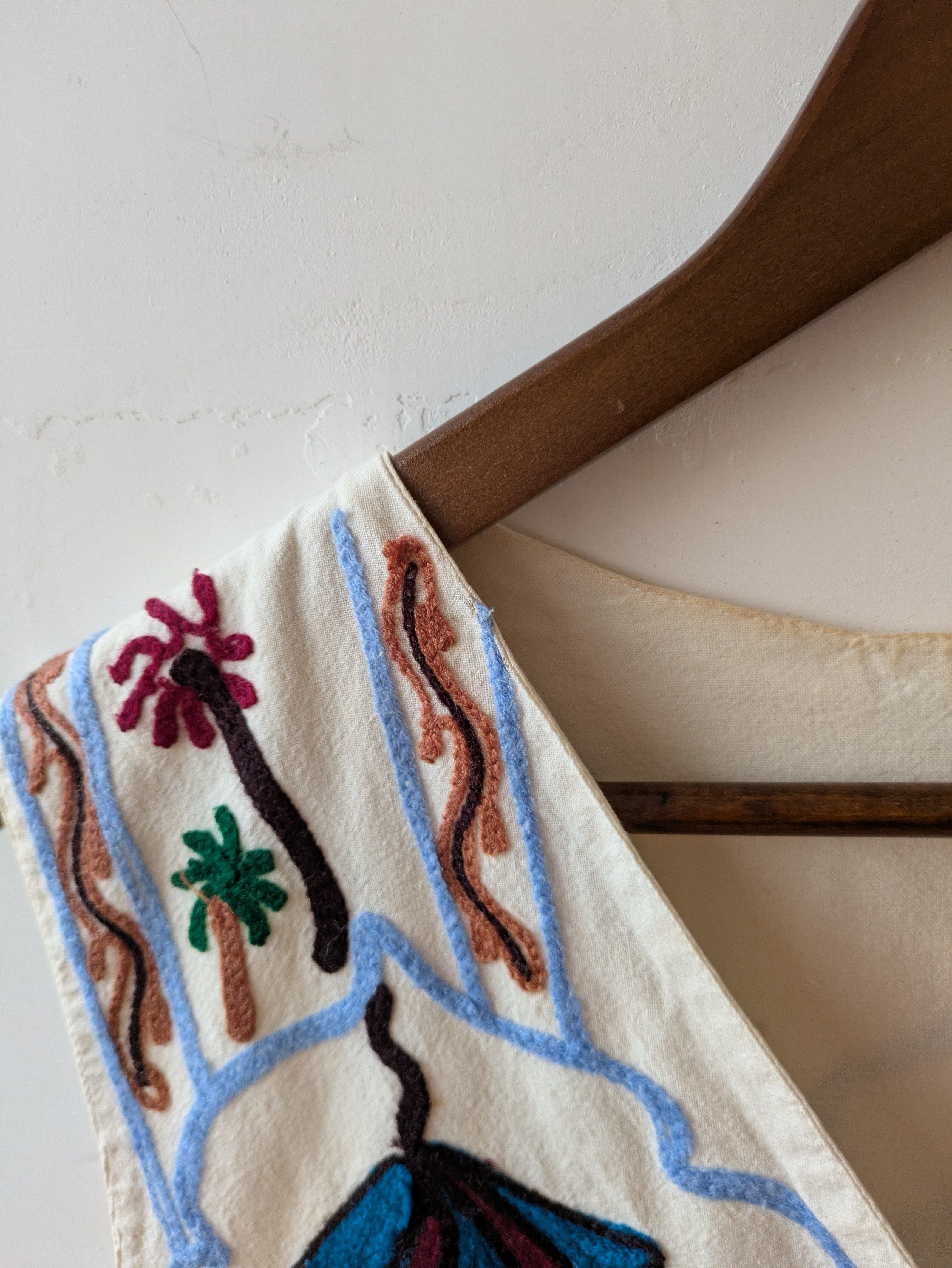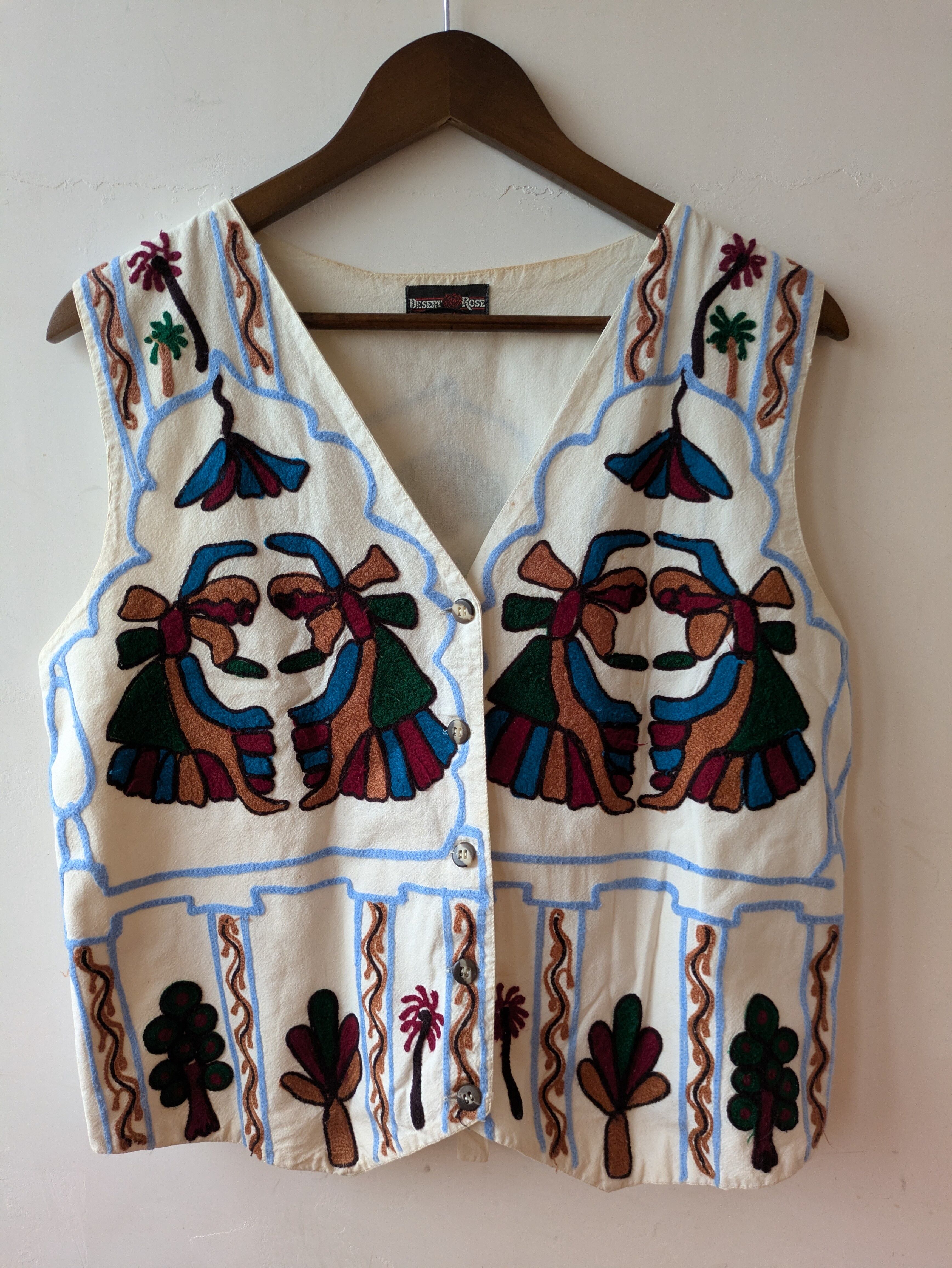 コットン素材のベストにカラフルな刺繍が映える個性的な1着