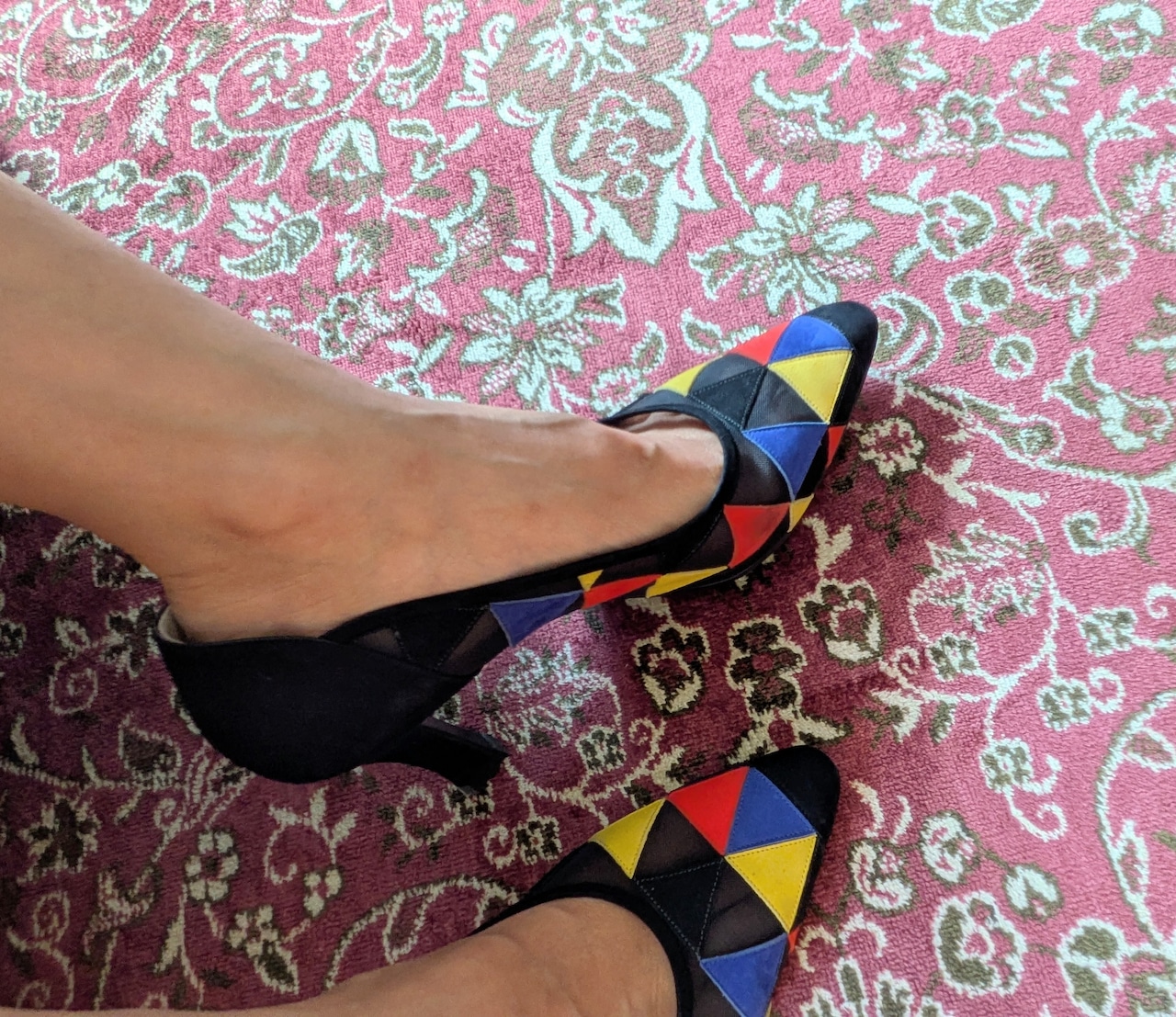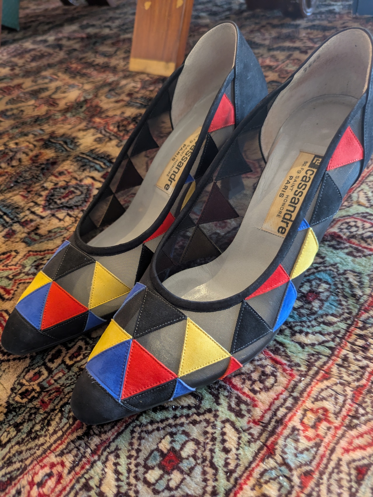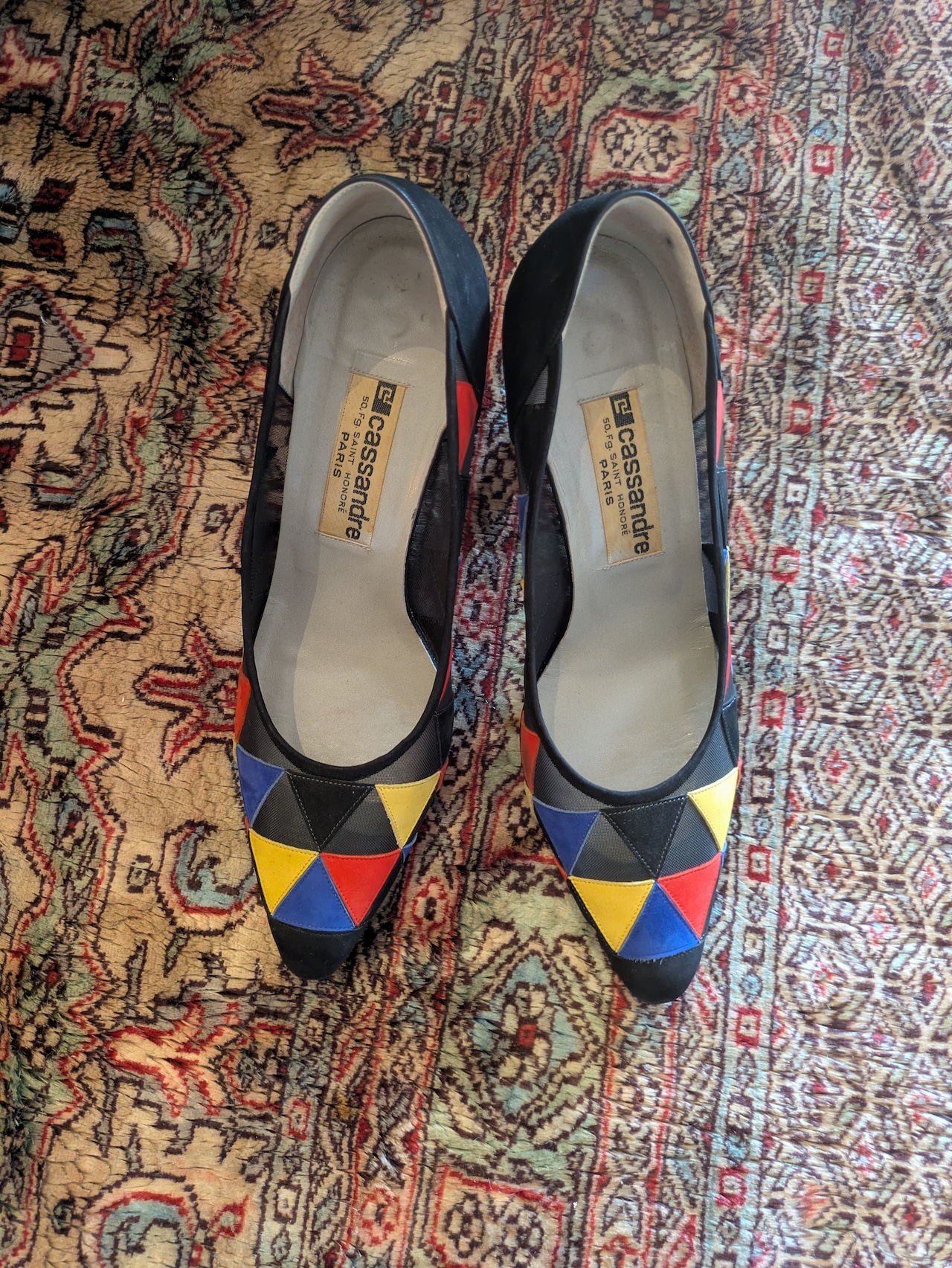 カラフルで個性的なデザインが魅力のイタリア製パンプスです。ぱっと目を引くカラフルな色合いと、メッシュ&レザーの組み合わせが新鮮!