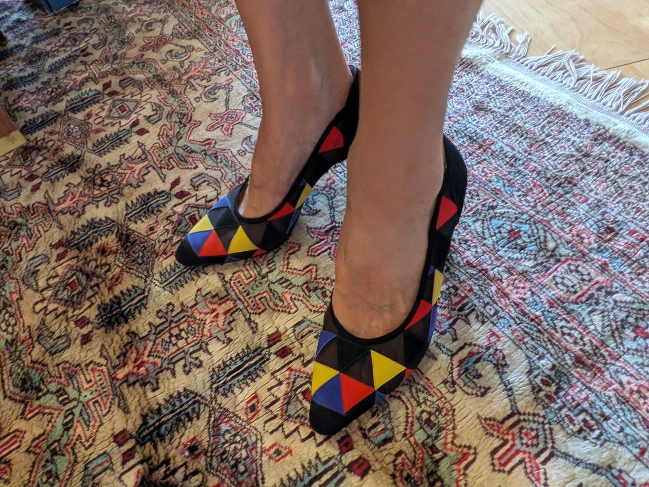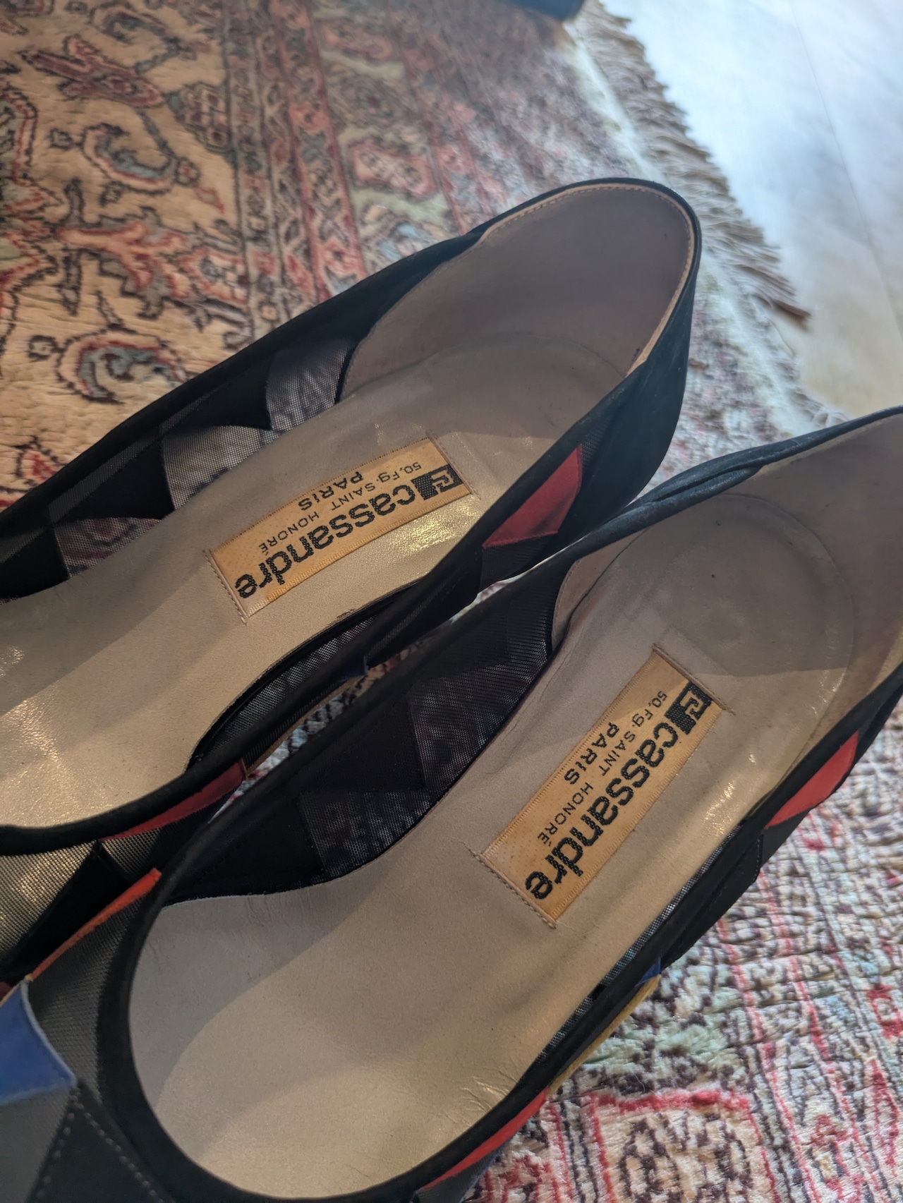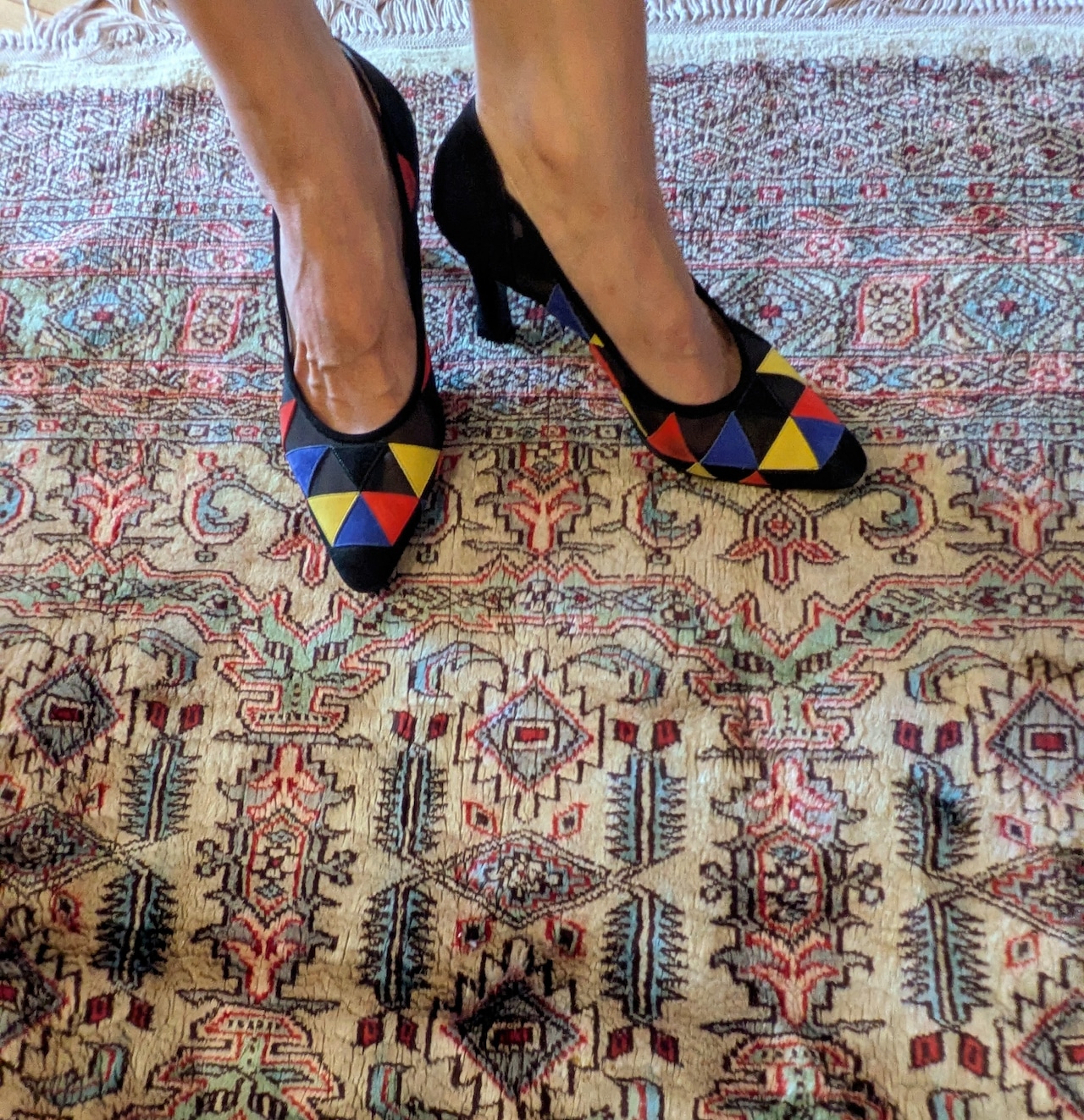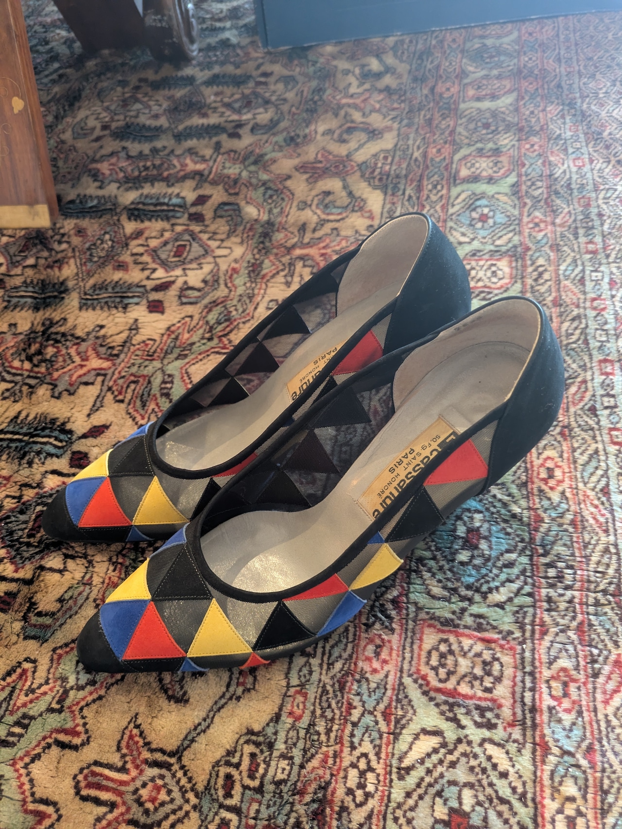 Itary vintage leather&mesh colorful pumps