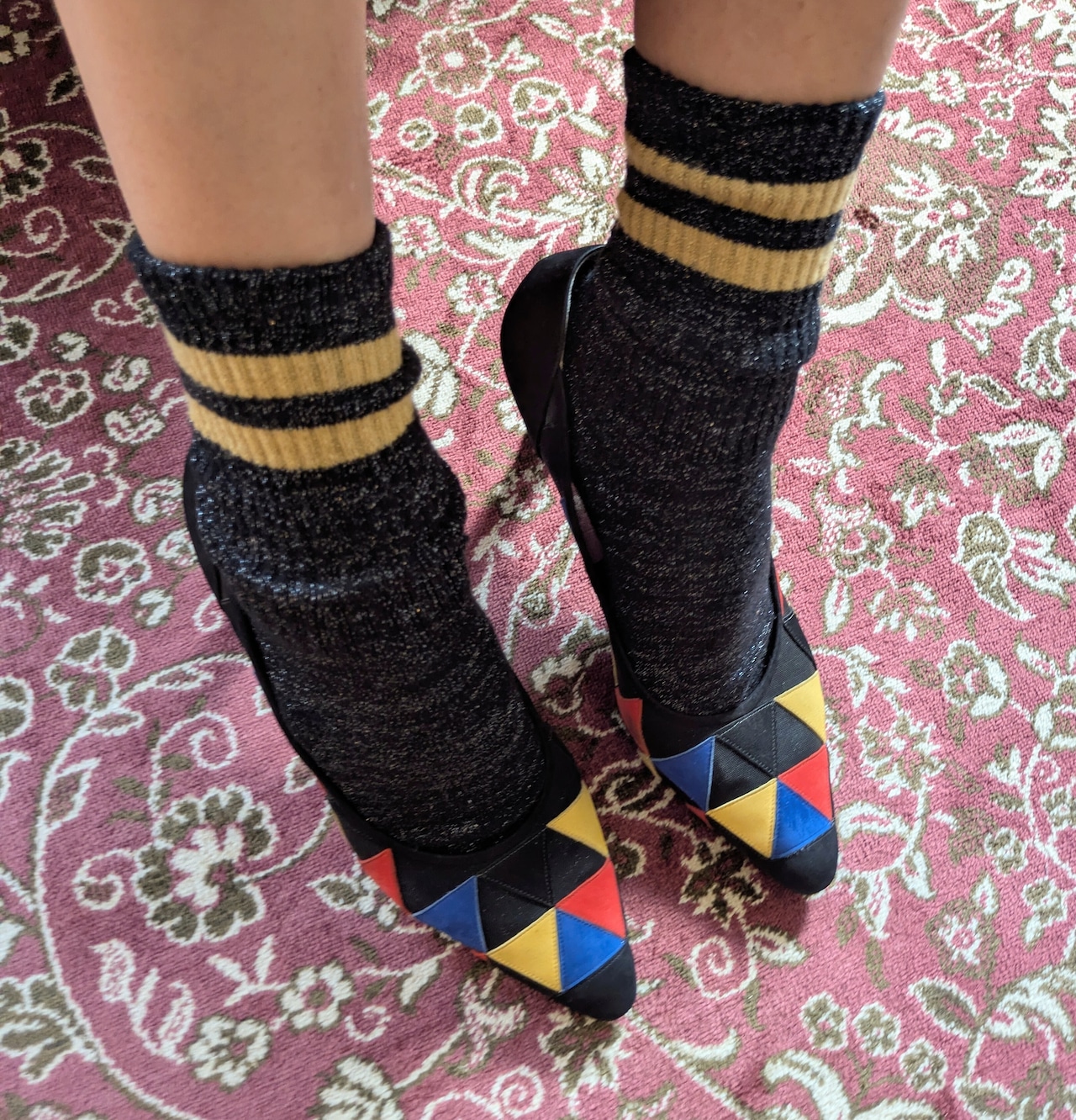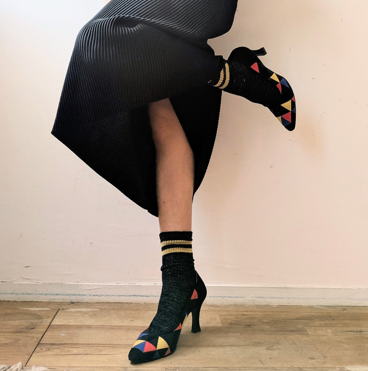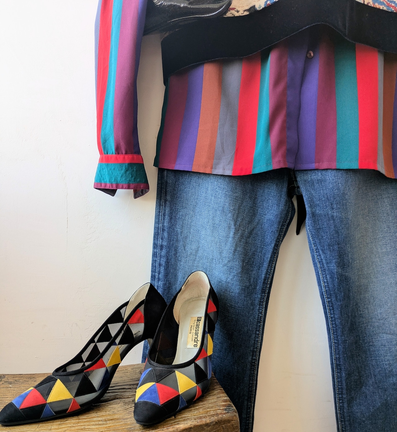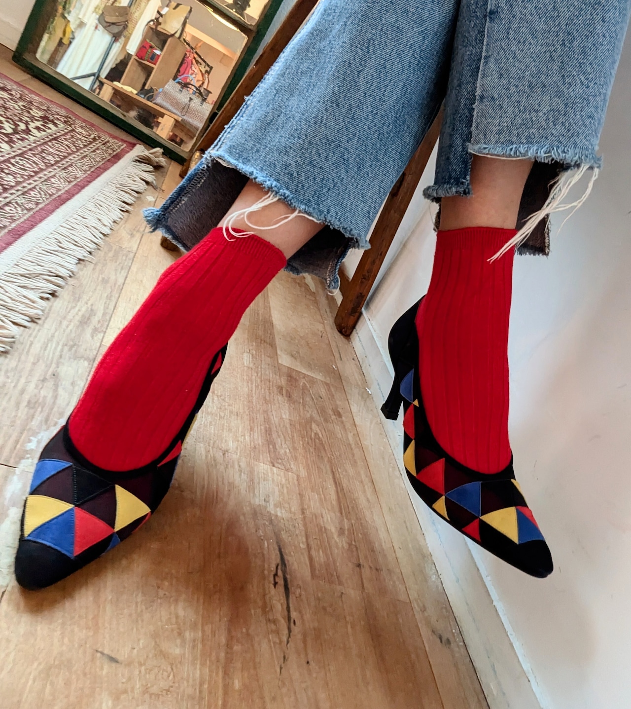 Itary vintage leather&mesh colorful pumps