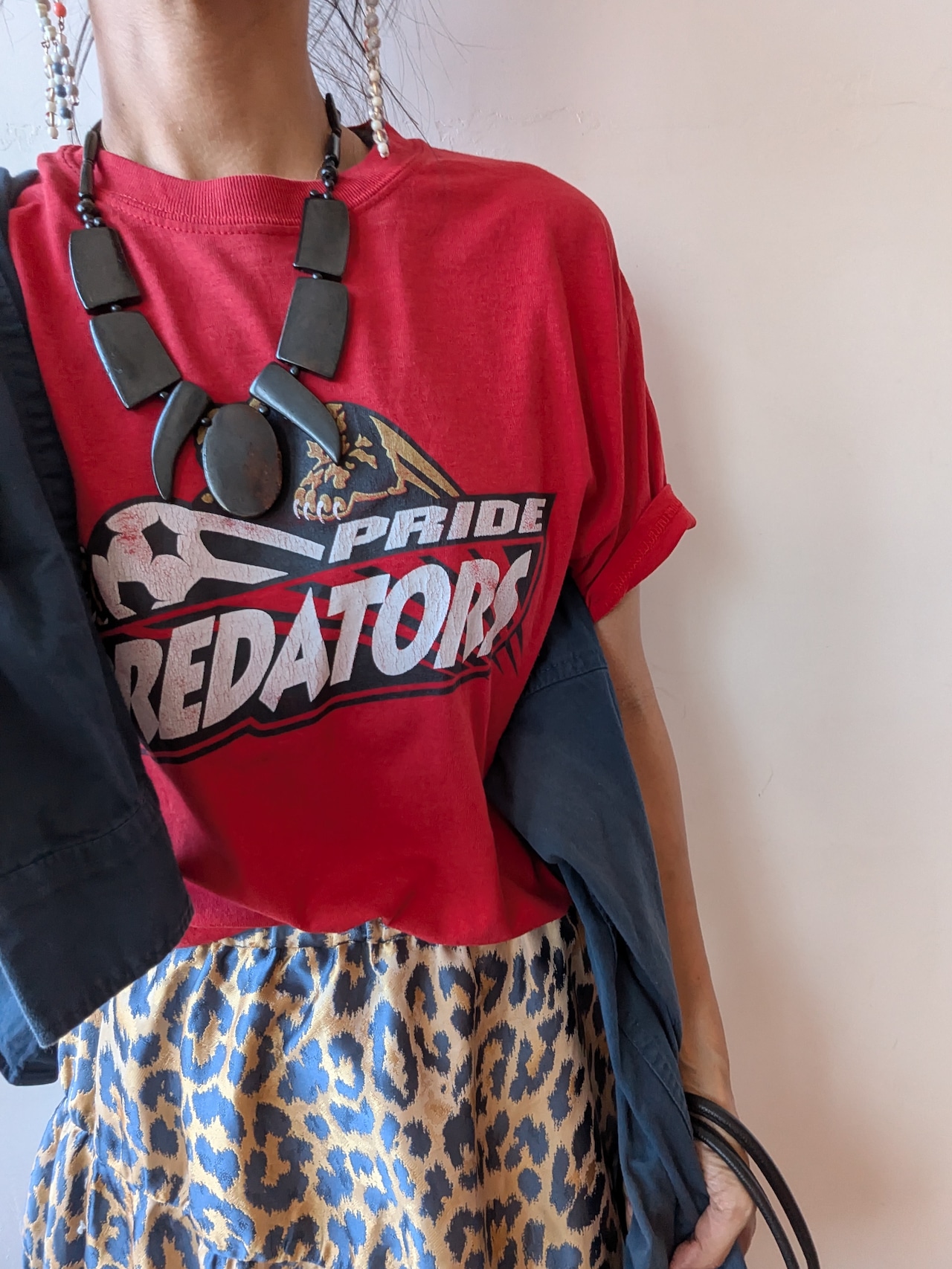 USAロゴTシャツです。シンプルながらも存在感のあるデザインが特徴で、カジュアルなコーディネートにぴったりな一着です。