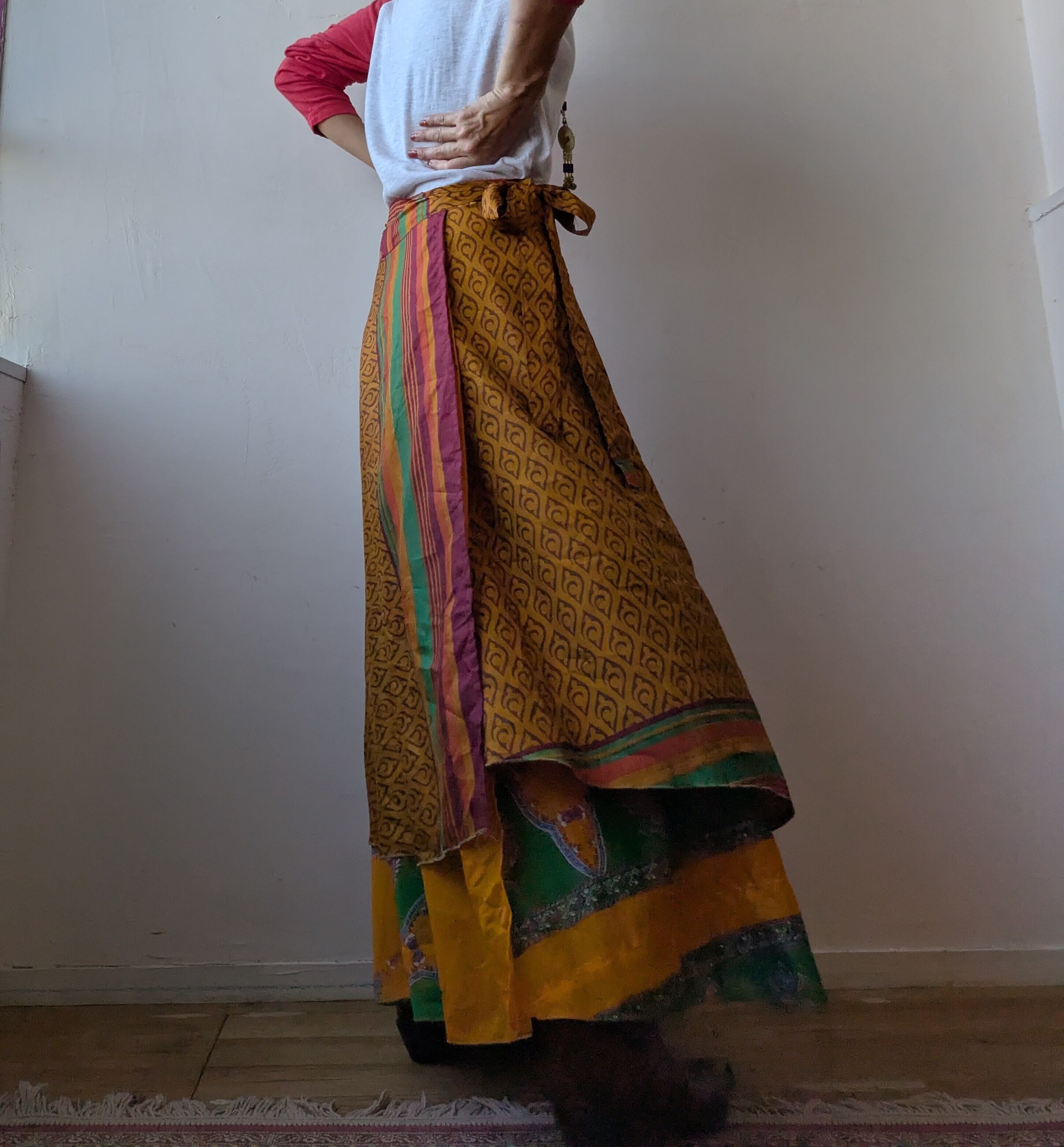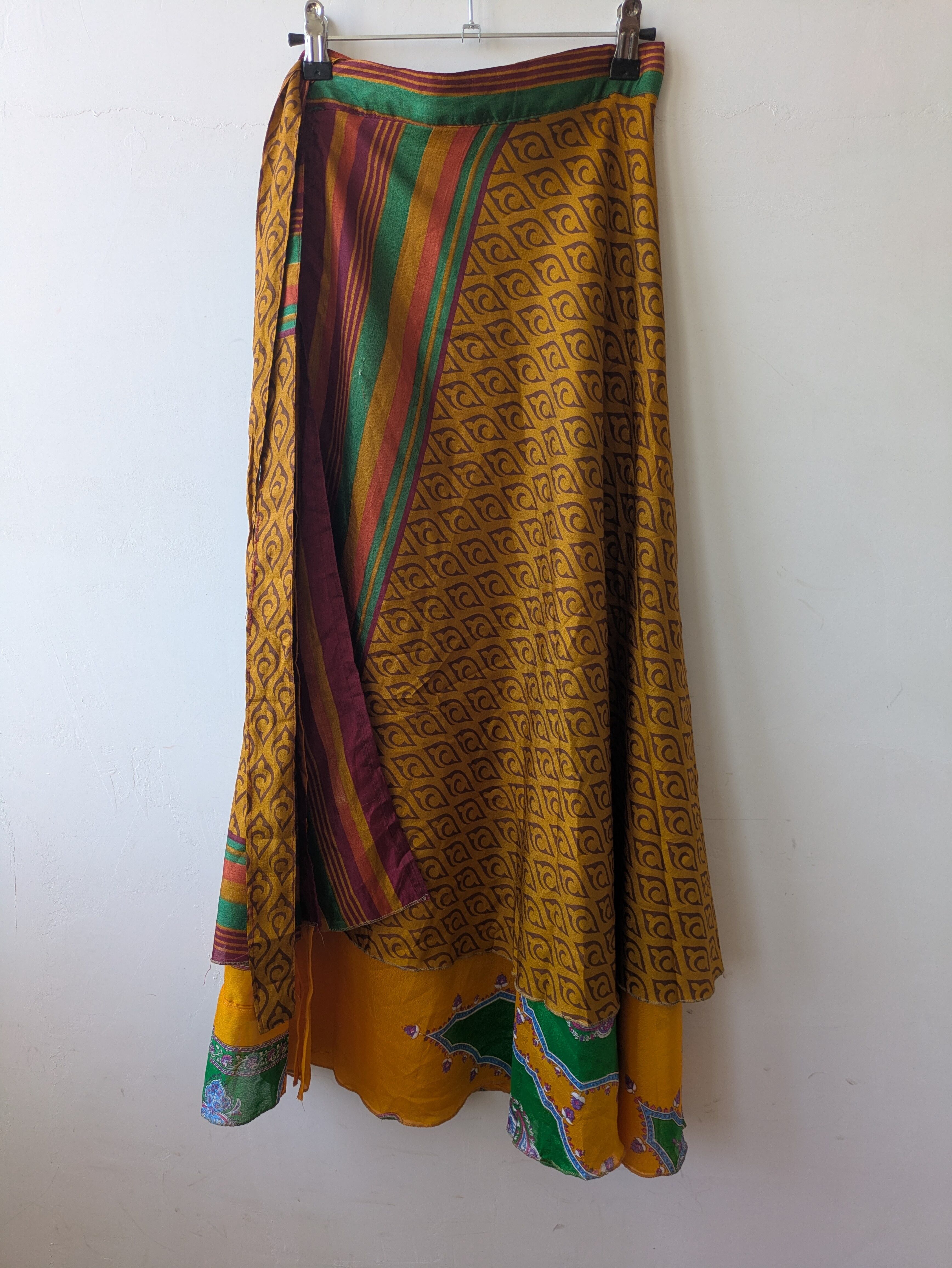 リバーシブルデザインのシルク100%ラップマキシスカートです。
