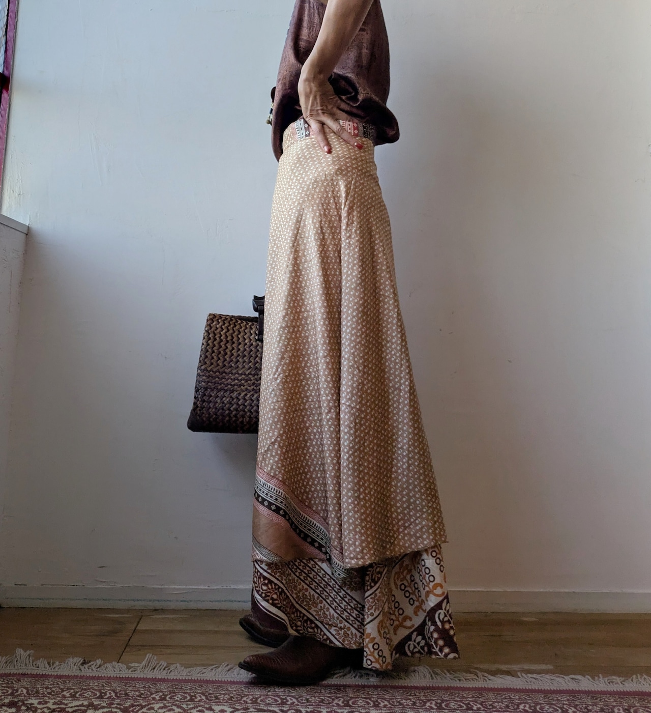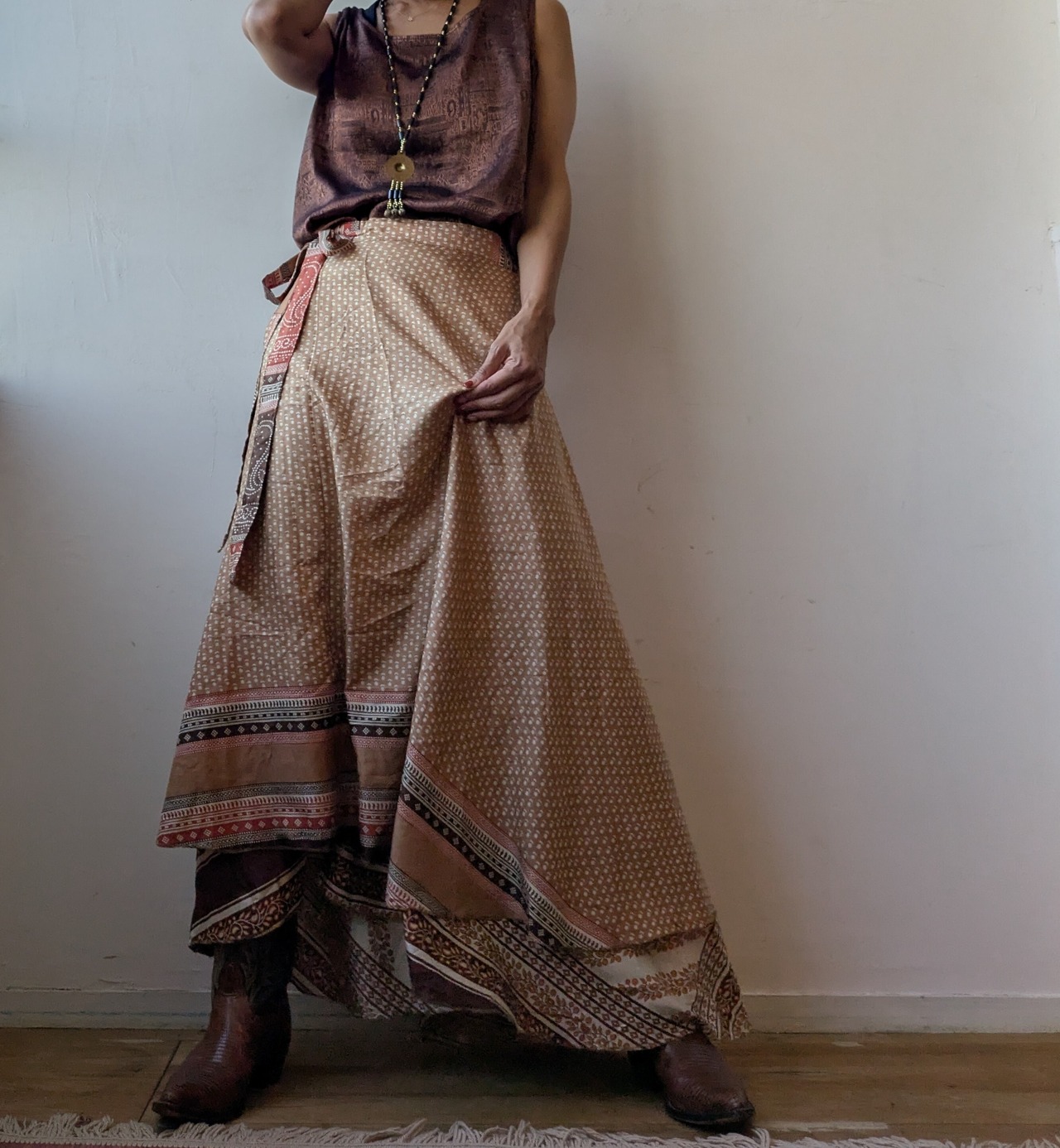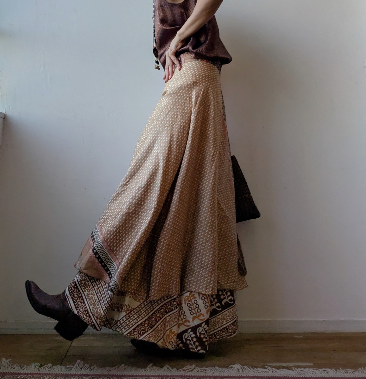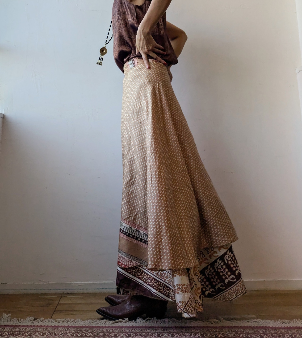 silk100 Reversible wrap maxi skirt (brown)