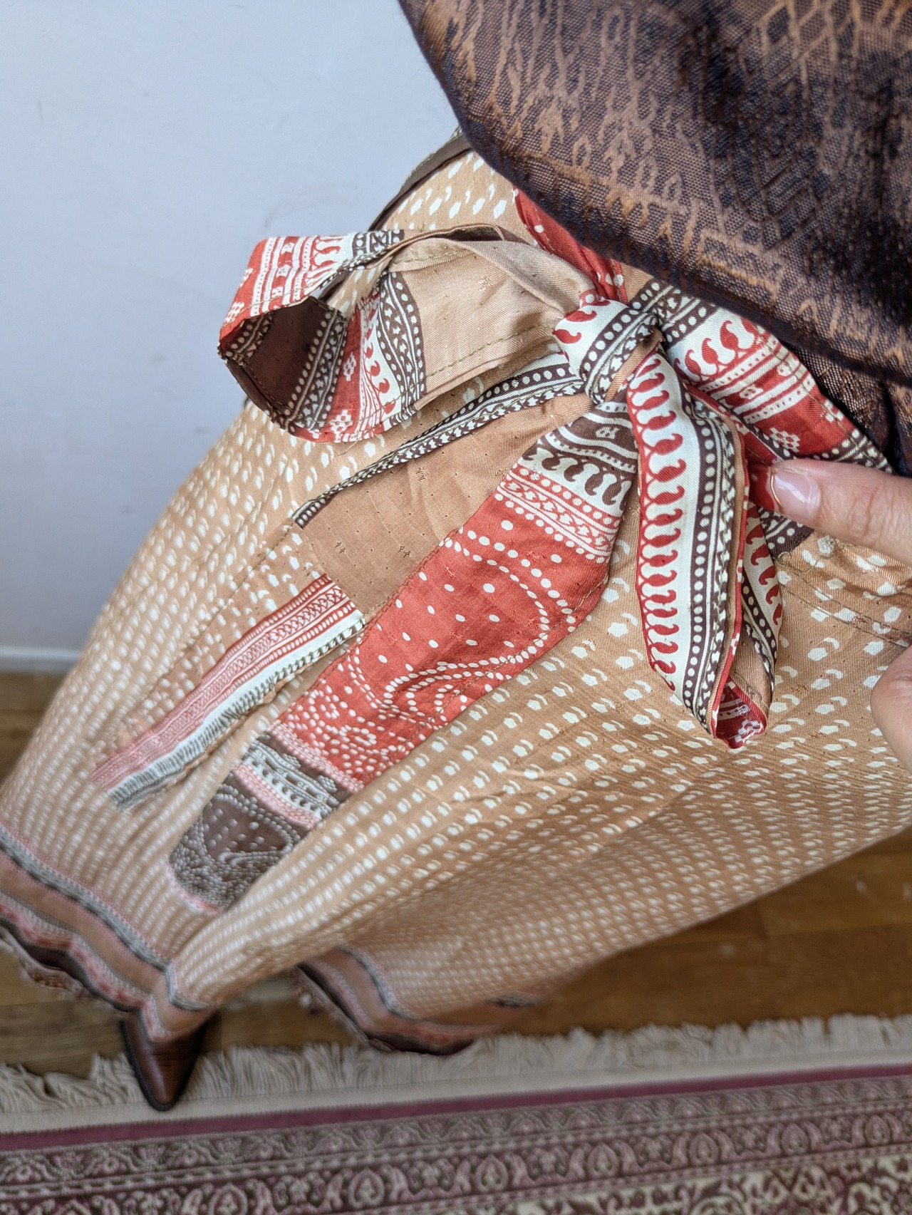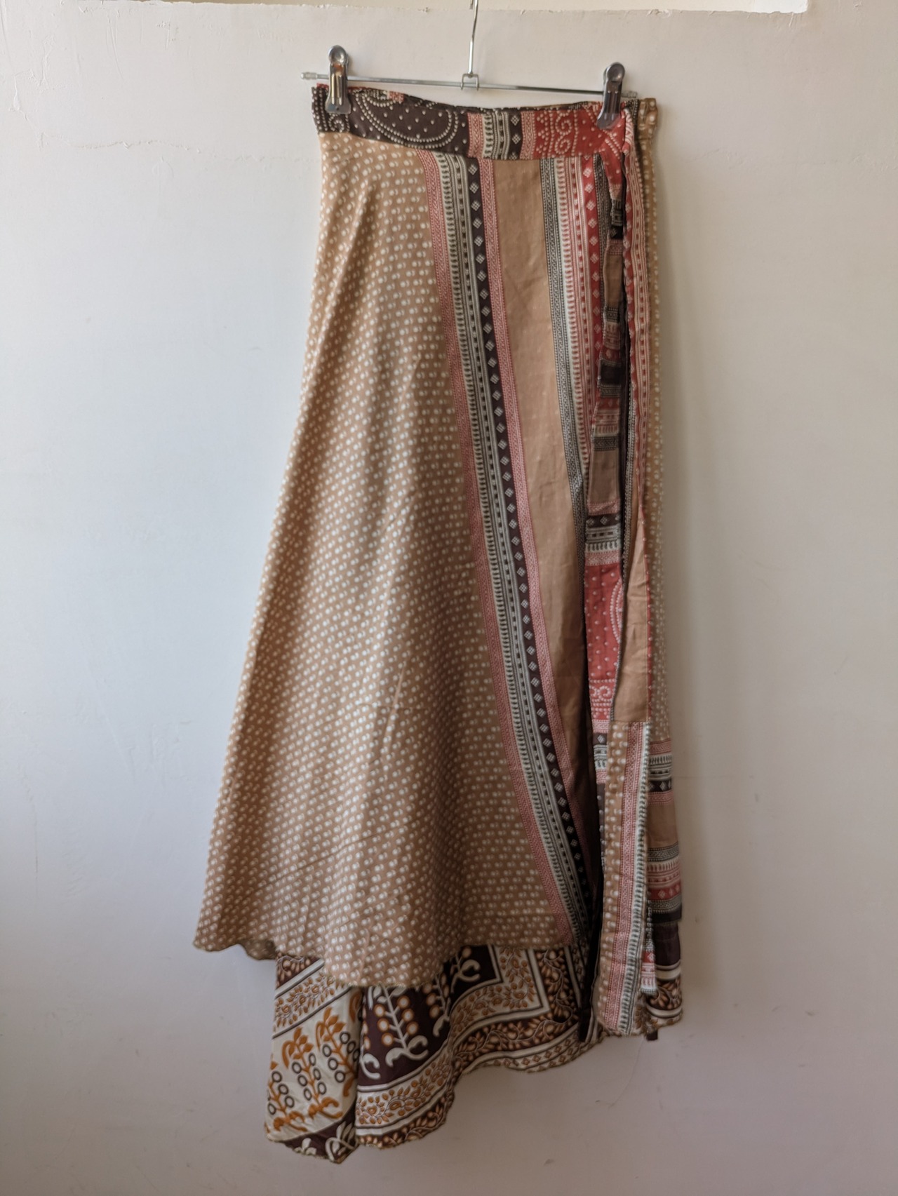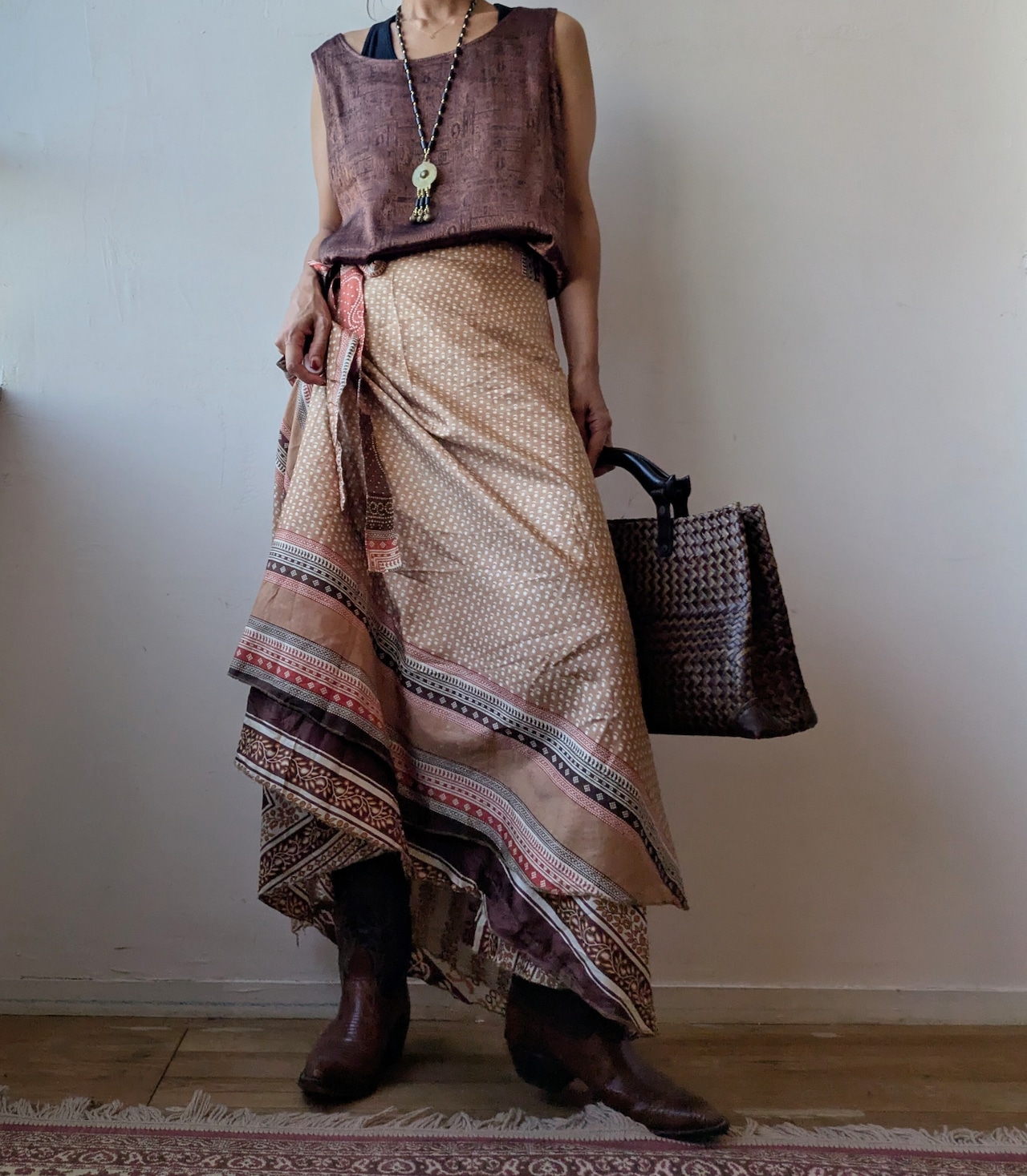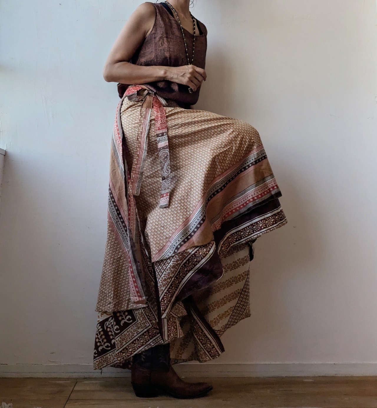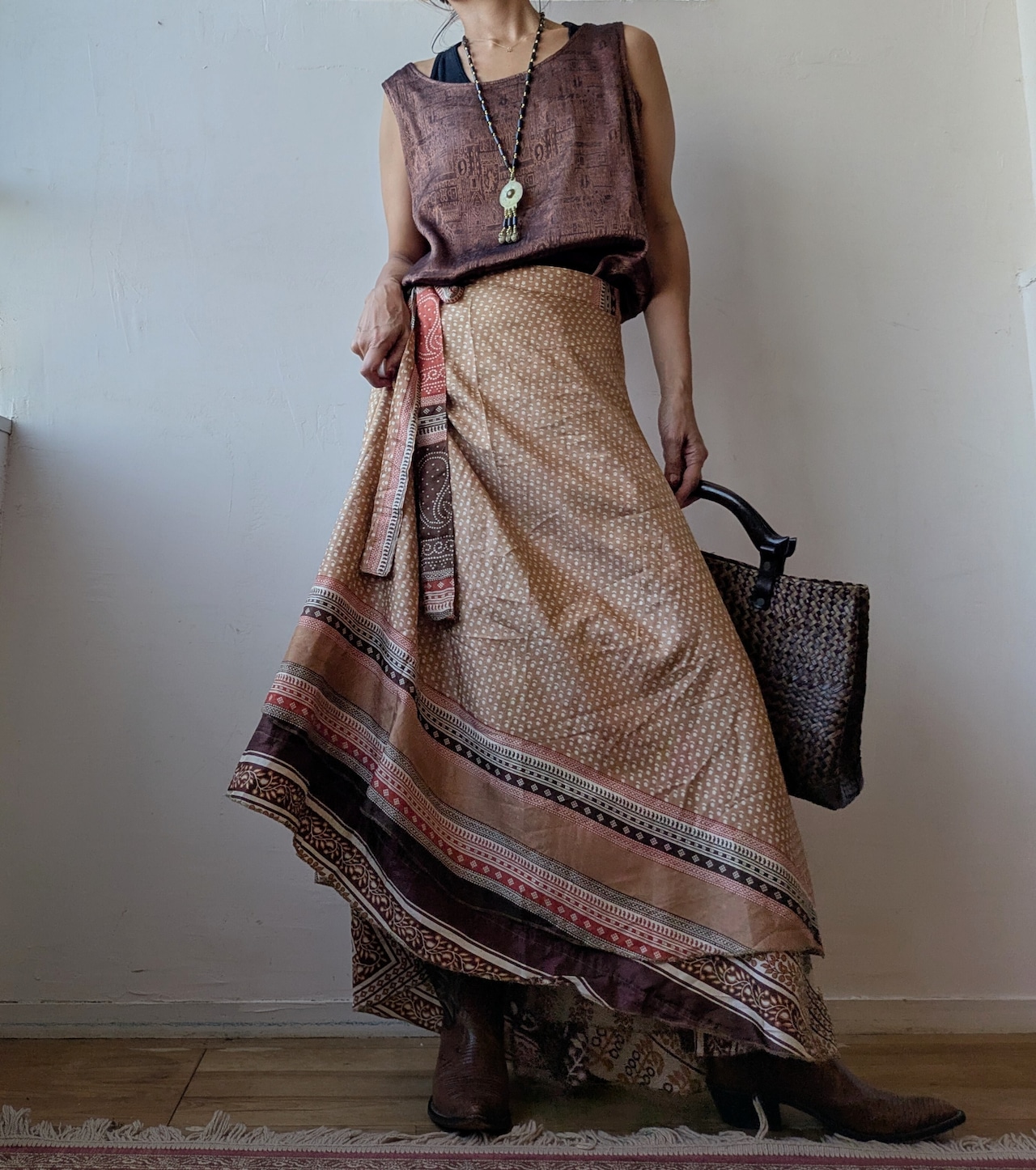 silk100 Reversible wrap maxi skirt (brown)
