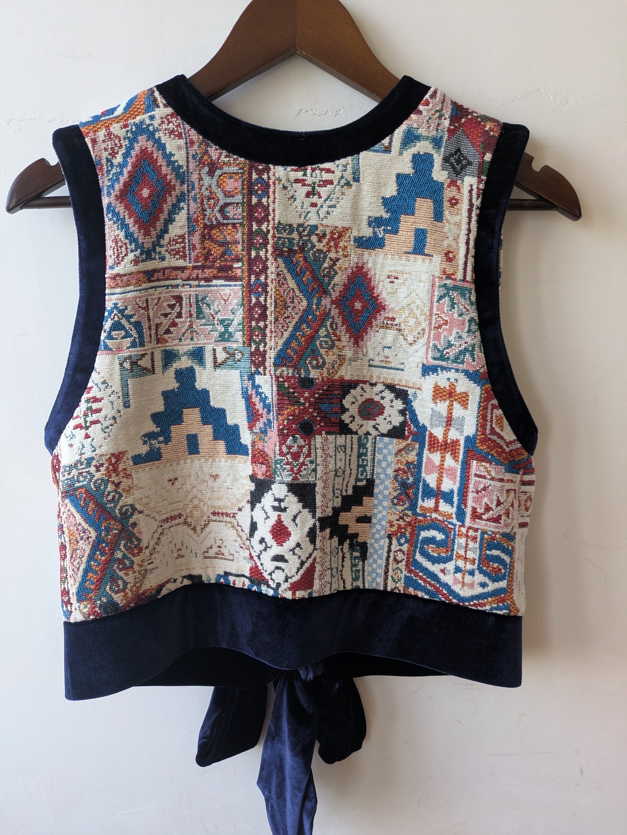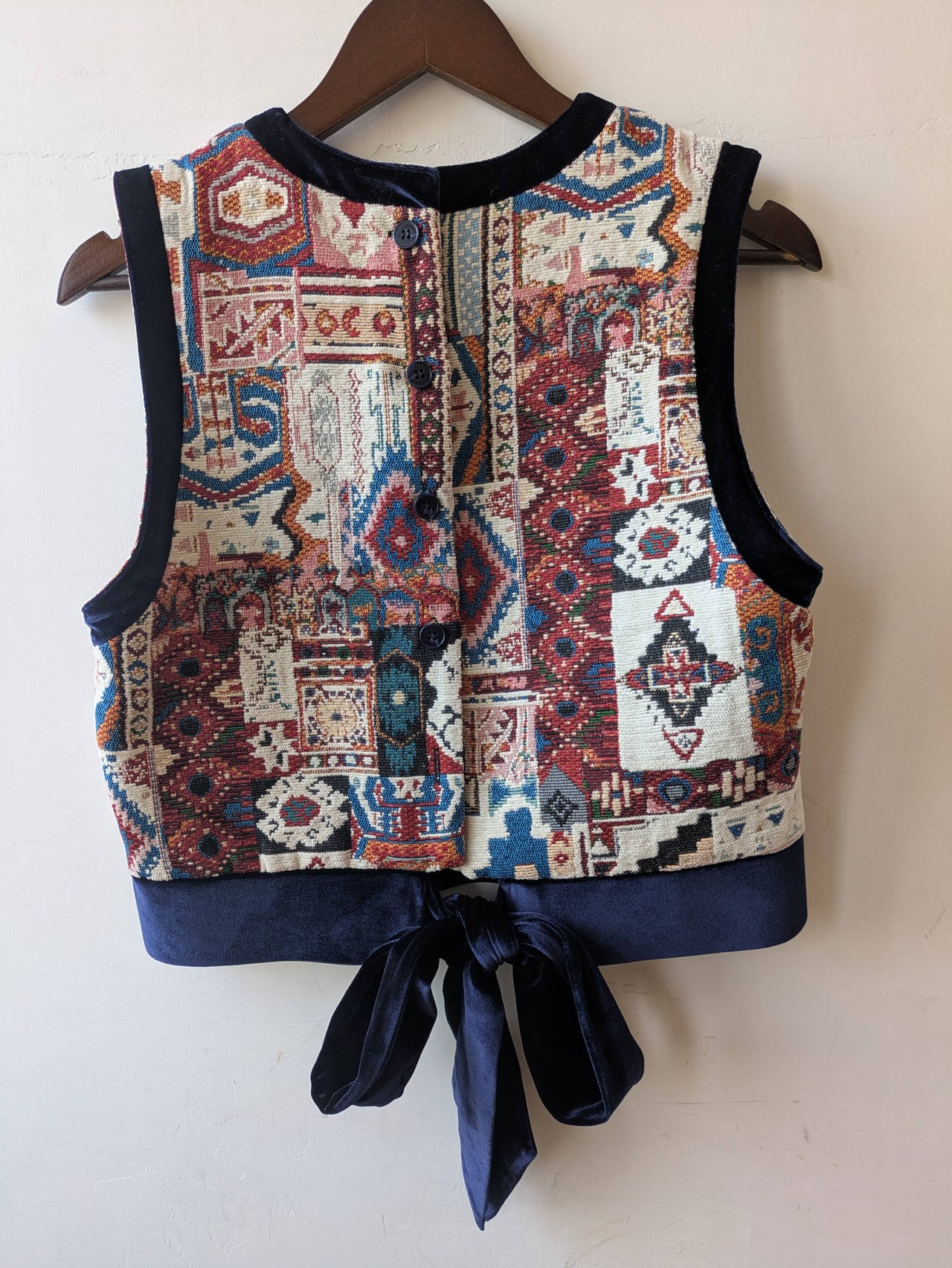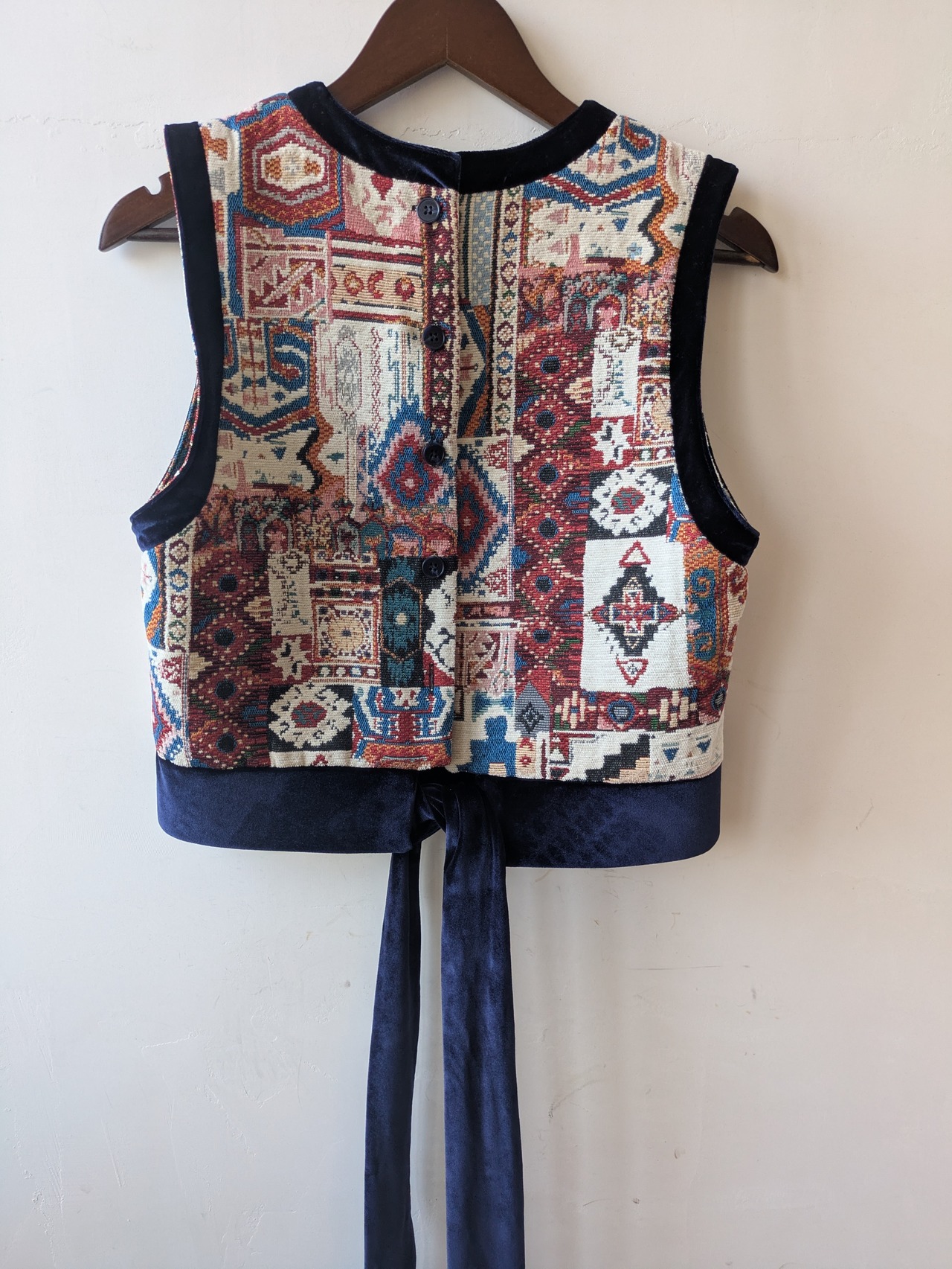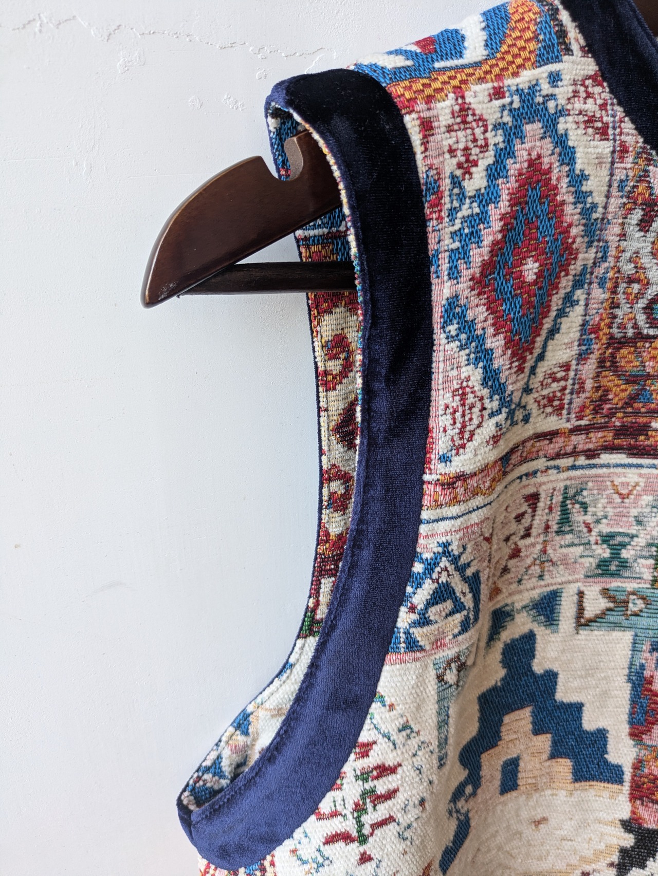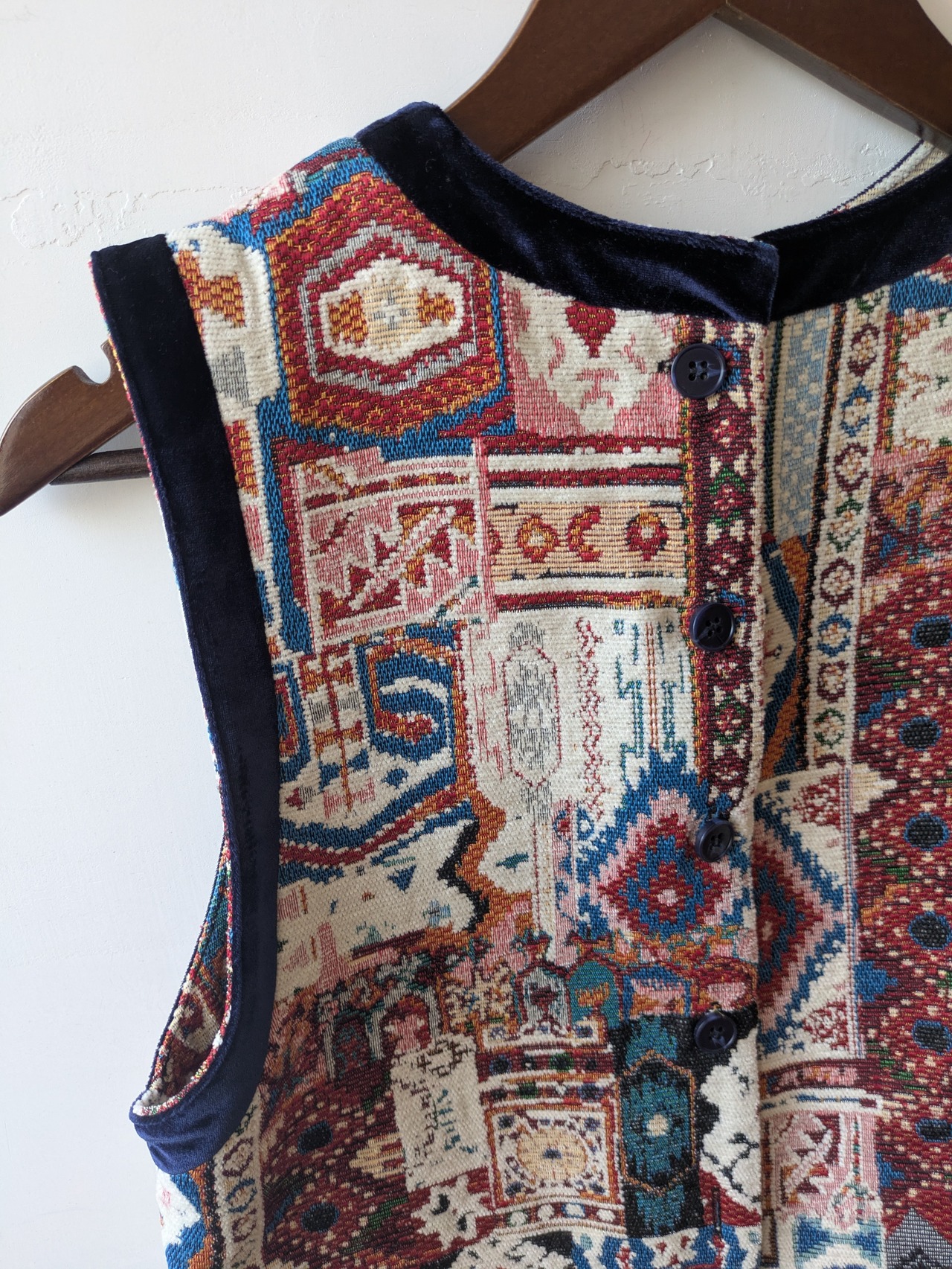 美しいゴブラン織りとウエストのベルベットリボンが魅力の秋冬にぴったりなベストです。