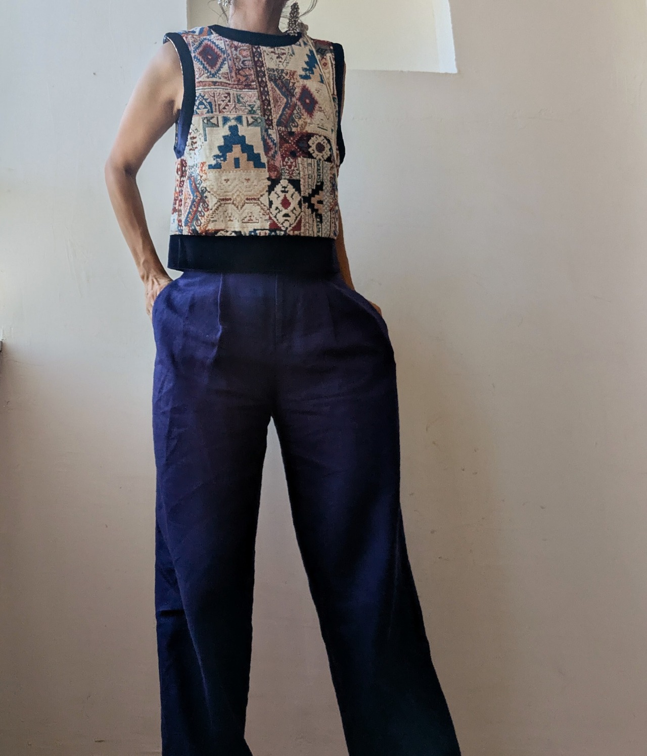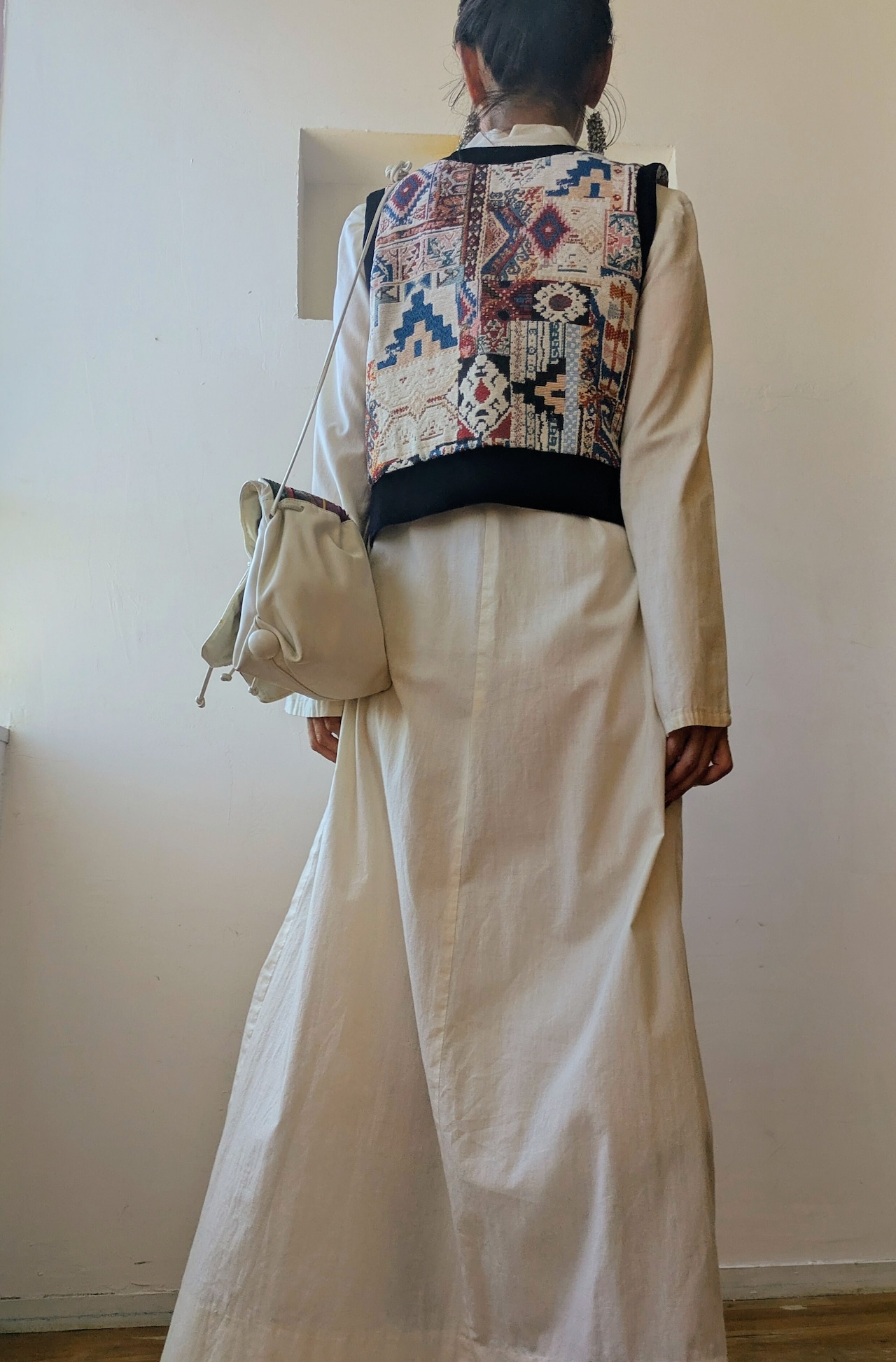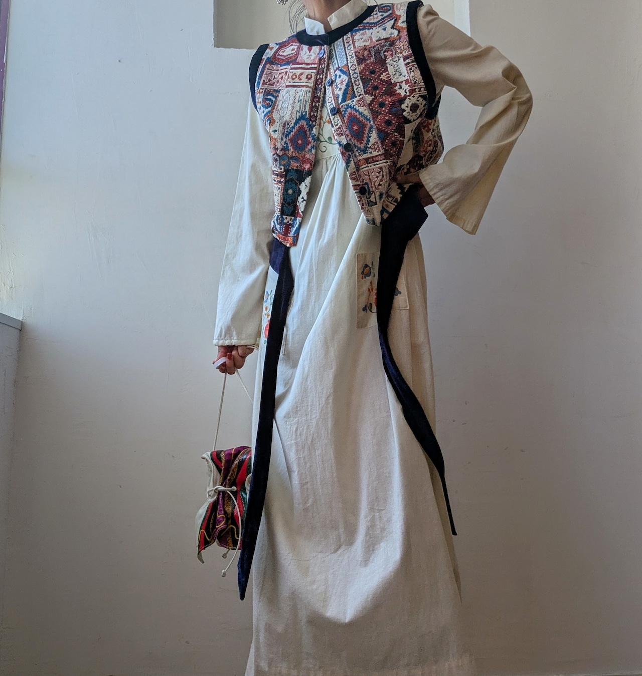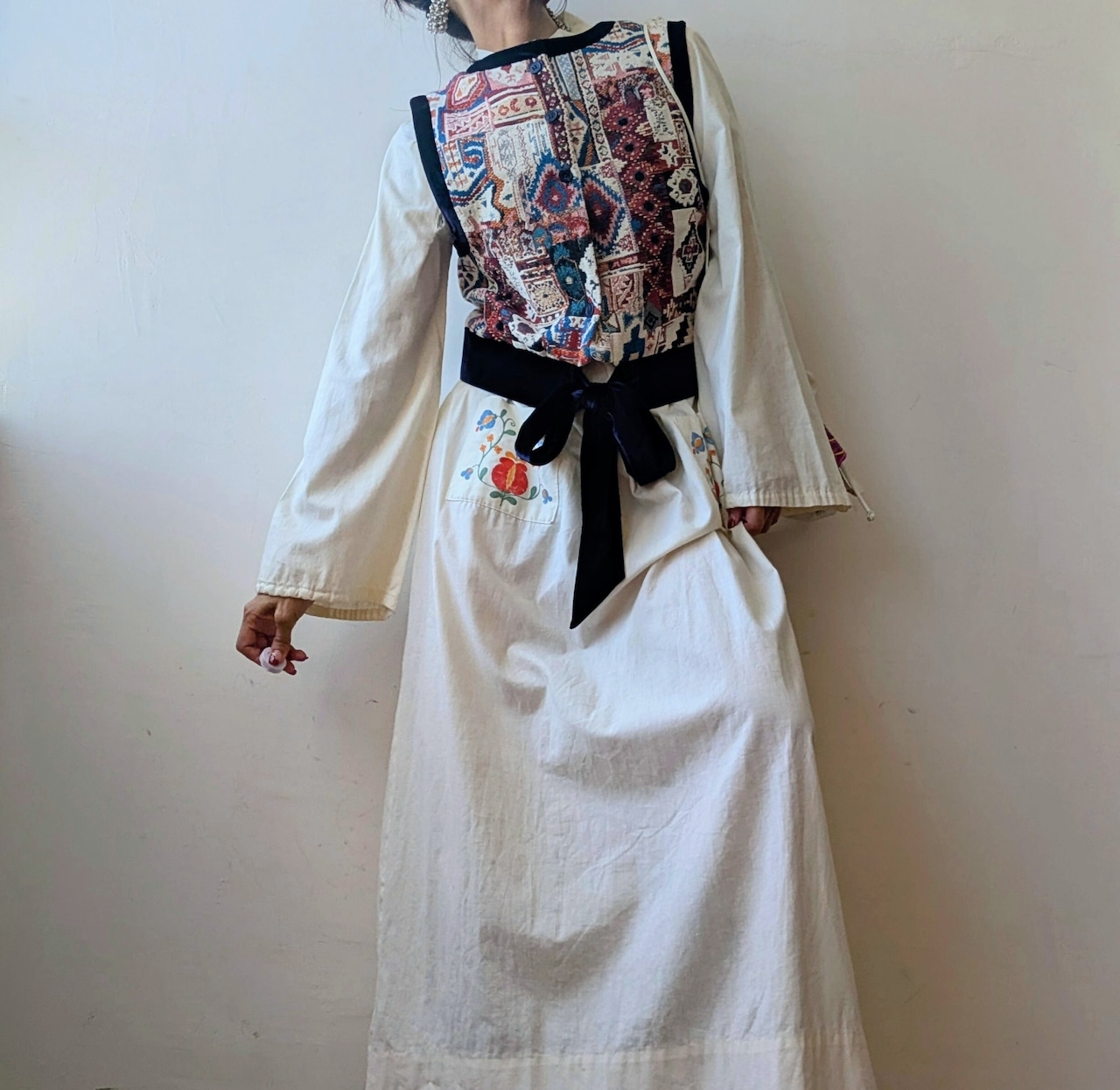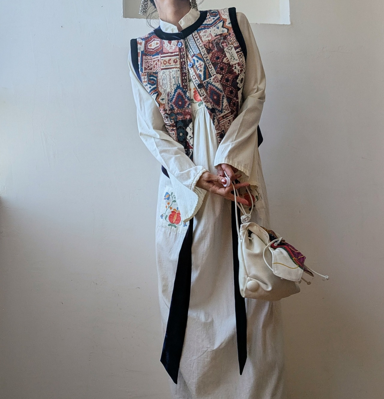 美しいゴブラン織りとウエストのベルベットリボンが魅力の秋冬にぴったりなベストです。