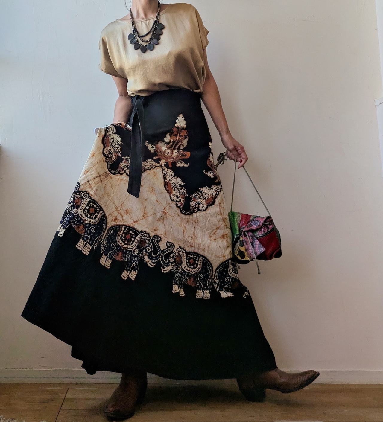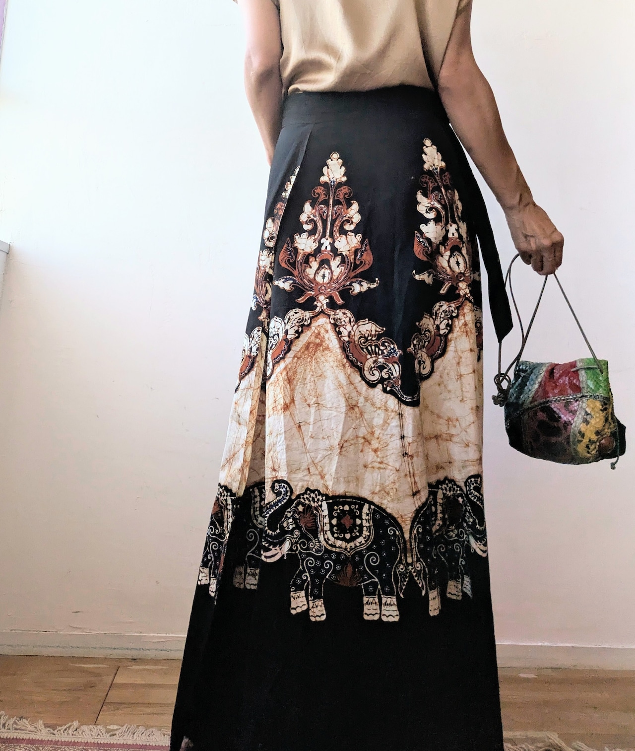 秋冬も活躍する、しっかりとしたコットンを使用したラップマキシスカートです。