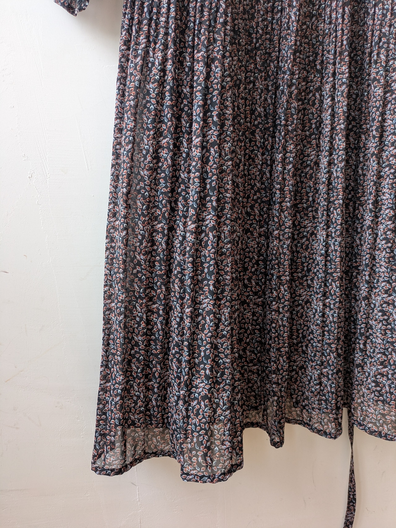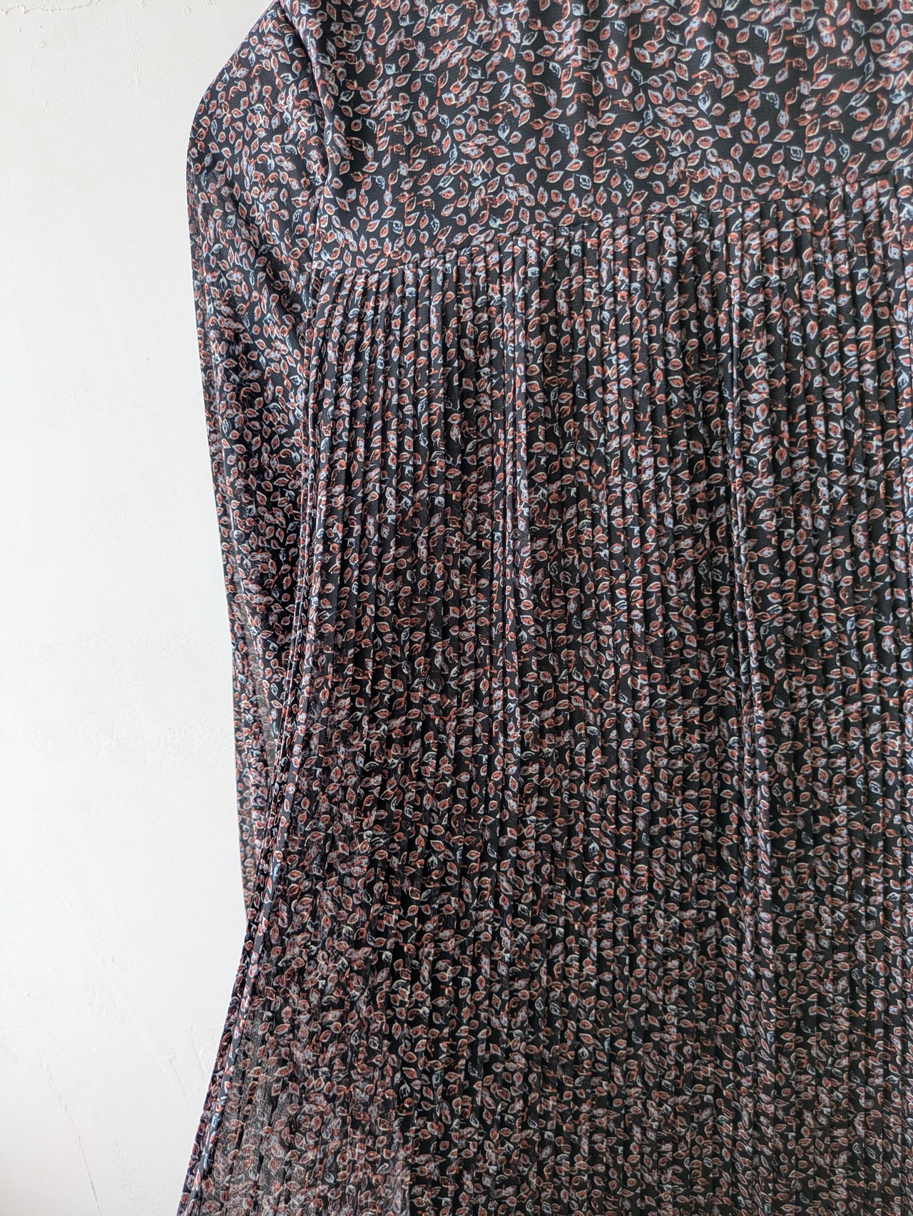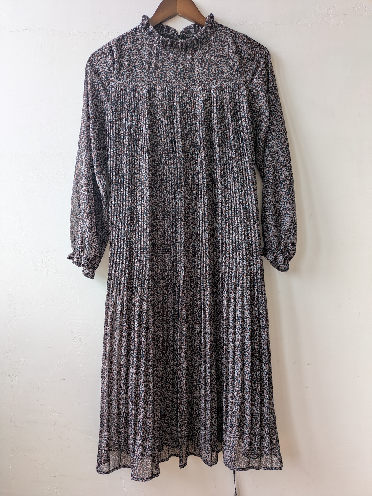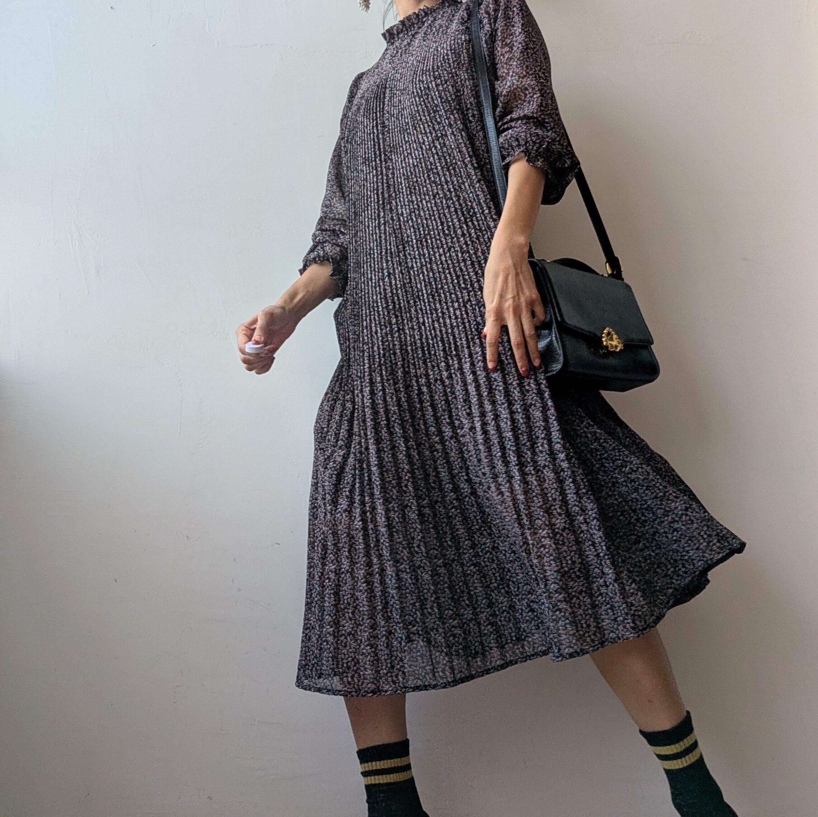 前身頃から裾にかけて、細かなプリーツデザインが優雅で上品な雰囲気。