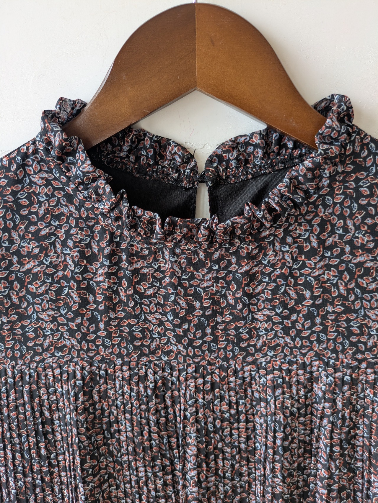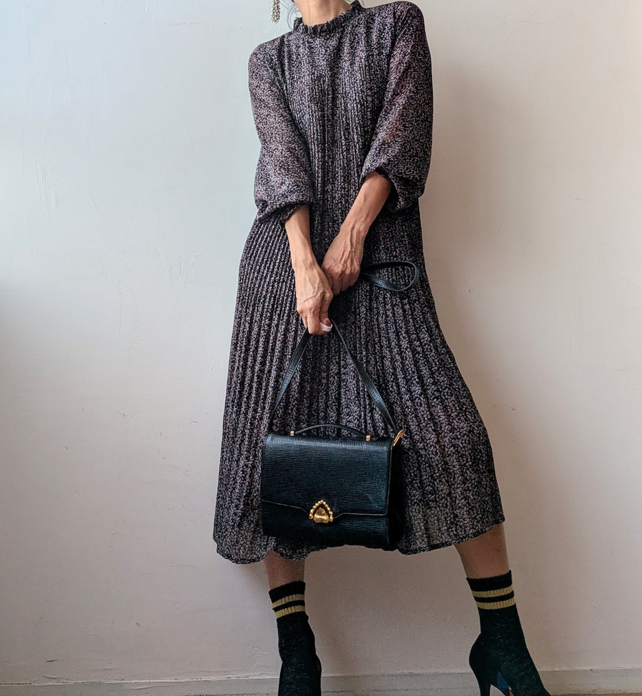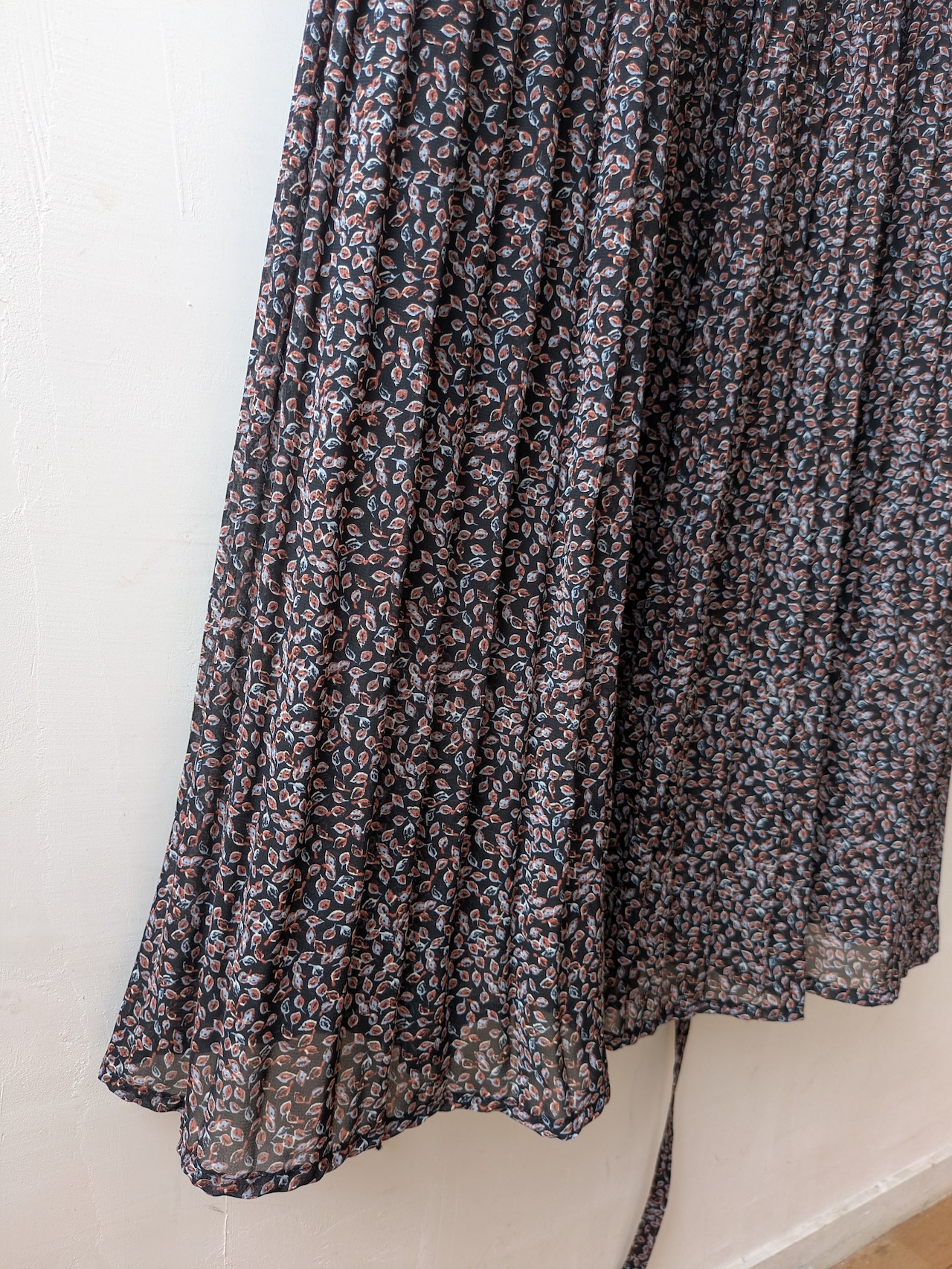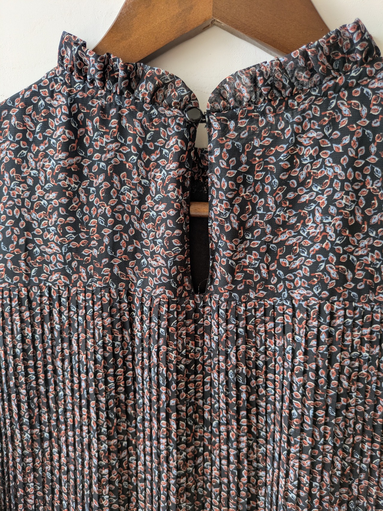 前身頃から裾にかけて、細かなプリーツデザインが優雅で上品な雰囲気。