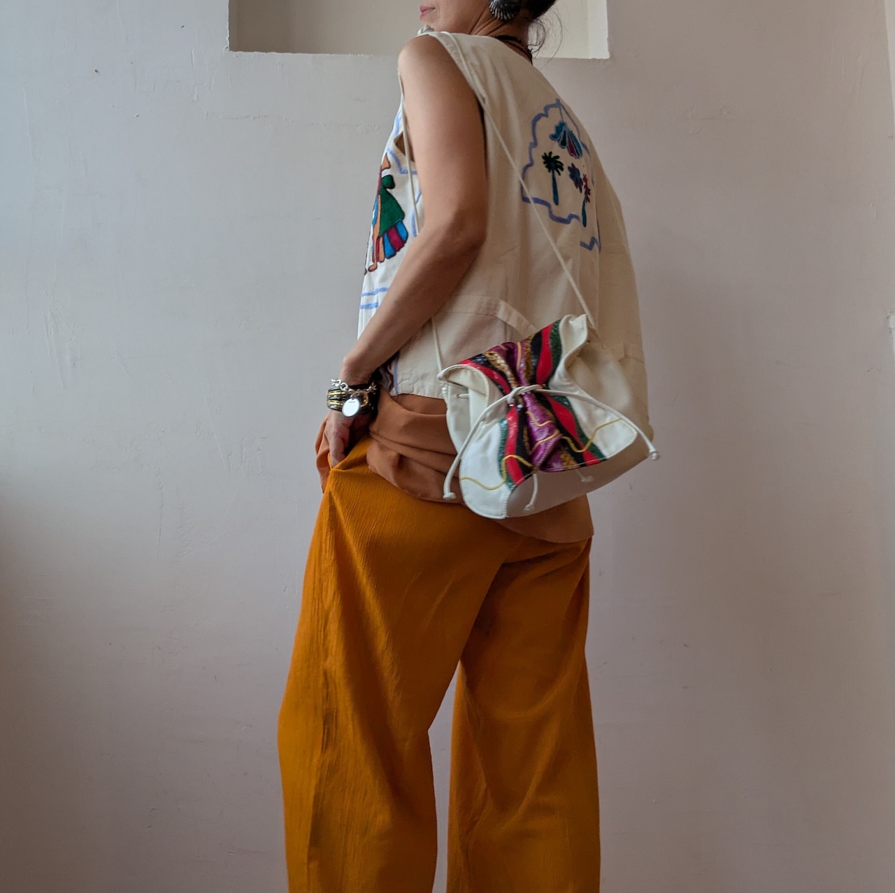 カラフルな色使いと、独特なデザインが印象的で、カジュアルにも、大人スタイルにもどんなスタイルも格上げしてくれる1点。特別な場面にも日常使いにおすすめなアソビゴコロたっぷりの特別な1点です。