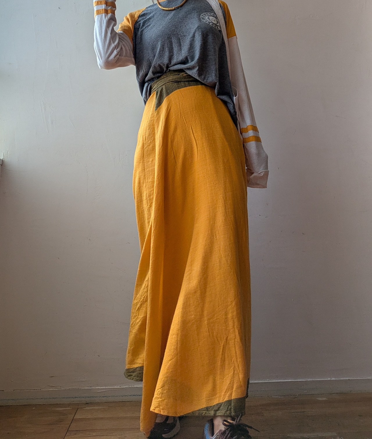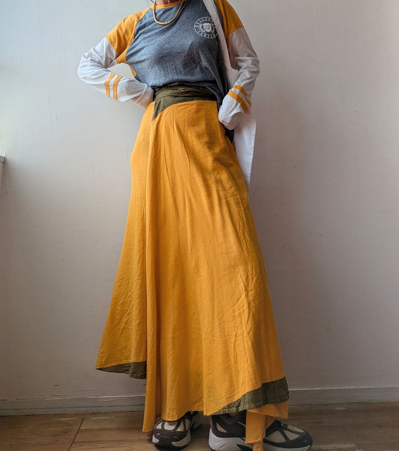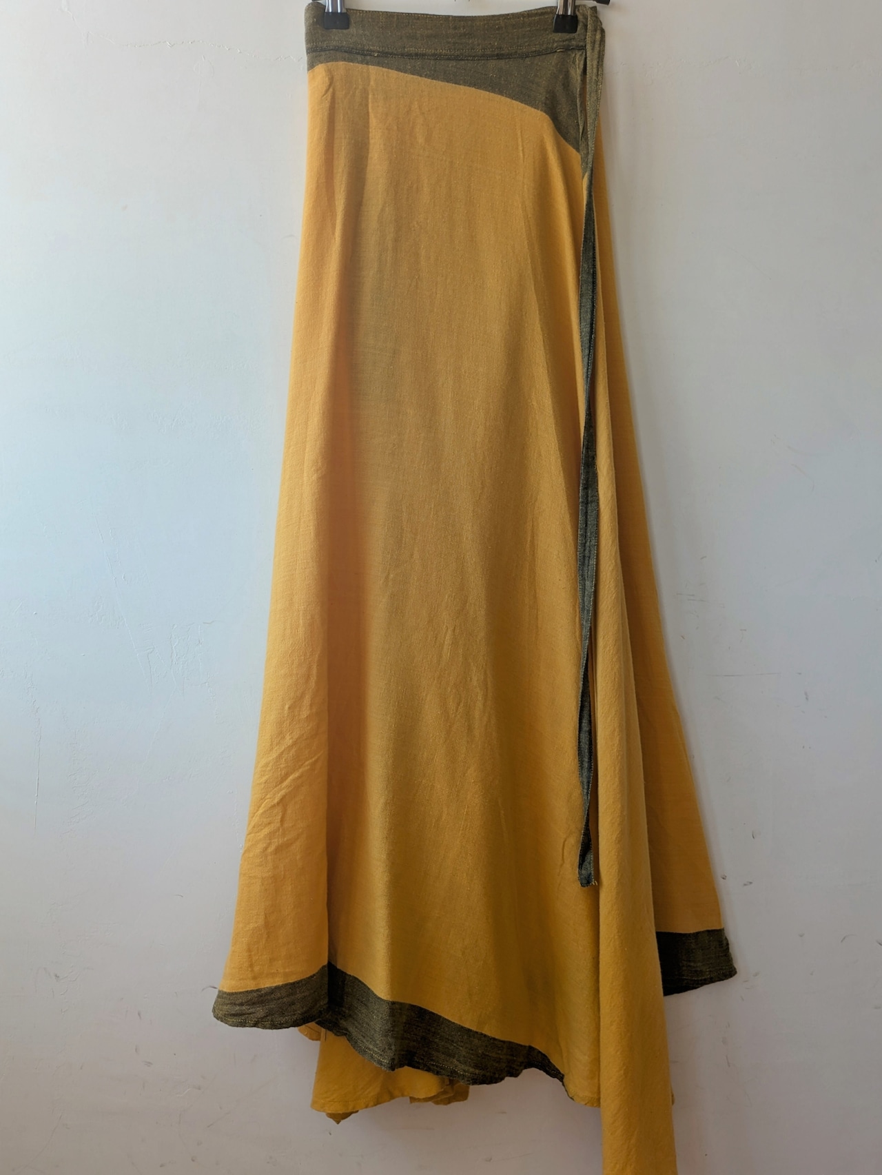 ナチュラルな風合いが魅力のCotton100%ラップスカートです。柔らかなコットン素材を使用し、軽やかで心地よい着用感です。