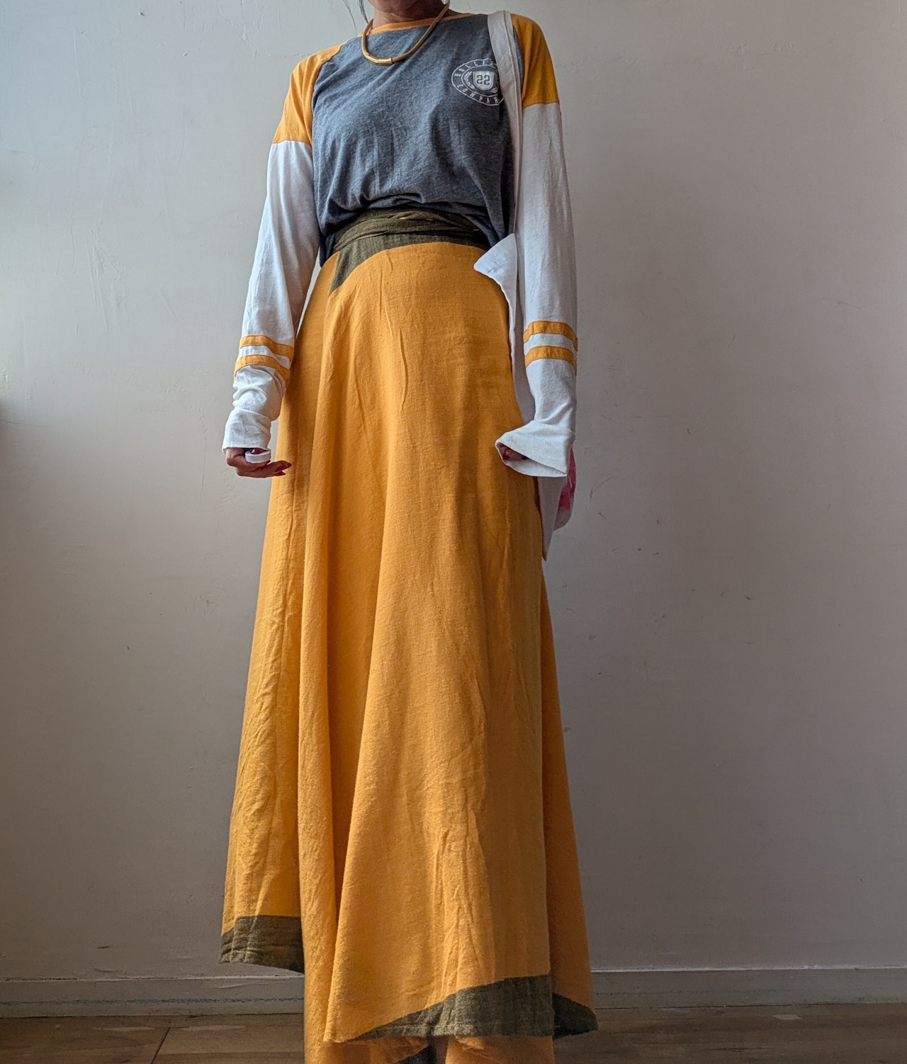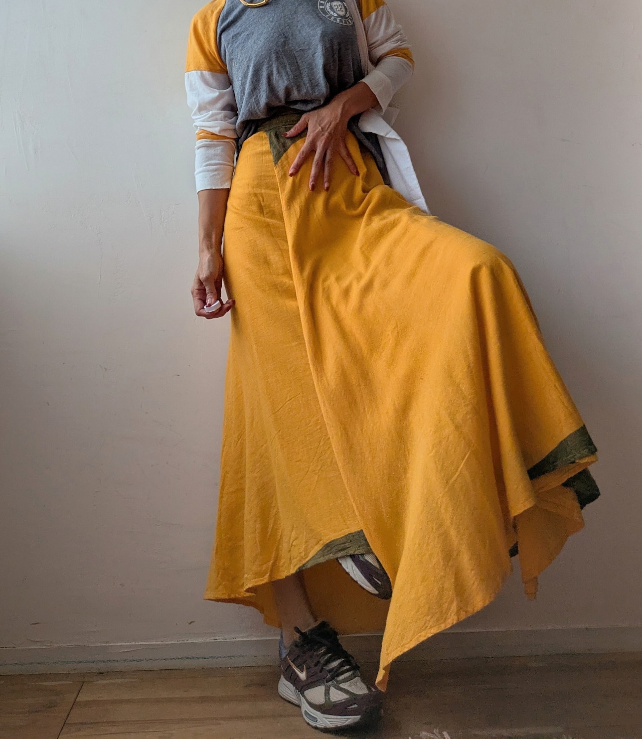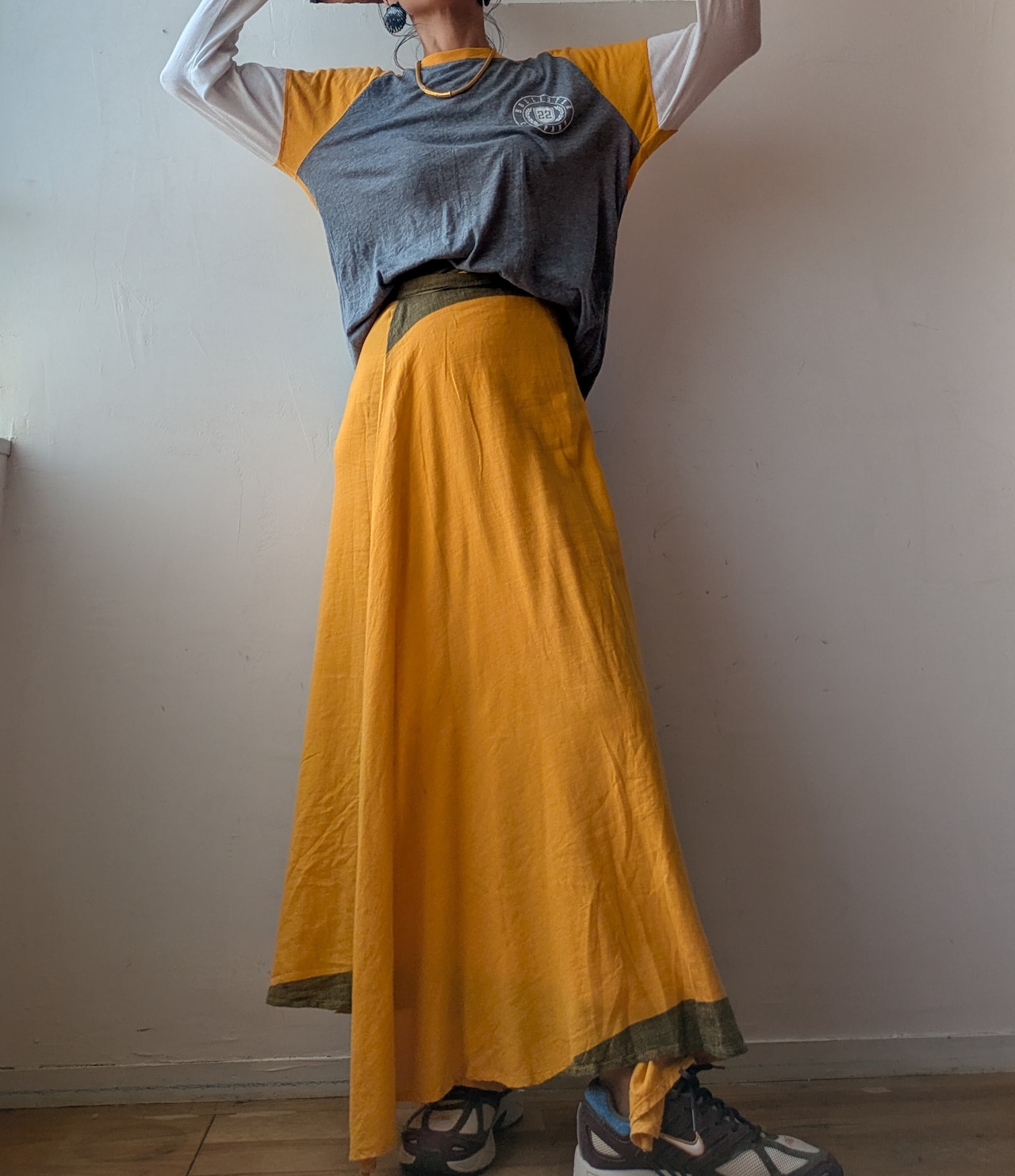 ナチュラルな風合いが魅力のCotton100%ラップスカートです。柔らかなコットン素材を使用し、軽やかで心地よい着用感です。