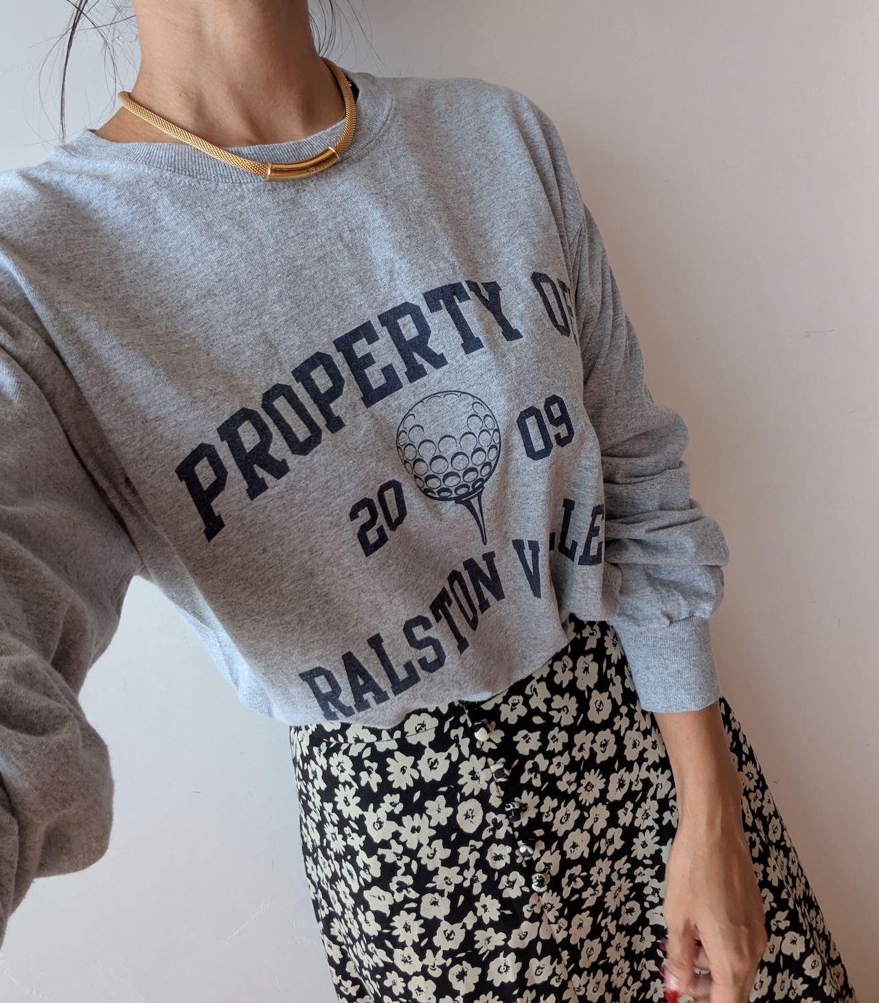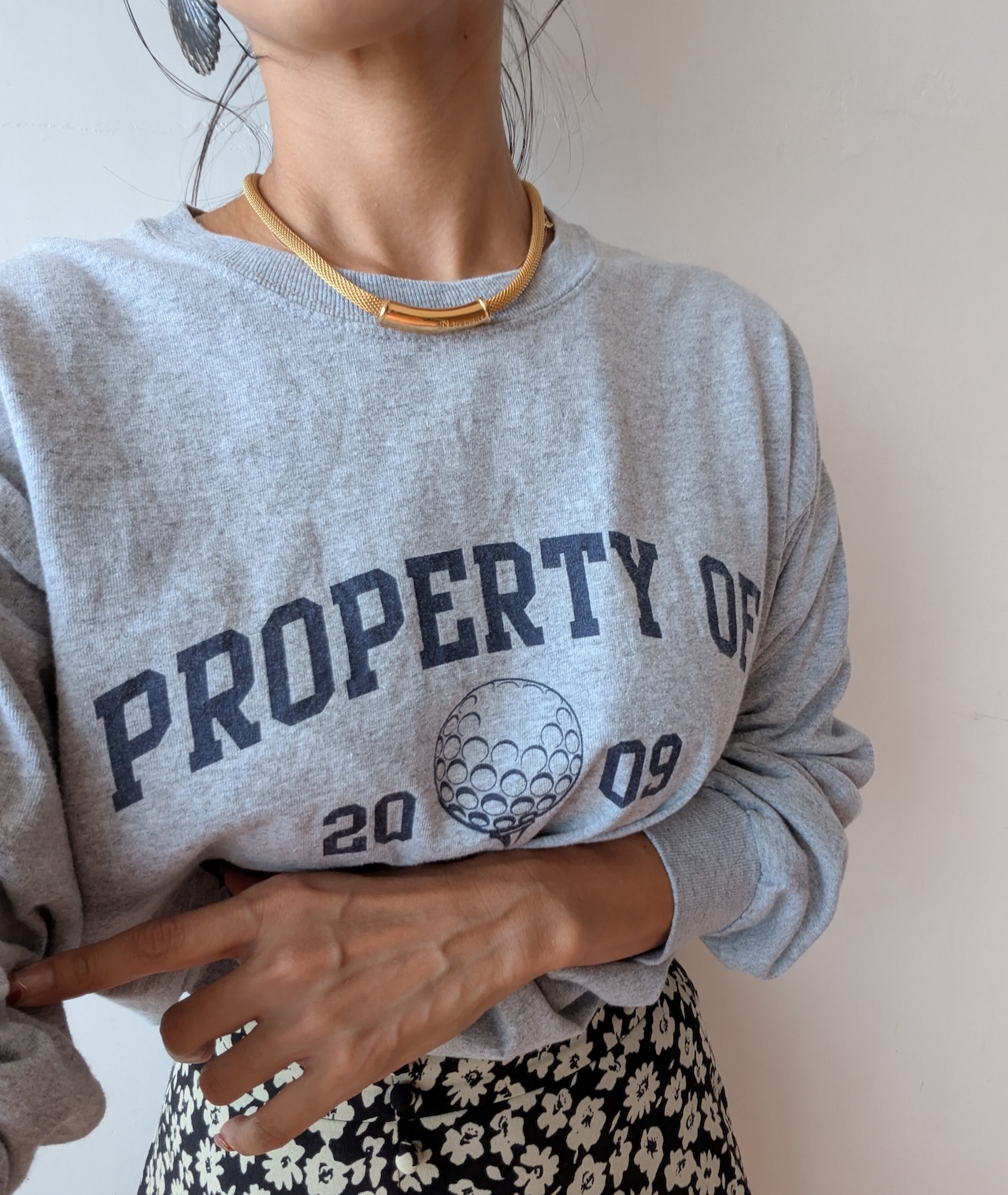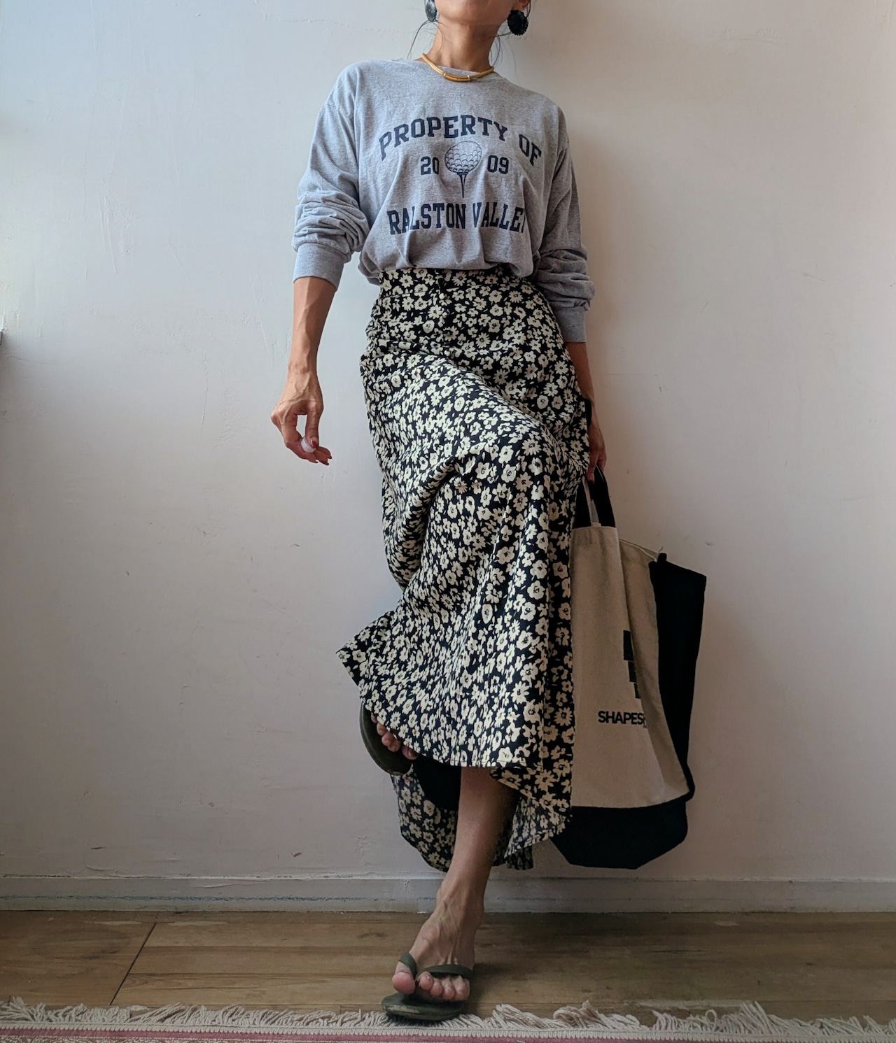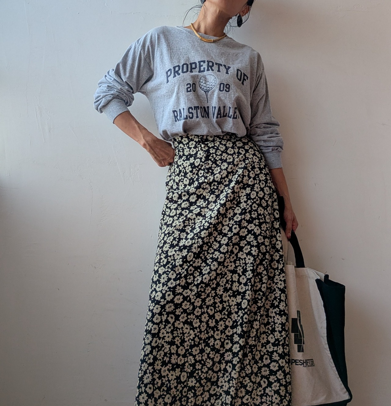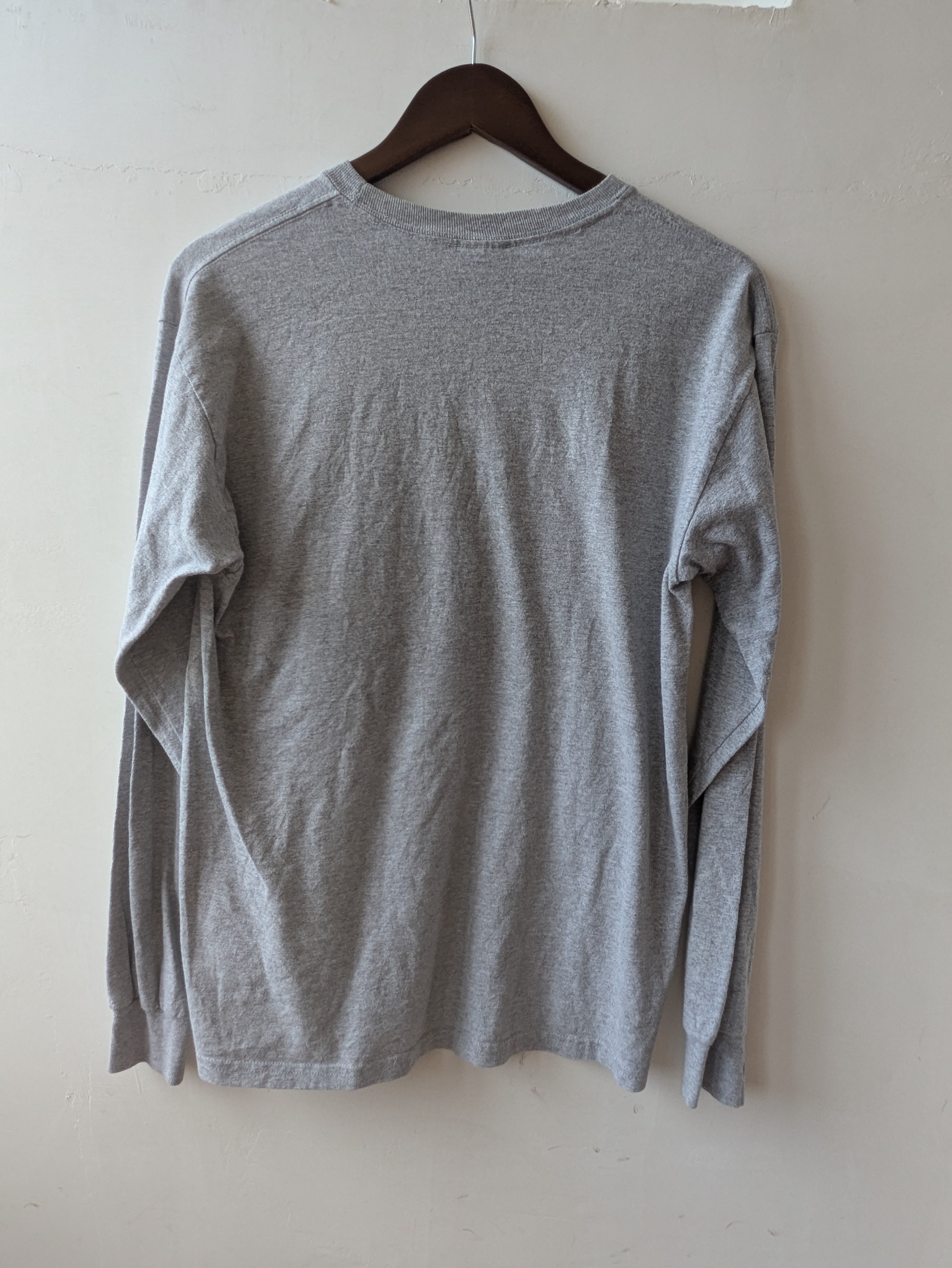 グレーボディにネイビーロゴが、シンプルでスタイリッシュな雰囲のロングTシャツです。
