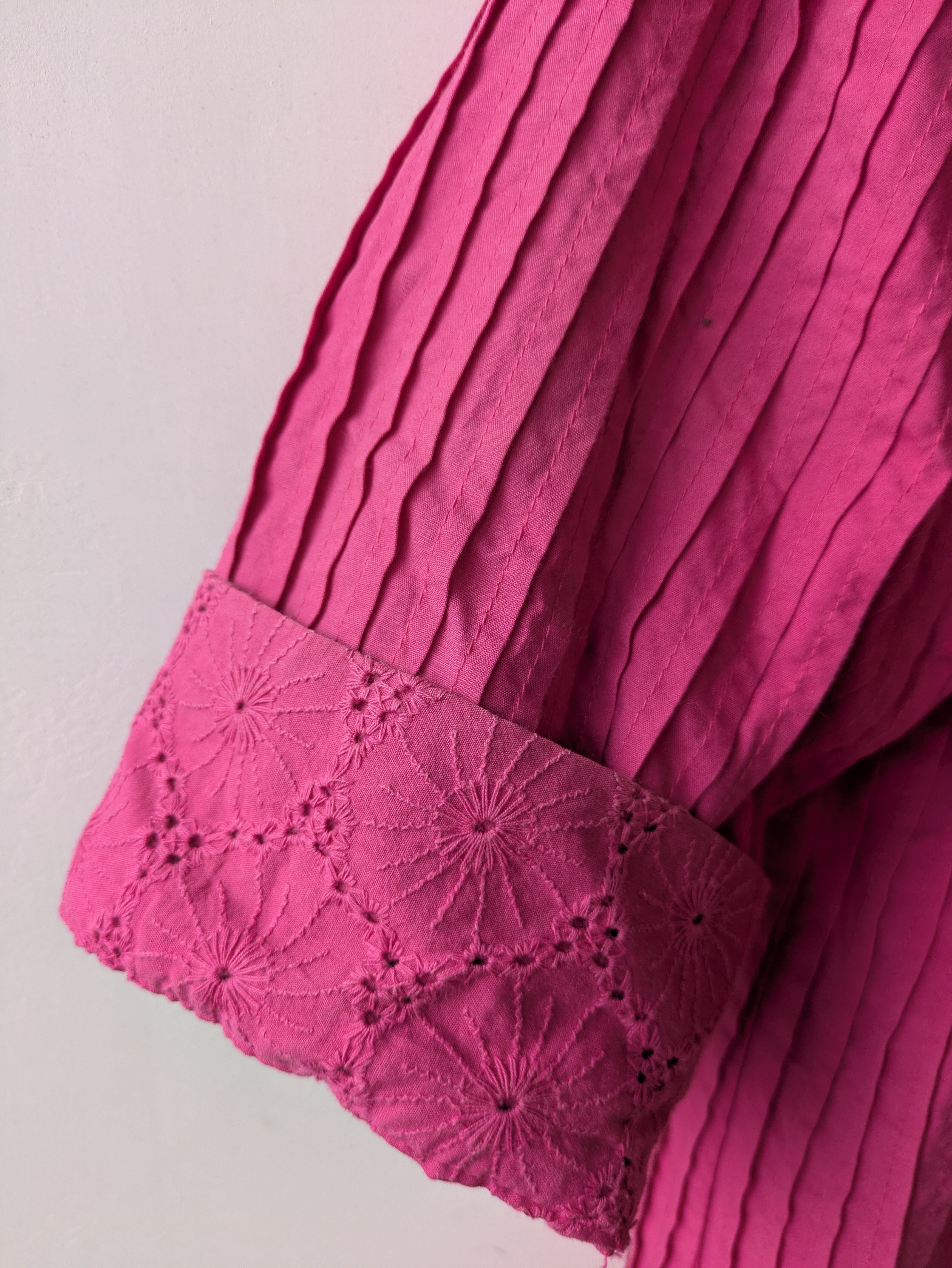 やわらかいコットン素材に、レースとプリーツが華やかで立体感のあるデザイン。