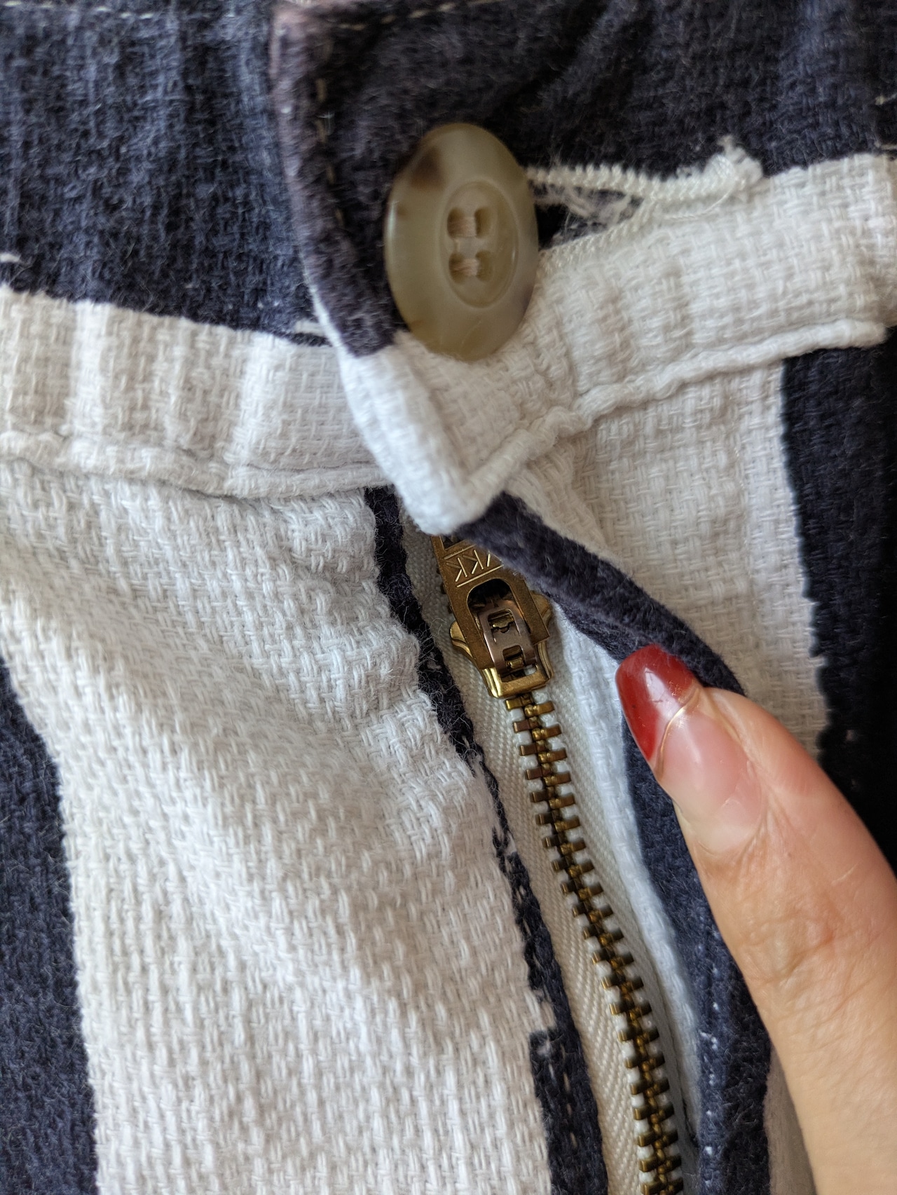 ウエストは前はすっきりとボタン&ファスナー、後ろはゴム仕様で履き心地も楽ちんです。