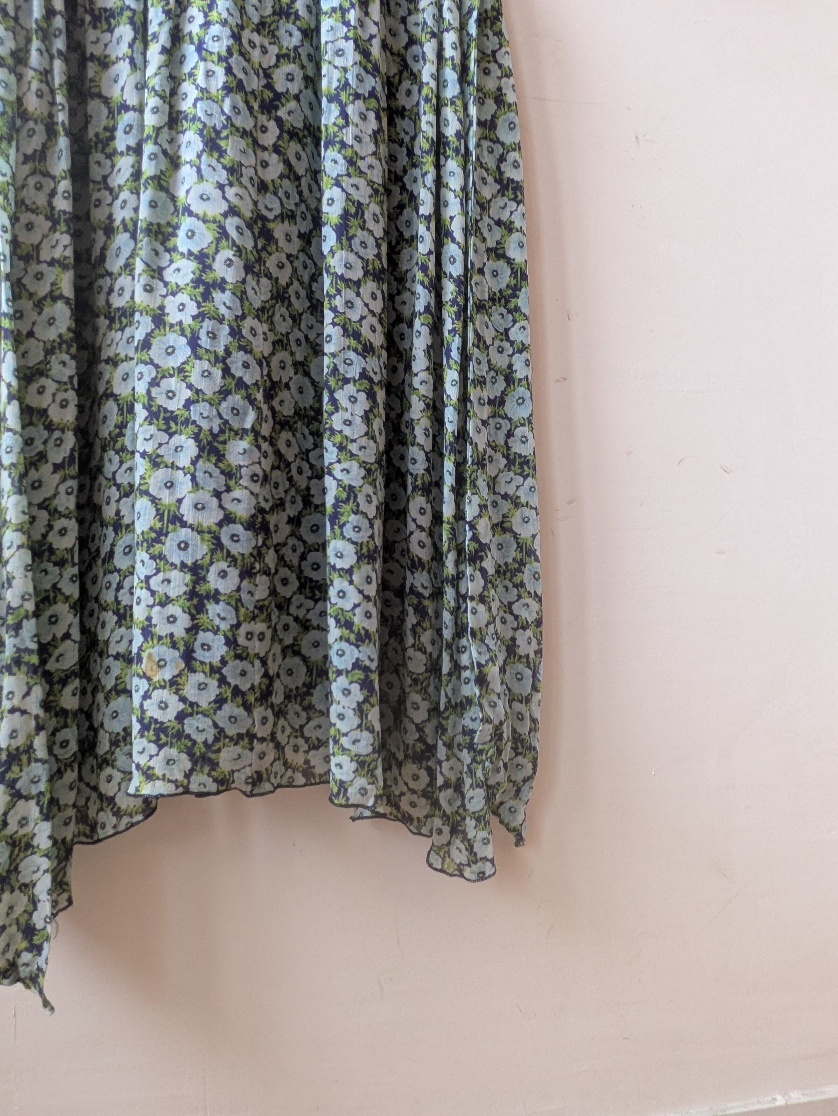 可憐なフラワープリントが特徴のミディ丈ワンピースです。軽やかな素材感とエレガントなシルエットが、女性らしさを引き立ててくれます。さまざまなシーンで活躍できる1着で、デイリースタイルから特別な日のお出かけまで幅広く対応します。
