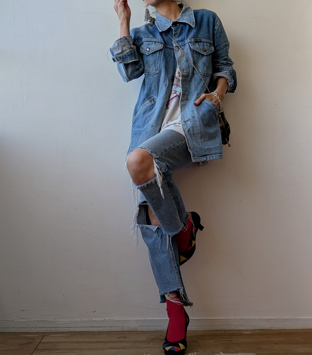 ジーンズとのコーディネートや今の季節はワンピースやスカートに羽織る甘辛コーデもおすすめ!ロングシーズン着用していただける1着です。