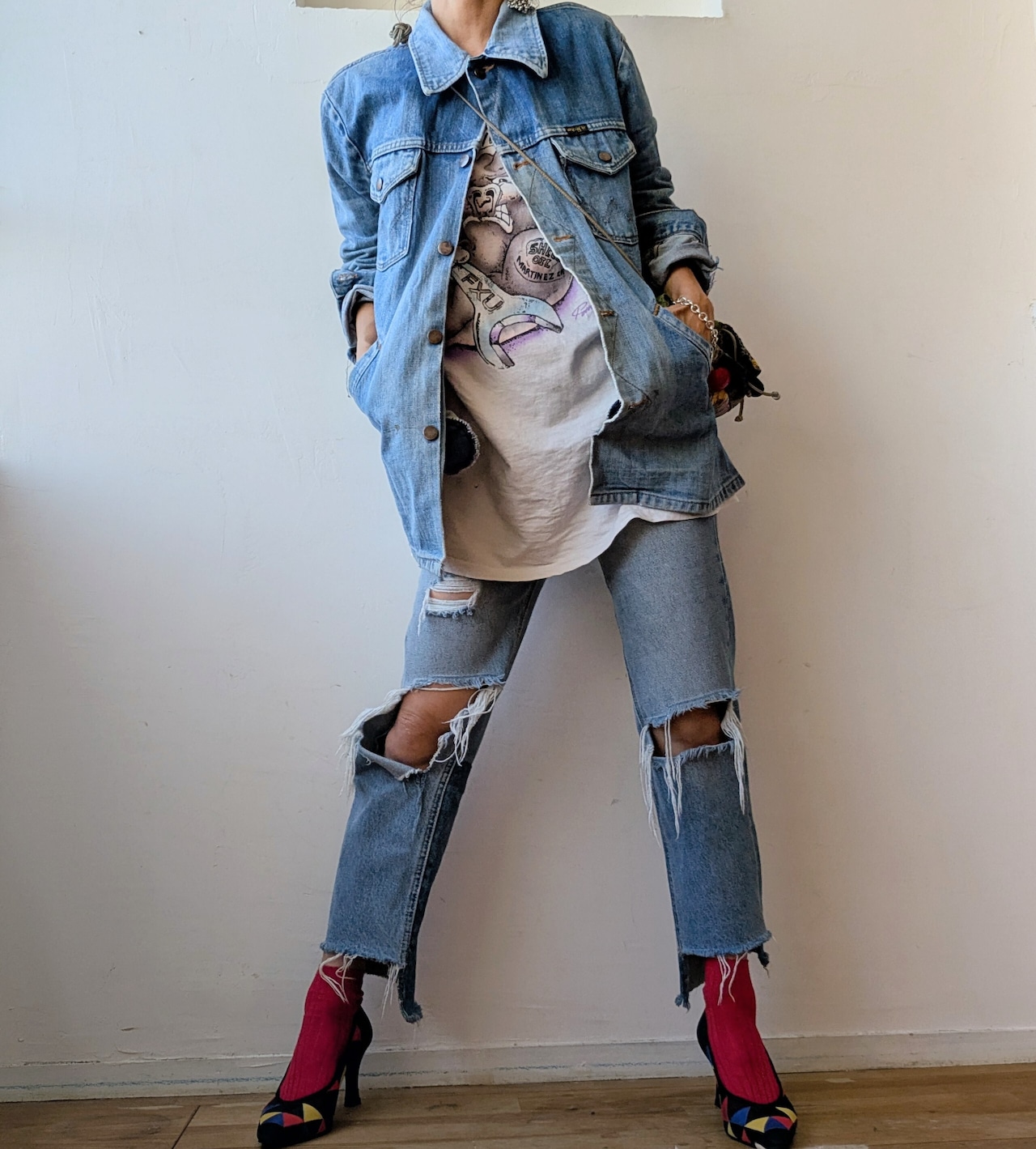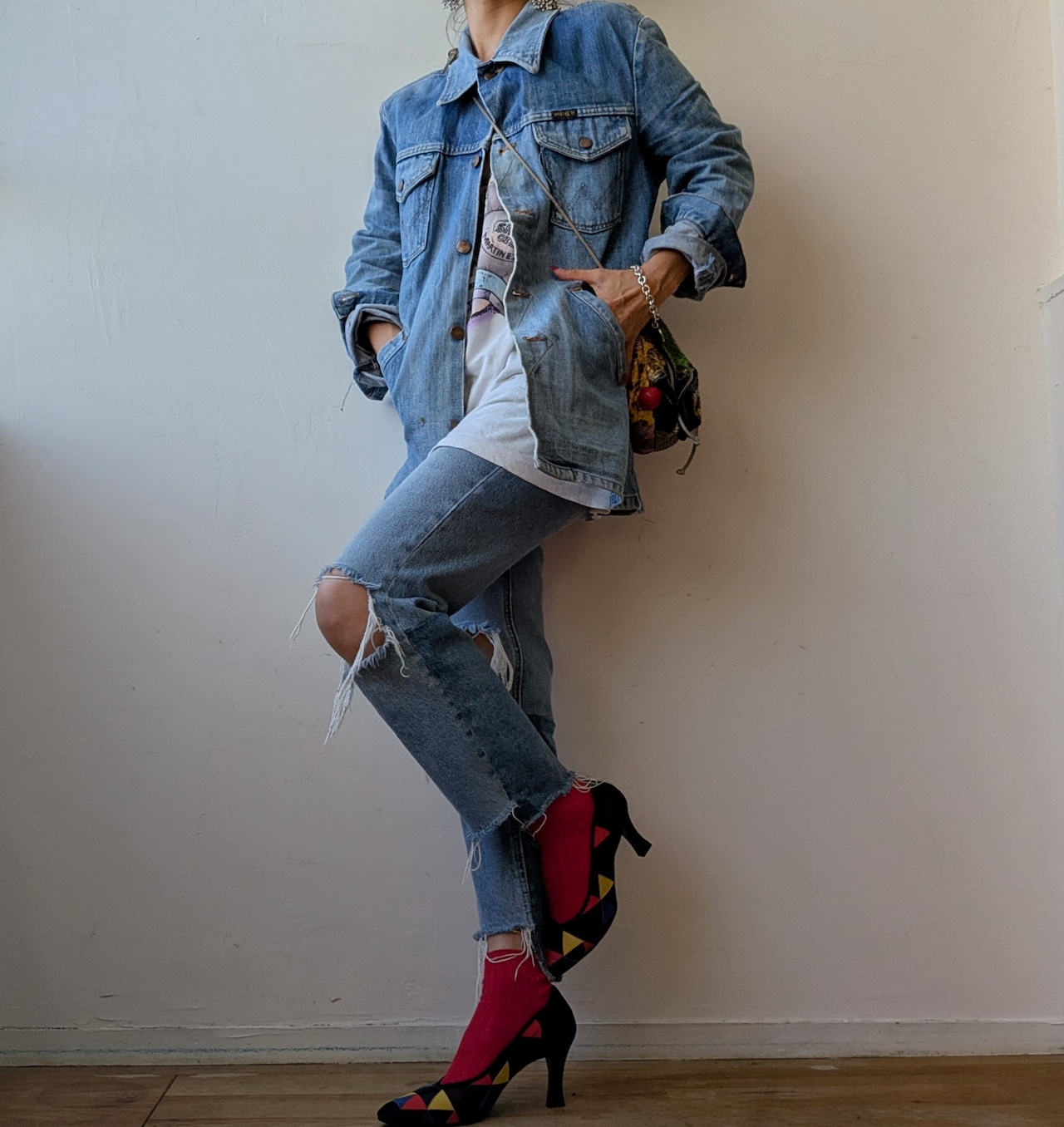 USAヴィンテージならではのダメージ感がかっこよく、シンプルなデザインに加え、シルエットはすっきりとした印象で、さまざまなスタイルに併せていただけます。