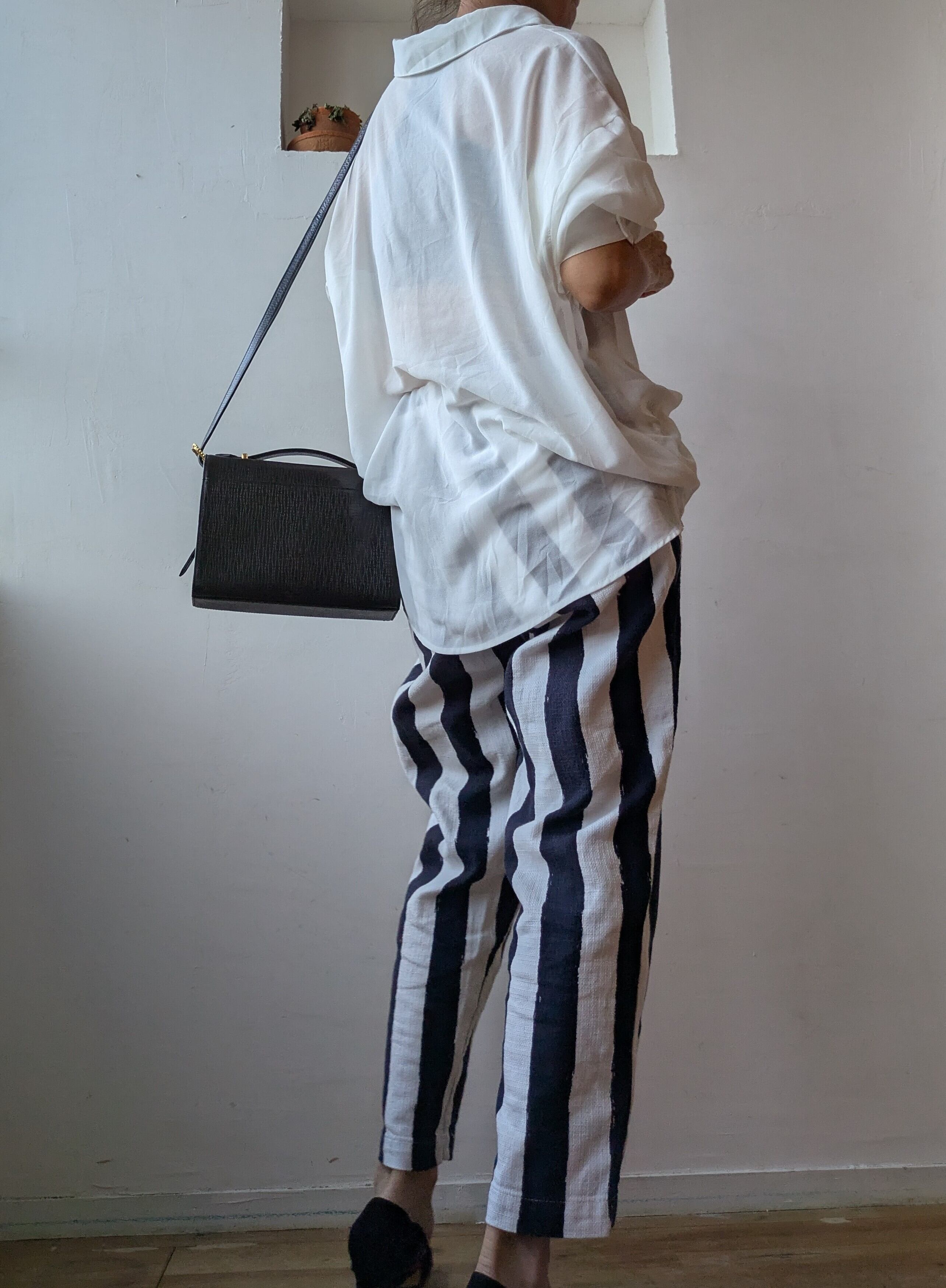 今の季節は、キャミソールやタンクトップの上にさらっと羽織るスタイルや、秋冬にはニットやアウターのインナーとしても重宝します。ゆったりとしたデザインで、リラックスした着心地を楽しむことができます。
