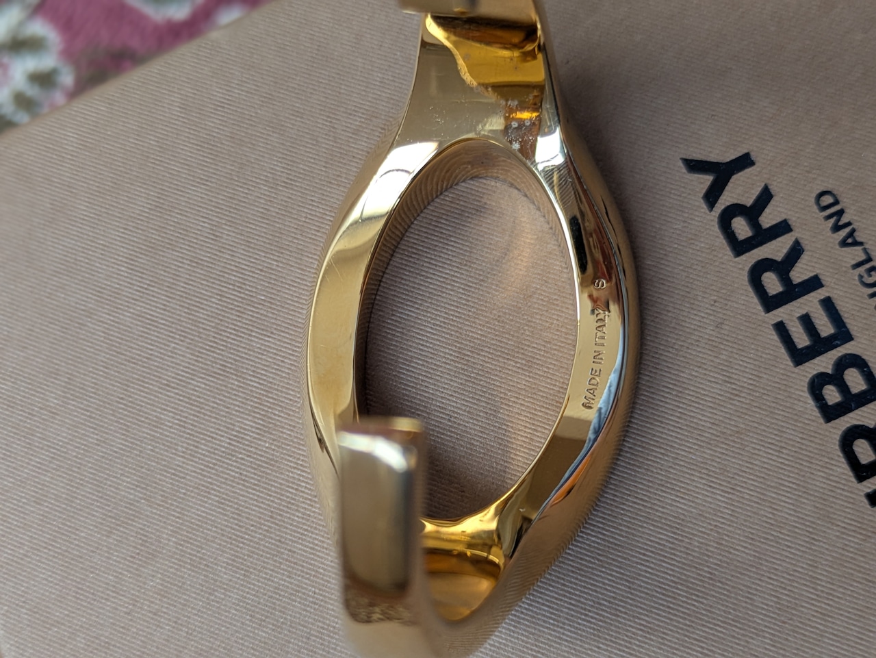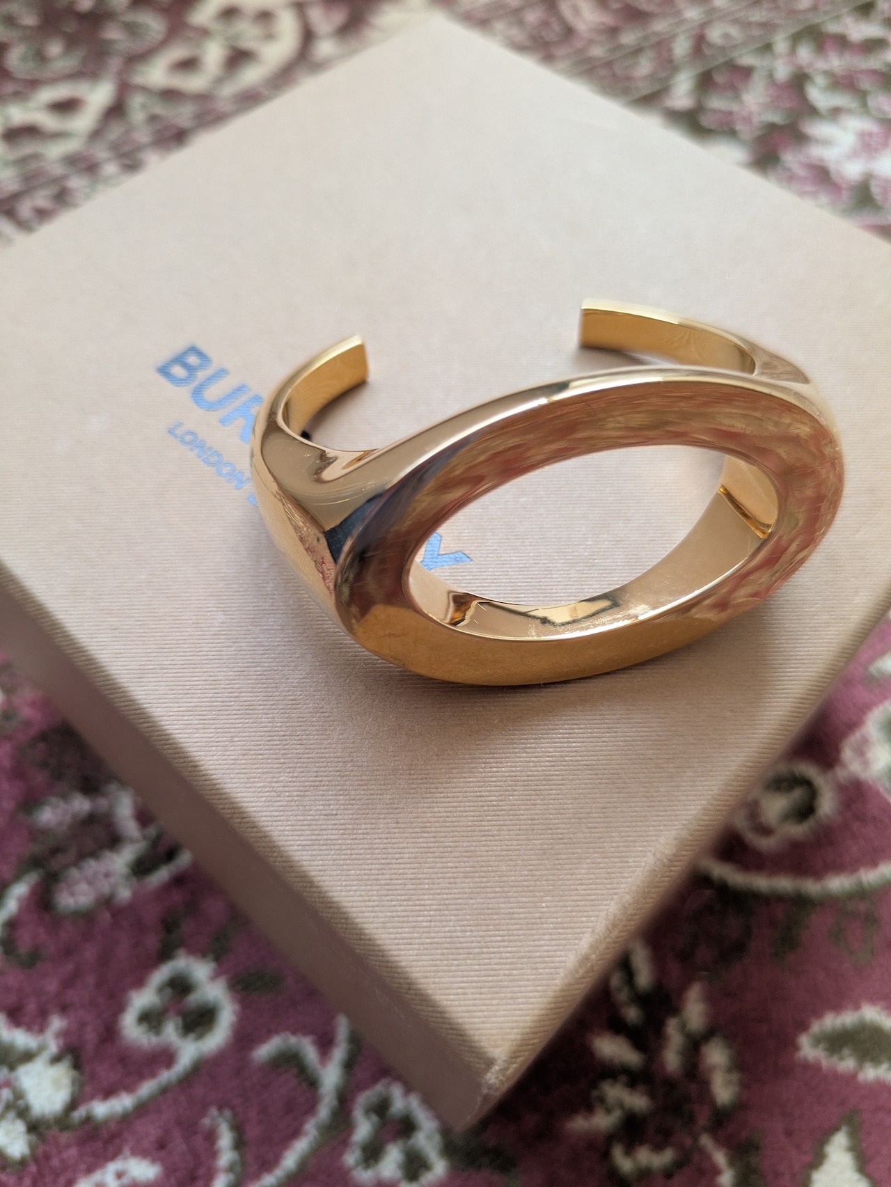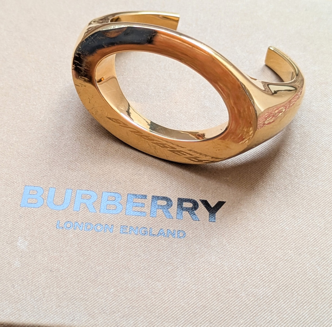 洗練されたCircleデザインが魅力のBURBERRY gold bangleです。