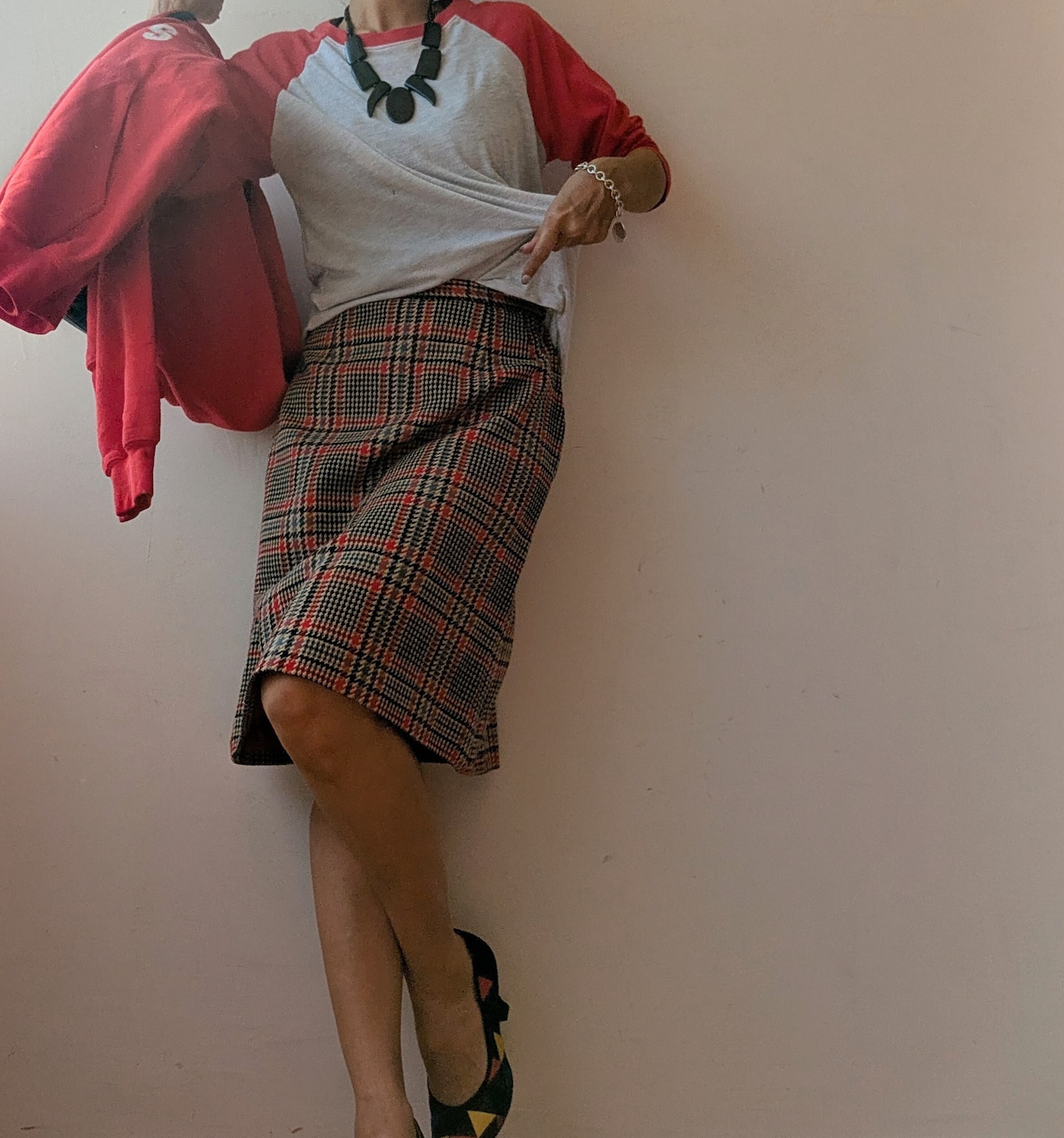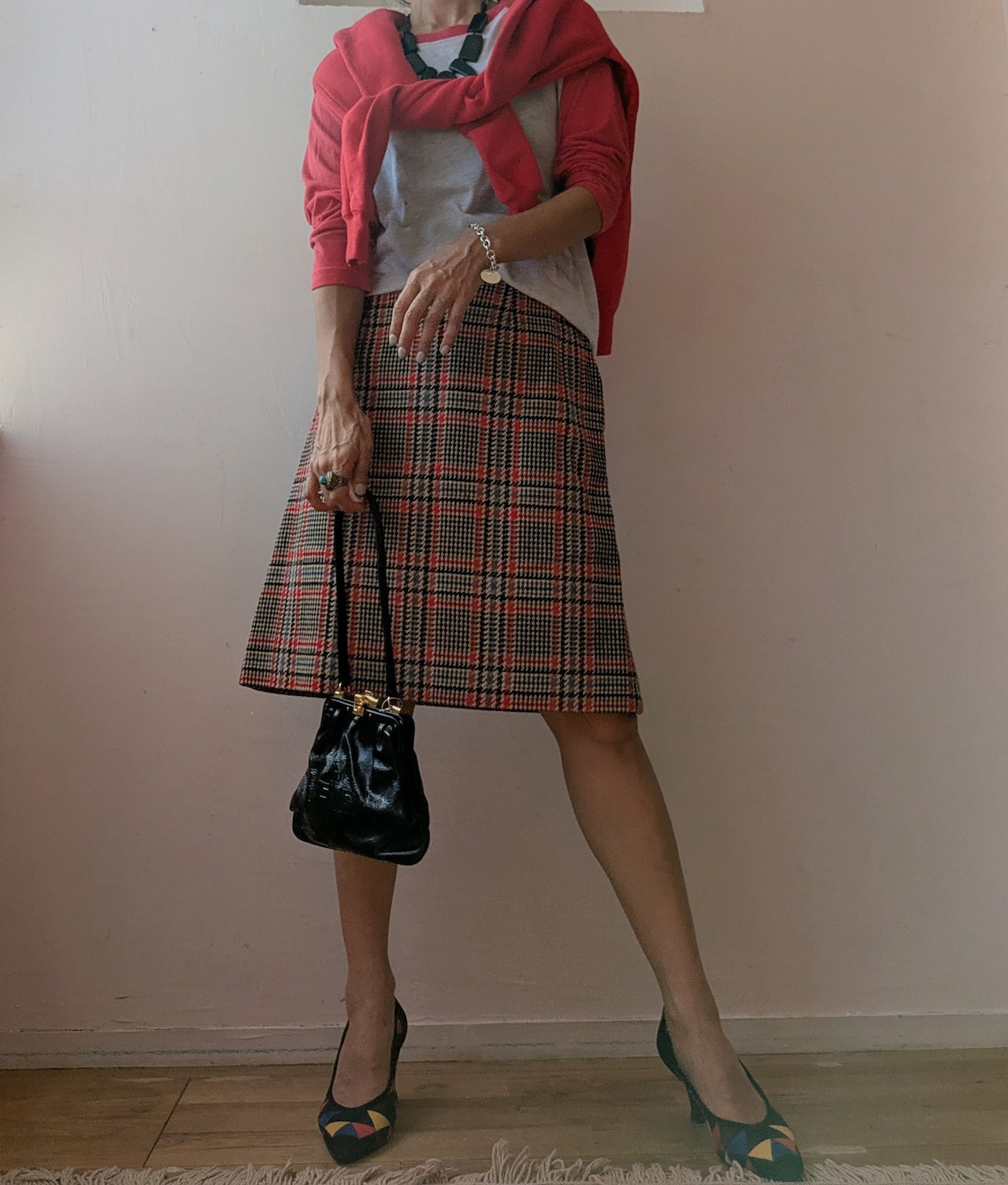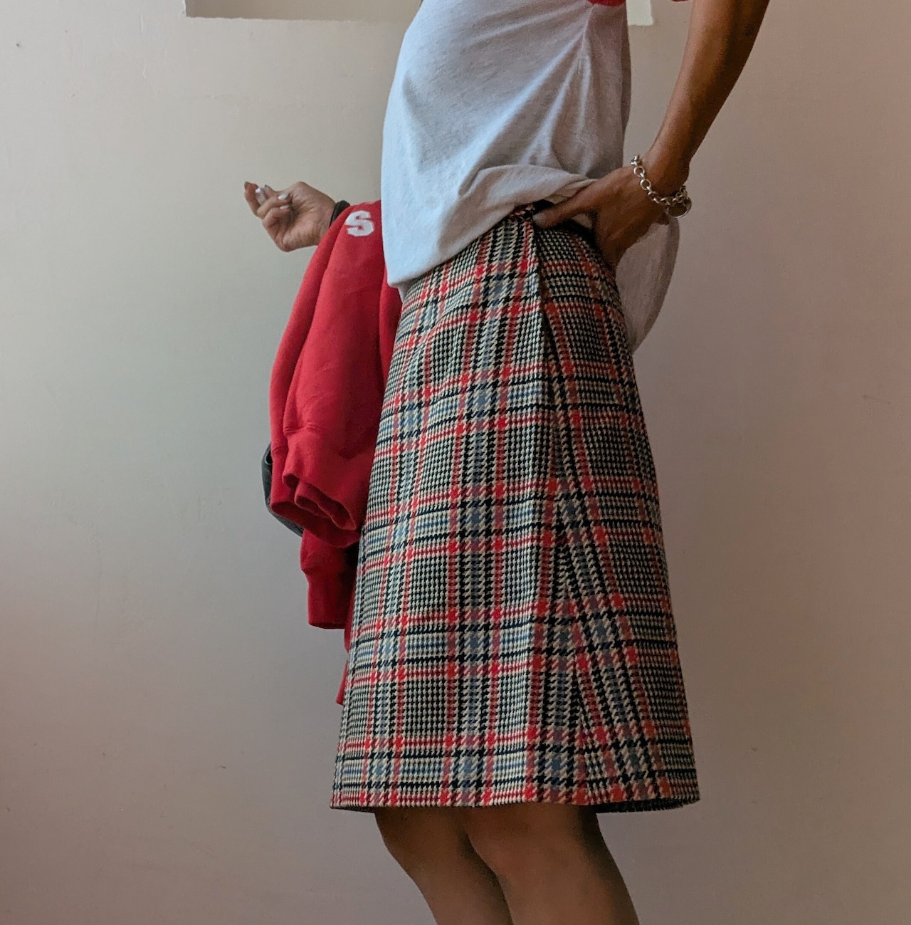 Glen check trapezoid wool skirt
